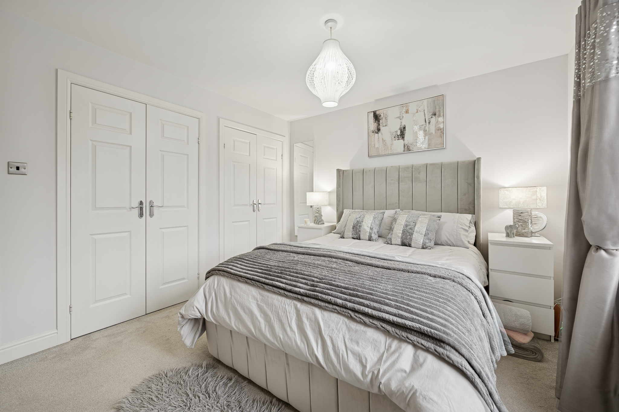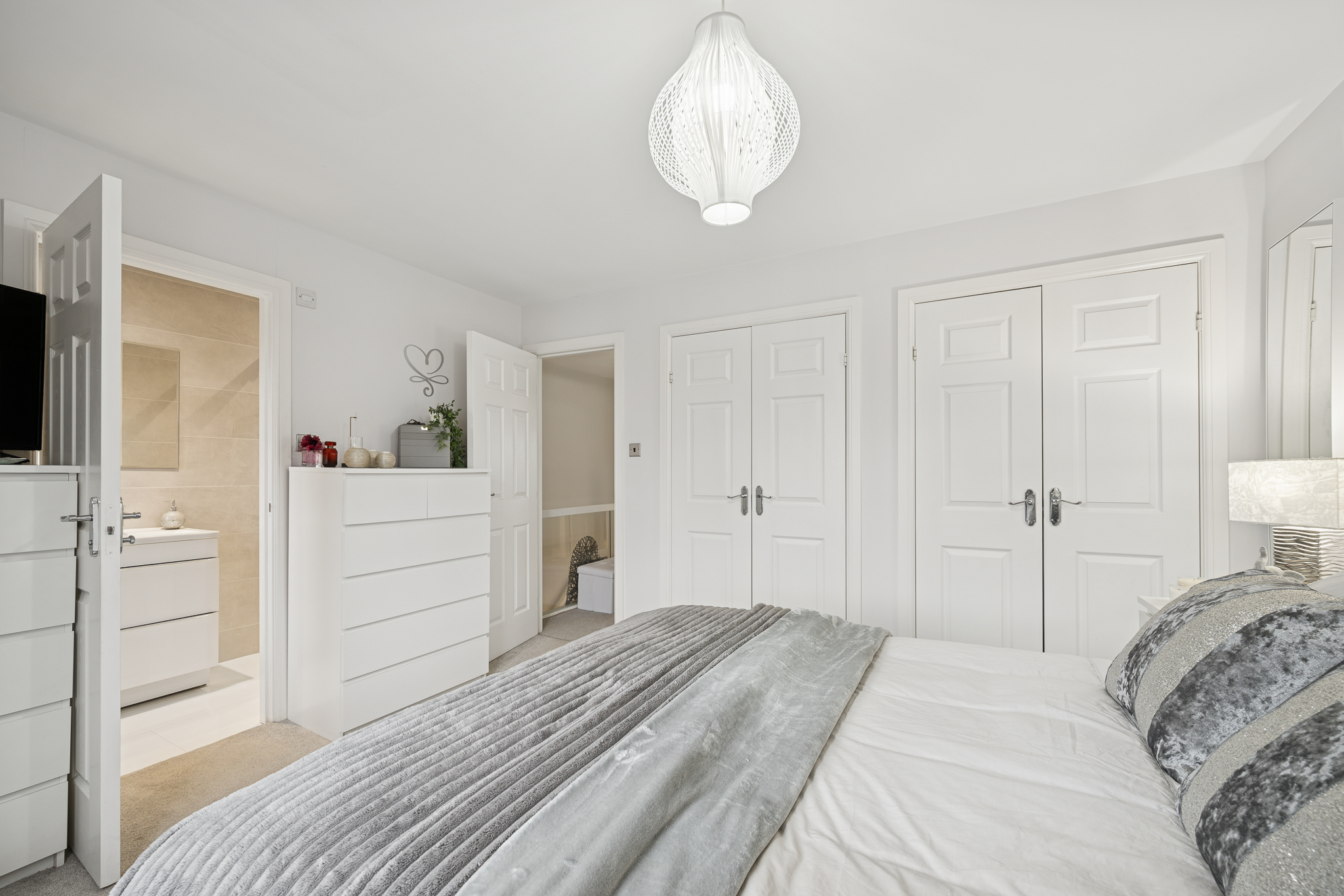 The top floor is dedicated to rest and retreat, offering three generously sized double bedrooms, all presented to a high standard. The principal bedroom is particularly impressive, benefiting from two built in wardrobe spaces and a stylish en-suite shower room, fully tiled in contemporary neutral tones and fitted with a walk in shower enclosure, modern vanity unit and sleek chrome fittings, creating a calm and hotel like finish.