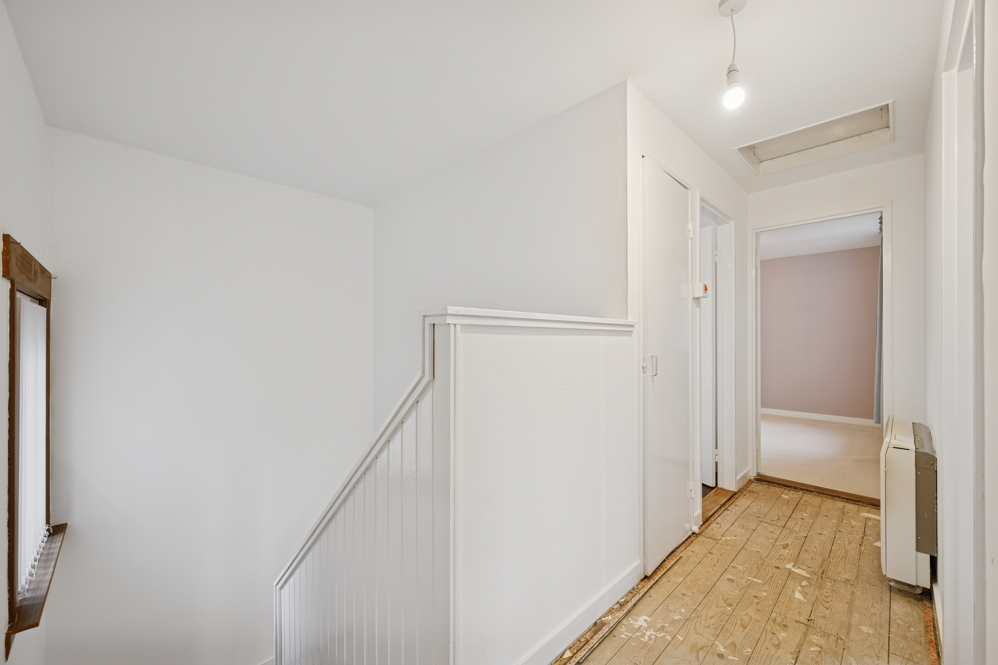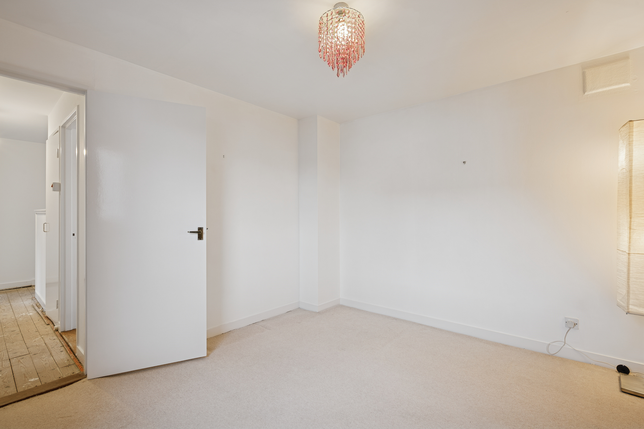Upstairs, the bright and airy feel continues, with the staircase and landing finished in crisp white tones and bathed in natural light. The home offers three well proportioned double bedrooms, all decorated in neutral tones and featuring south facing windows that fill each room with sunlight throughout the day. Two of the bedrooms include built-in storage, while an additional cupboard on the landing adds further practicality, combining contemporary style with functional living.