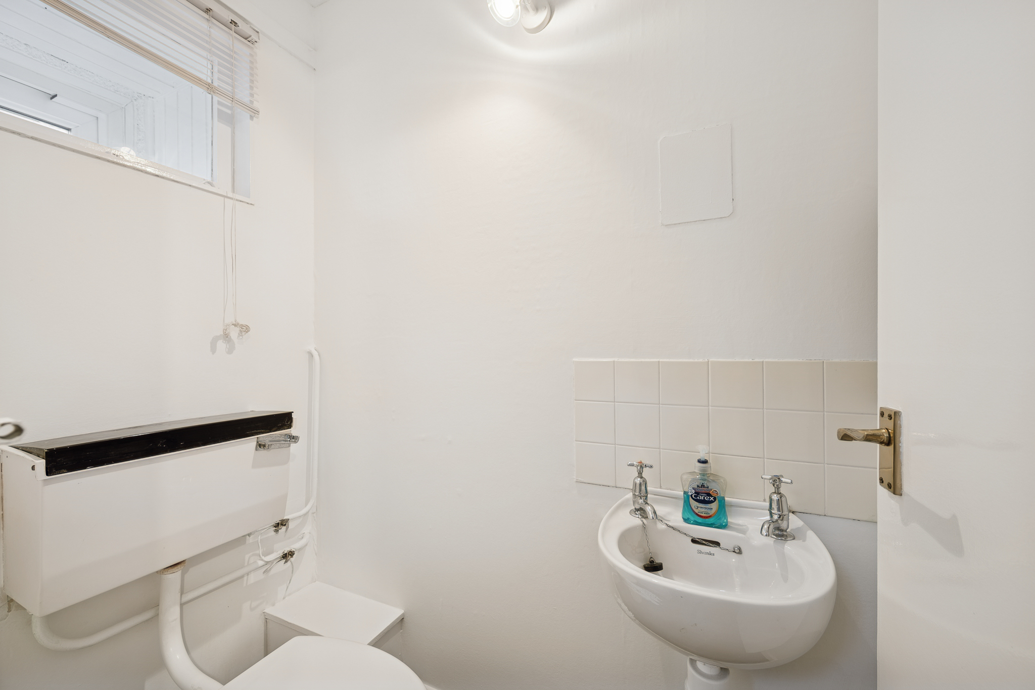 Off the hallway is a generously sized downstairs WC, complete with toilet and sink, finished to a high standard and continuing the same smart flooring.