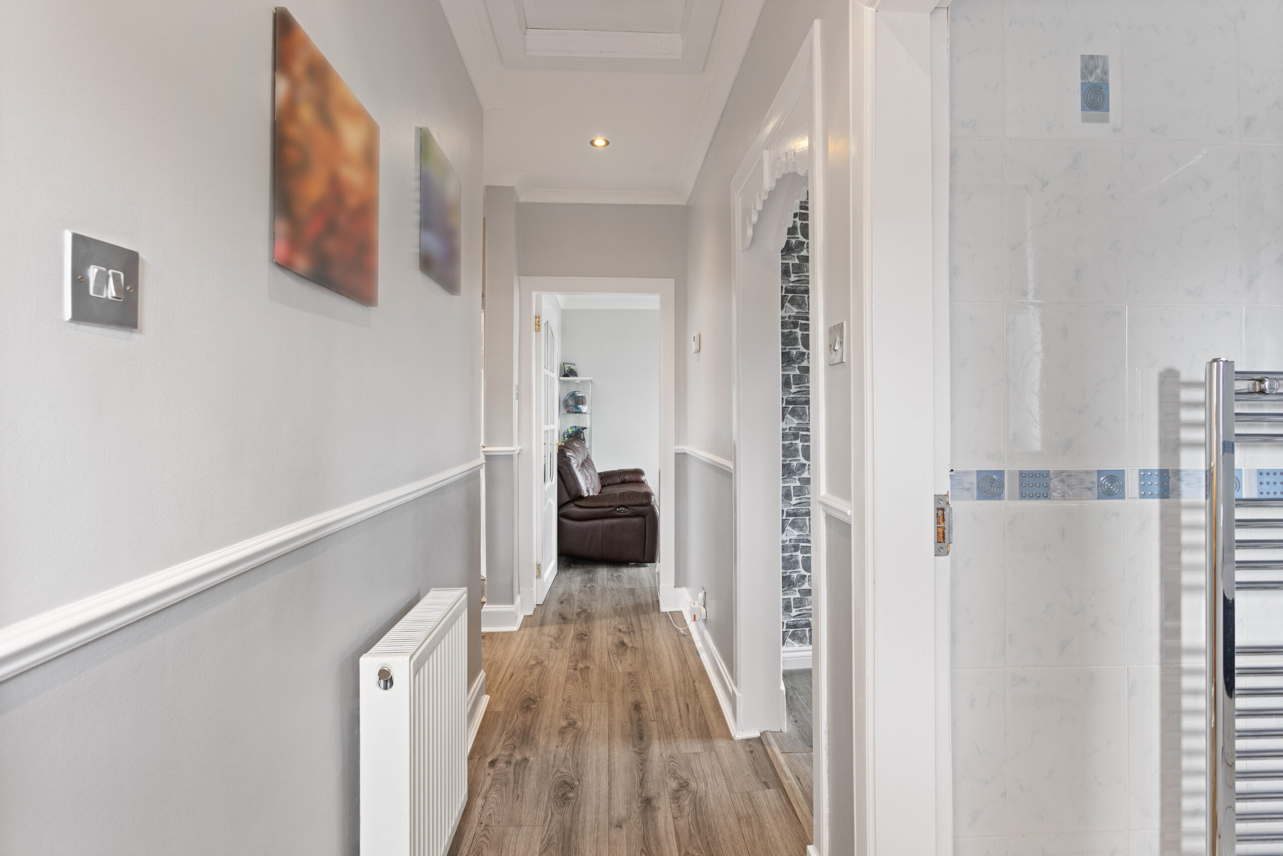 Upon entering the property, you are welcomed into a bright and well maintained entrance hallway, finished with warm wood effect flooring and neutral décor, setting the tone for the rest of the home. The hallway also benefits from useful storage, ideal for coats and everyday essentials, ensuring a clean and uncluttered first impression.