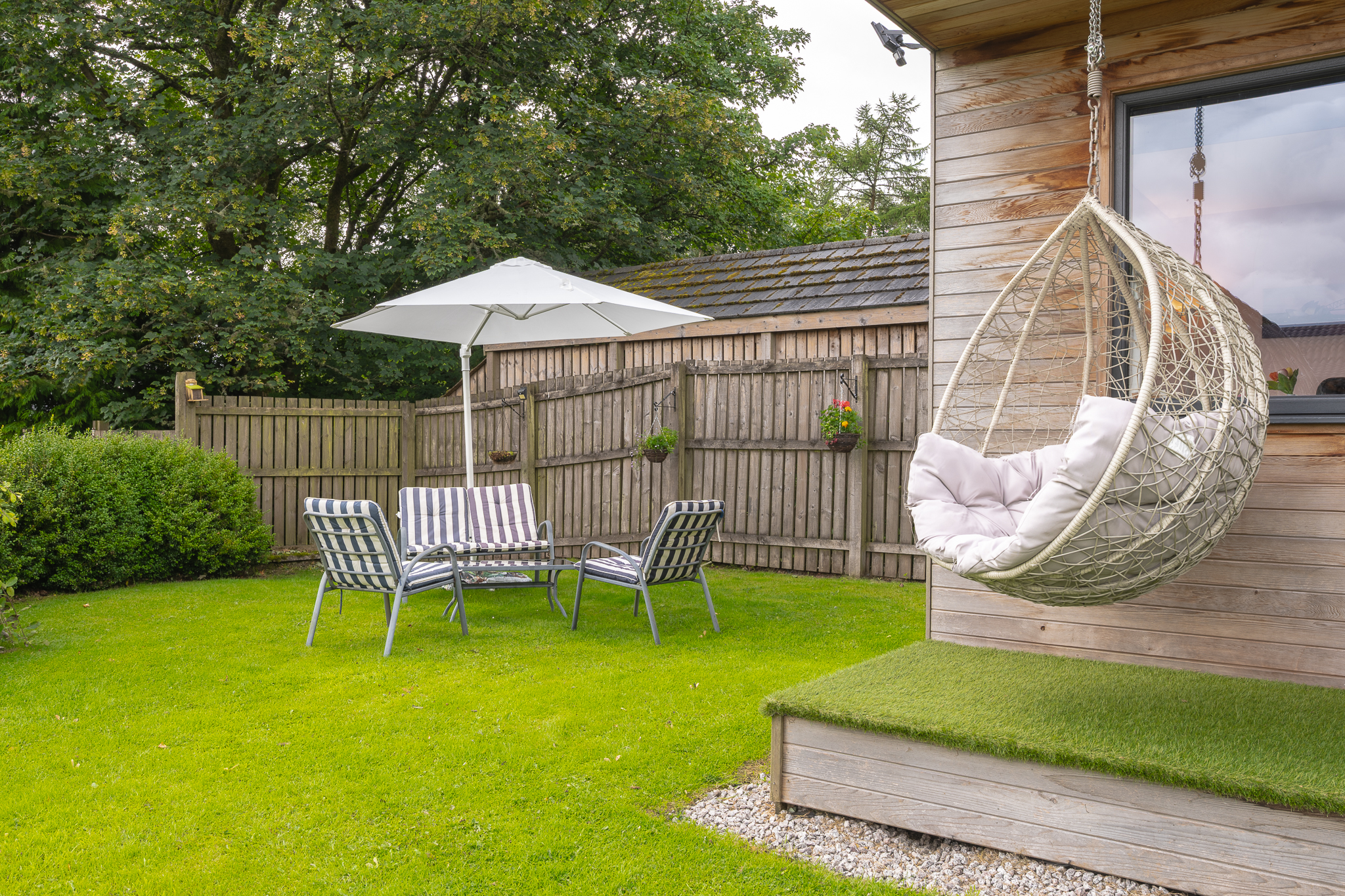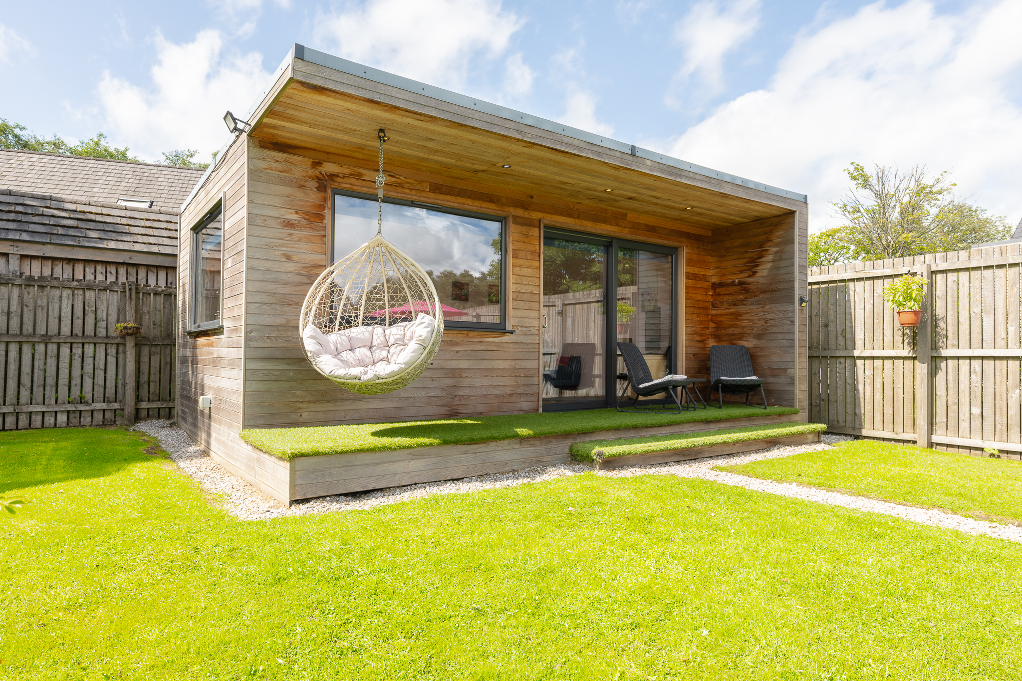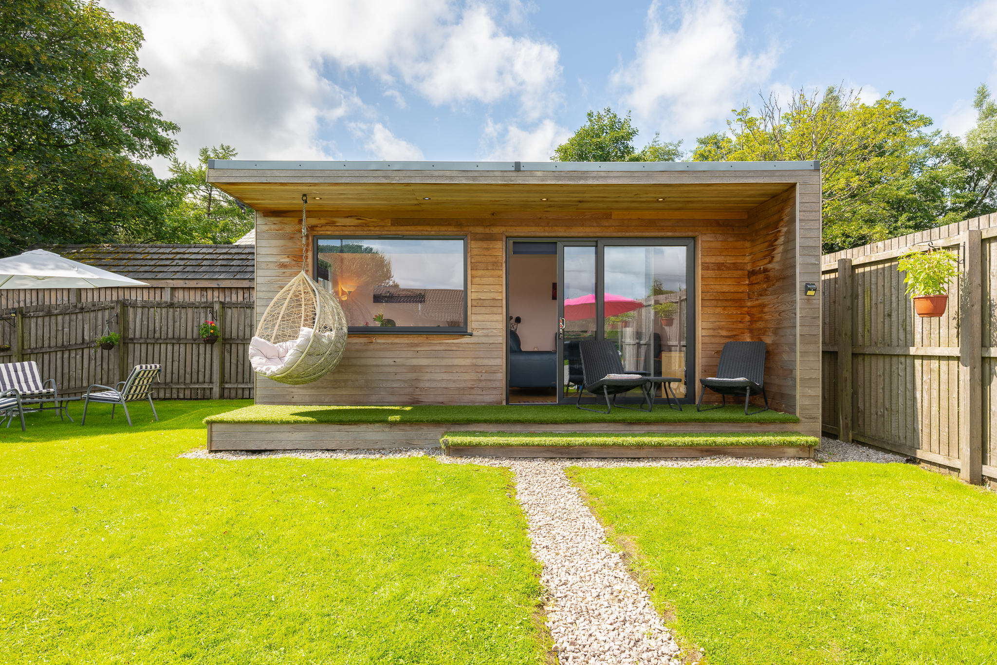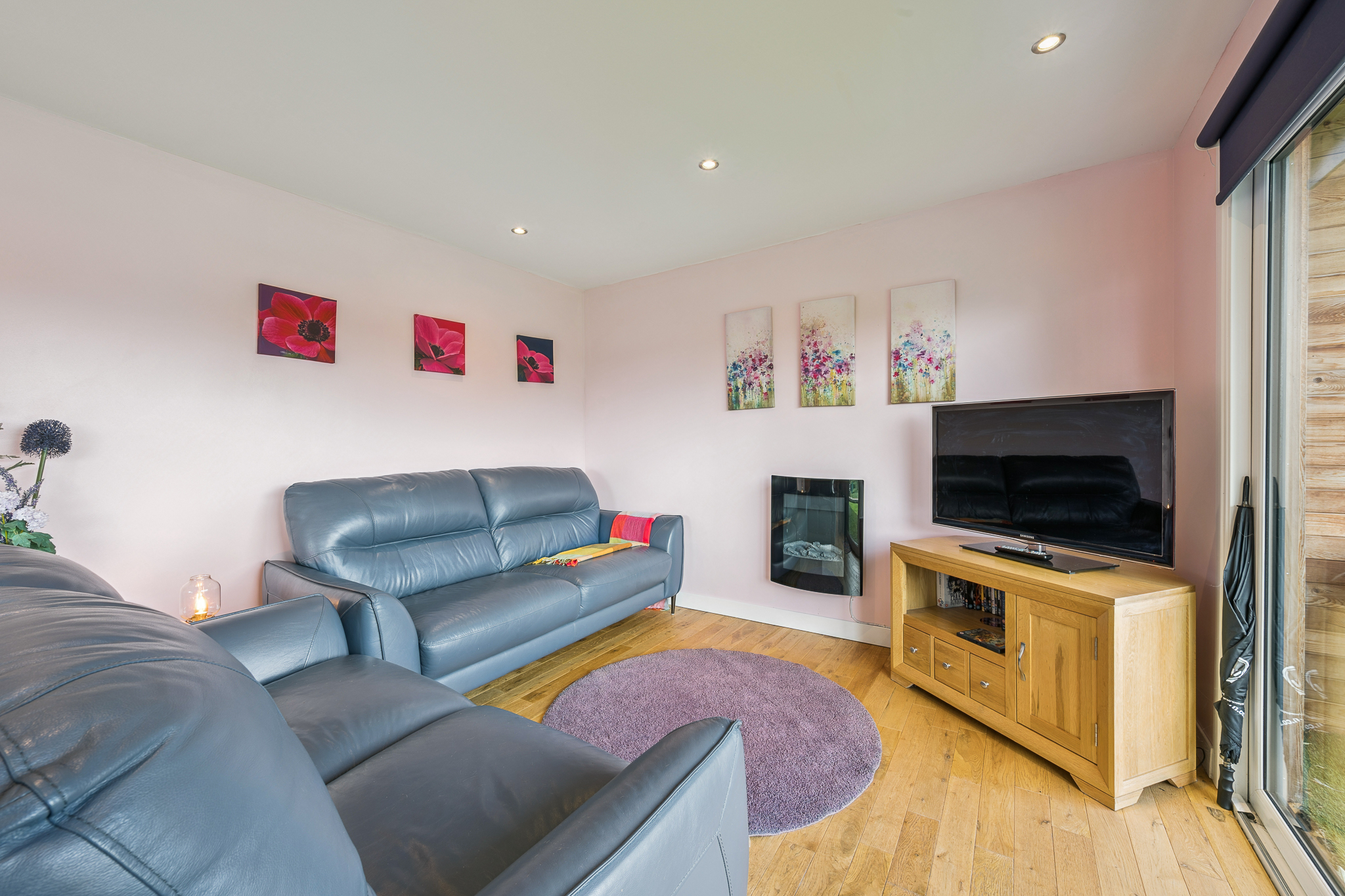 A substantial storage cupboard at the end of the hall ensures day-to-day organisation is effortless. Bedroom One, positioned at the end of the hallway and to the front of the property, is a wonderfully spacious retreat, currently accommodating a king-size bed and featuring two sets of integrated double wardrobes. Beyond the main home, the property’s outdoor offering is equally impressive. The landscaped rear garden has been thoughtfully designed for entertaining, with breath-taking open views, plenty of seating areas, and space for gatherings. A recently added summer house, complete with electricity and internet, provides the ideal work-from-home office, creative studio, or even a stylish garden bar for summer parties. Additional features include triple glazing for comfort and energy efficiency, as well as solar panels to help reduce running costs.