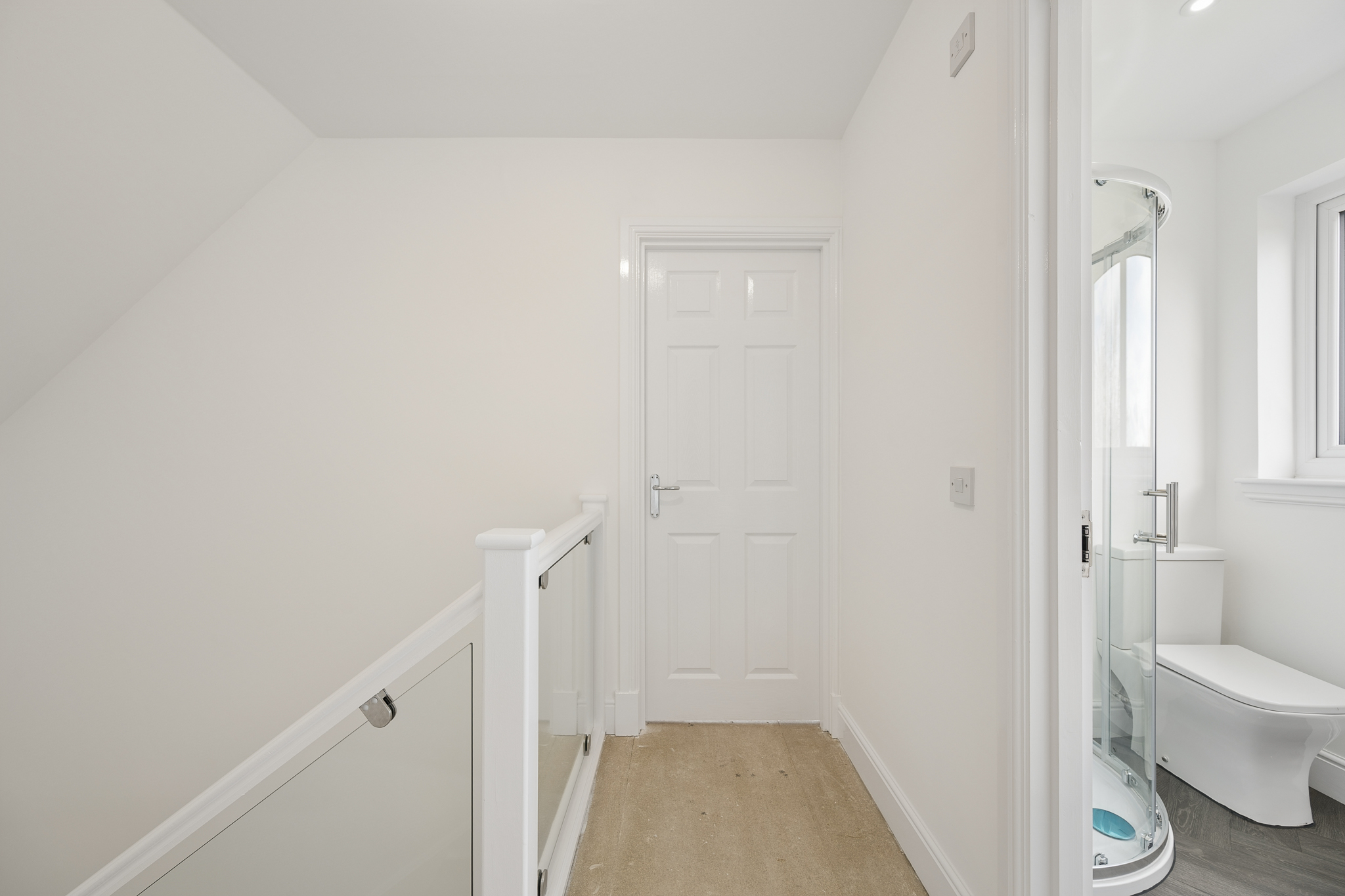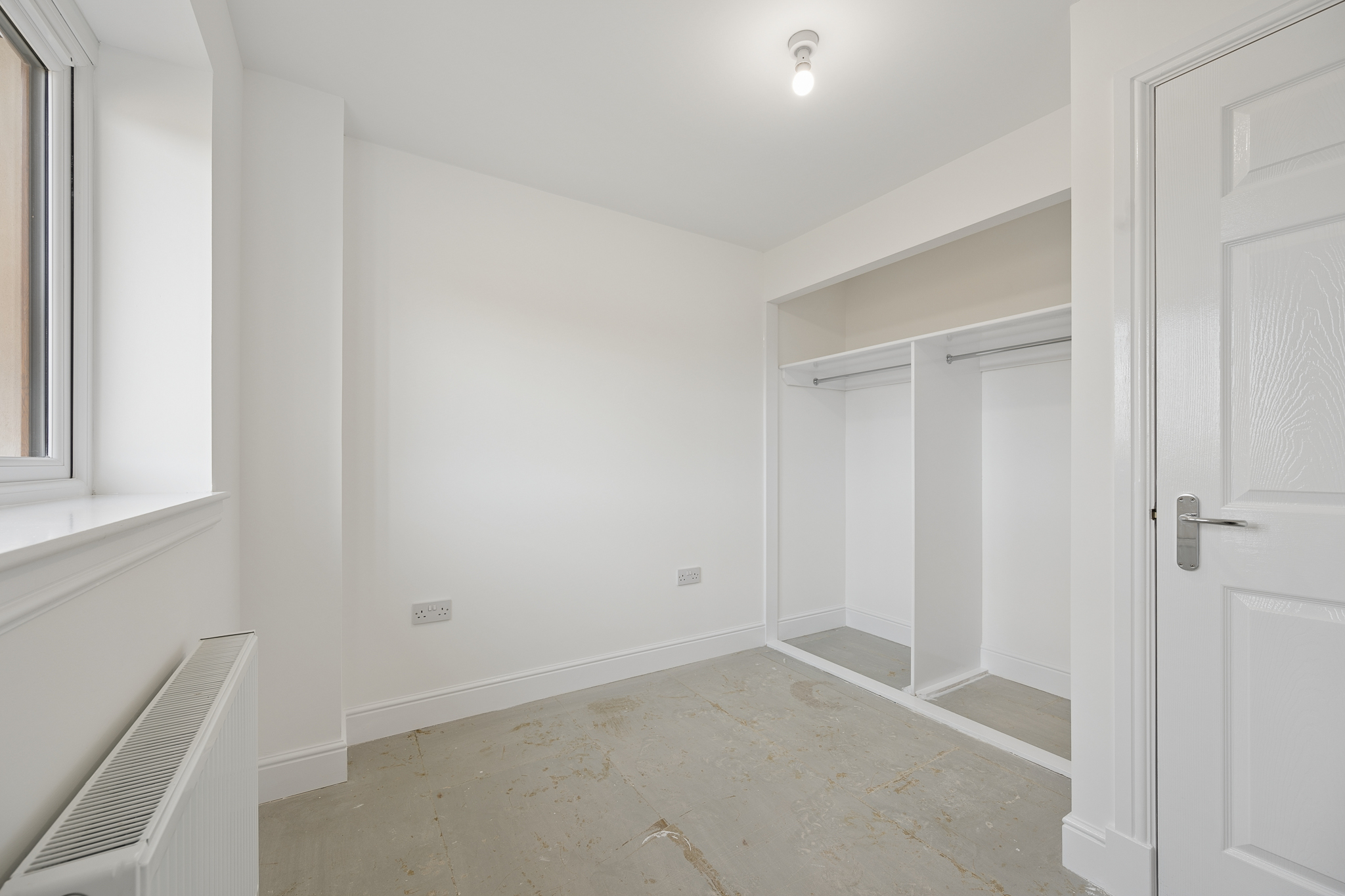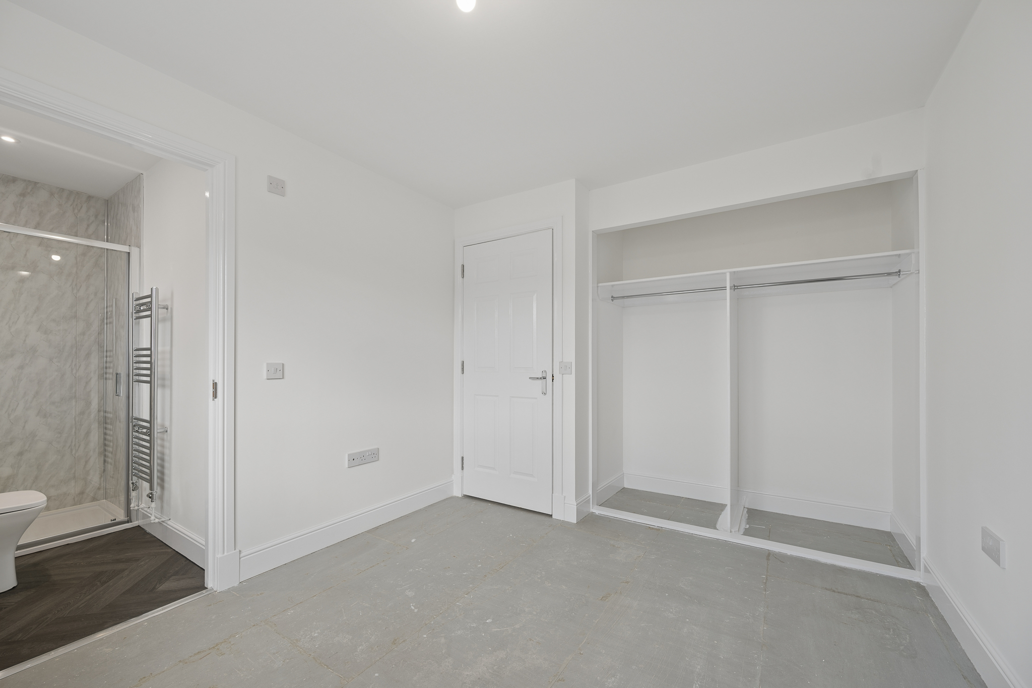 Across the hallway are Bedrooms Two and Three. Bedroom Two benefits from built in storage and its own stylish en-suite shower room, while Bedroom Three enjoys rear facing views and integrated storage, making it perfectly suited as a single bedroom, nursery or home office.