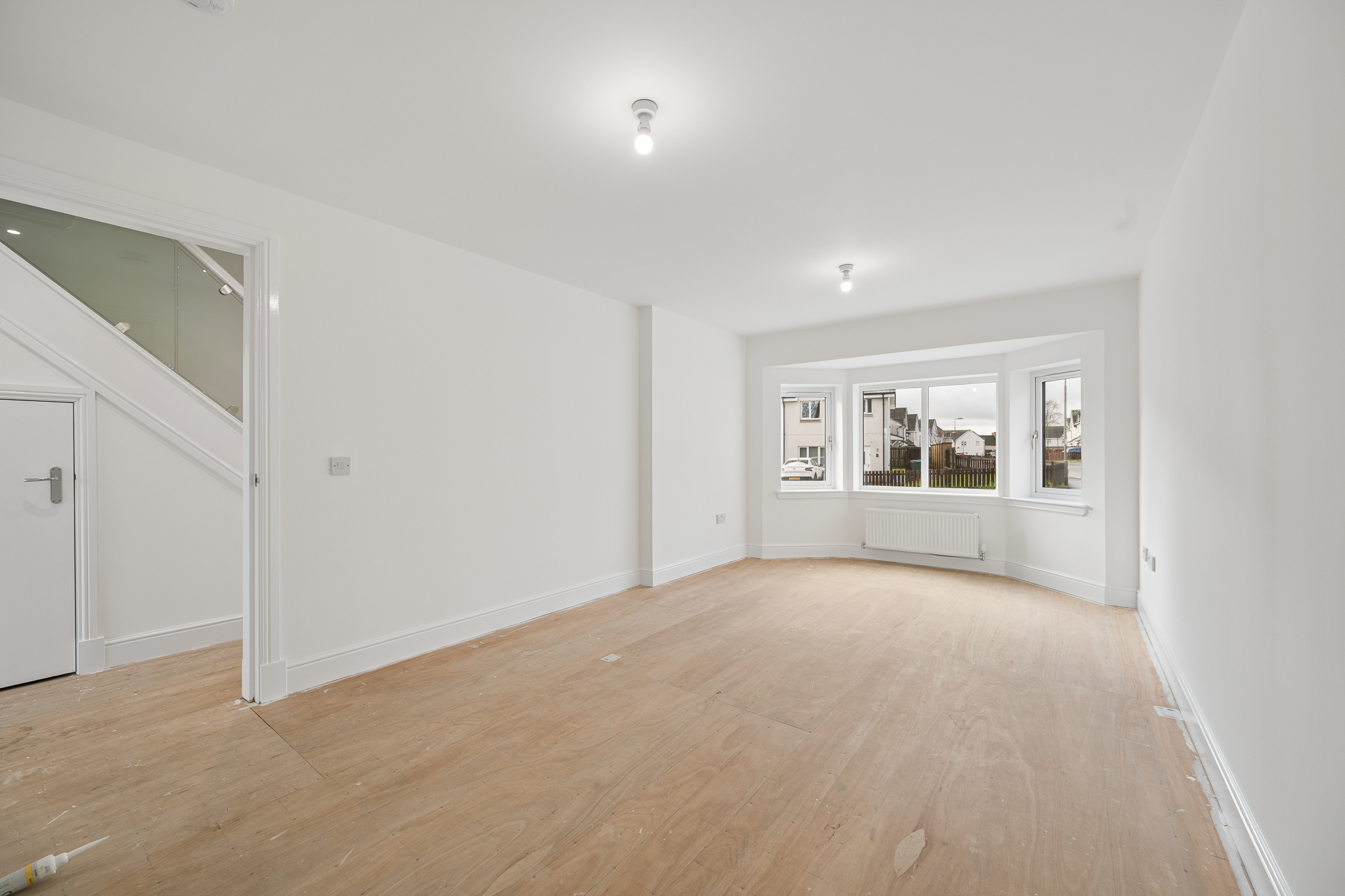 To your left, the lounge is a beautifully proportioned space, centred around a bright bay window that floods the room with natural light. It’s an inviting setting for relaxed evenings or entertaining guests.