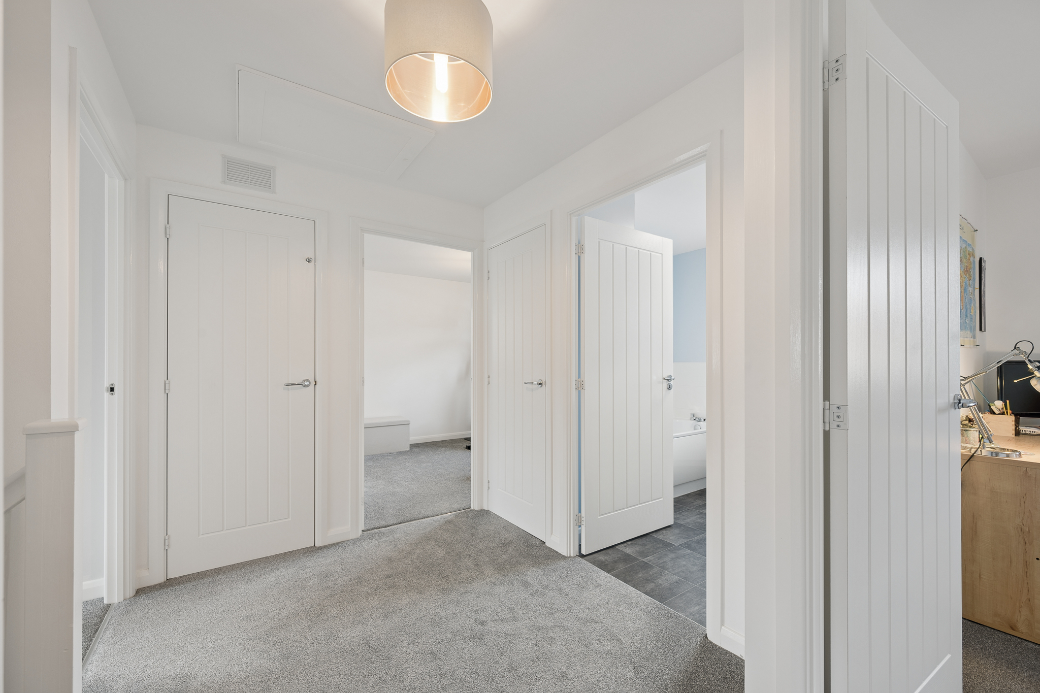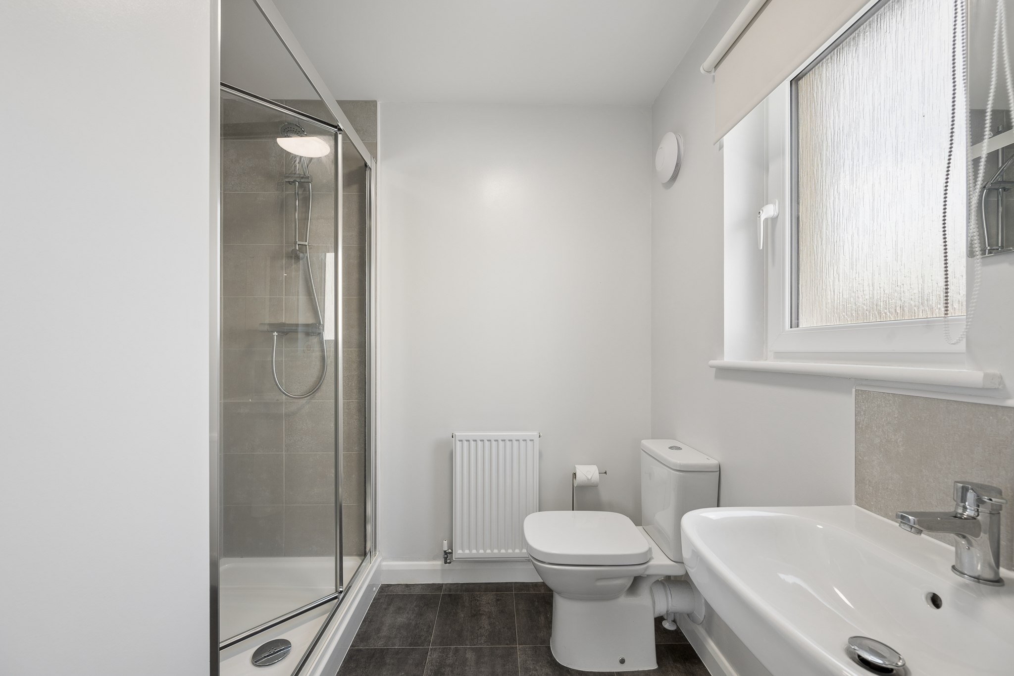 Completing the upper floor is the family bathroom, finished with a modern three-piece suite including bath, creating a calm and functional space for daily routines.