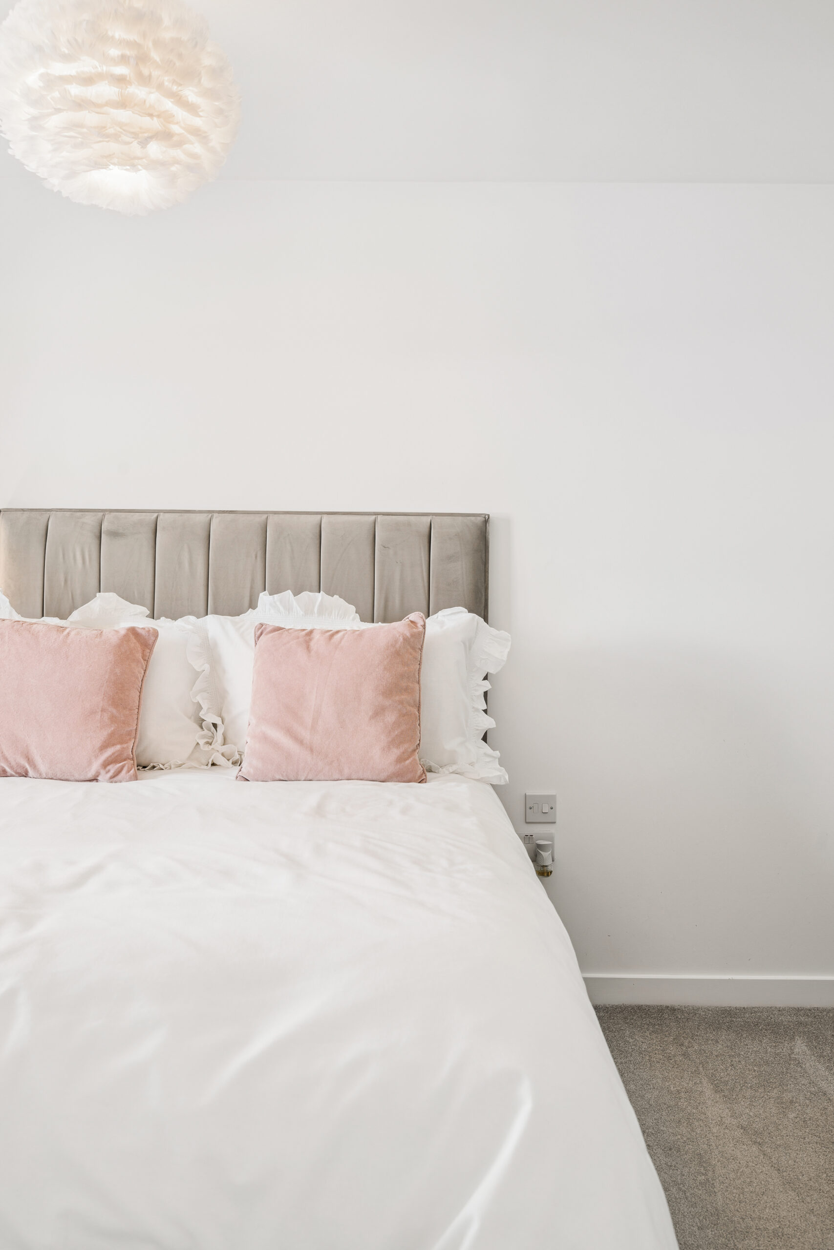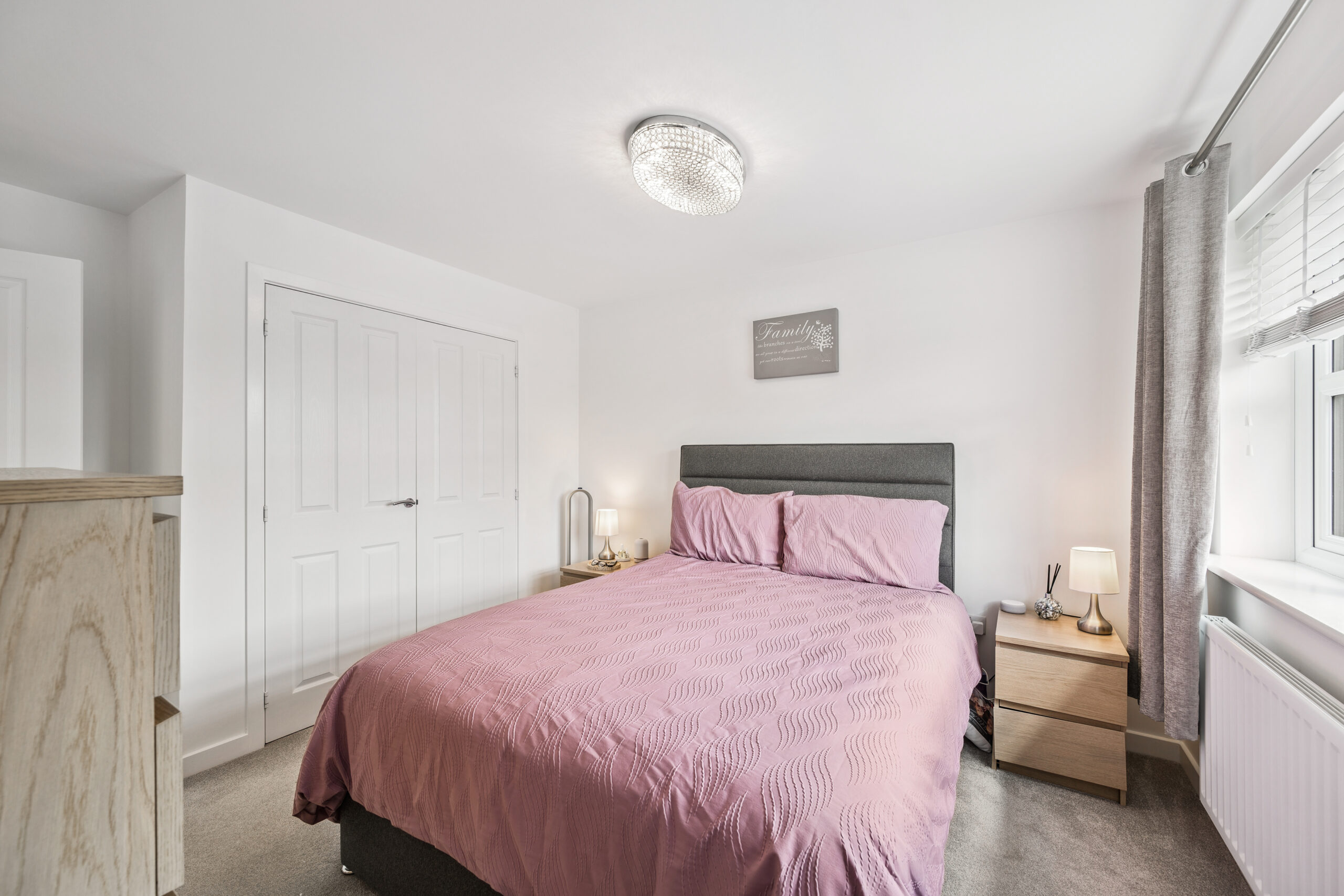 Upstairs, the sense of space continues. The landing leads to four well-proportioned double bedrooms, all featuring fresh carpets and tasteful, neutral décor. The principal bedroom is particularly impressive, easily accommodating a king-size bed with space for freestanding furniture. Built-in wardrobes offer excellent storage, while the private en suite includes a walk-in shower and sleek, modern finishes creating a calm, spa-like atmosphere.