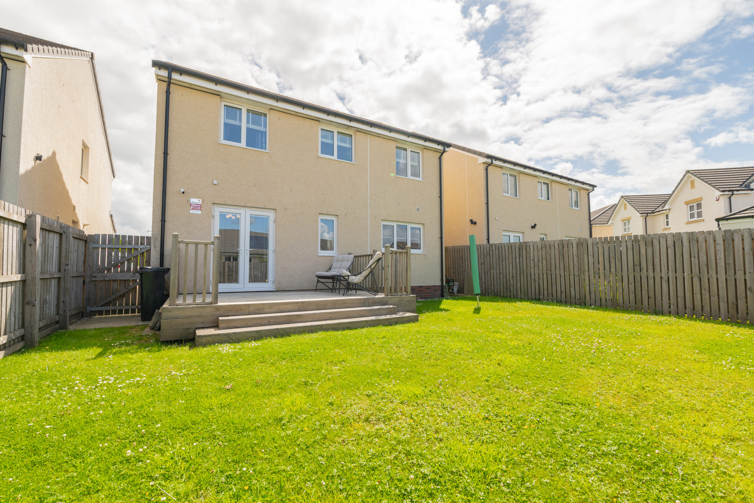 Outside this home boosts soffit lights fitted to the front and rear, the rear garden is expansive yet low maintenance. A large decking area provides a sun trap that is perfect for summer dining or relaxing, while a well-kept lawn offers space for play, pets, or even further landscaping. Whether you prefer a peaceful retreat or a space for entertaining, this garden caters for both.