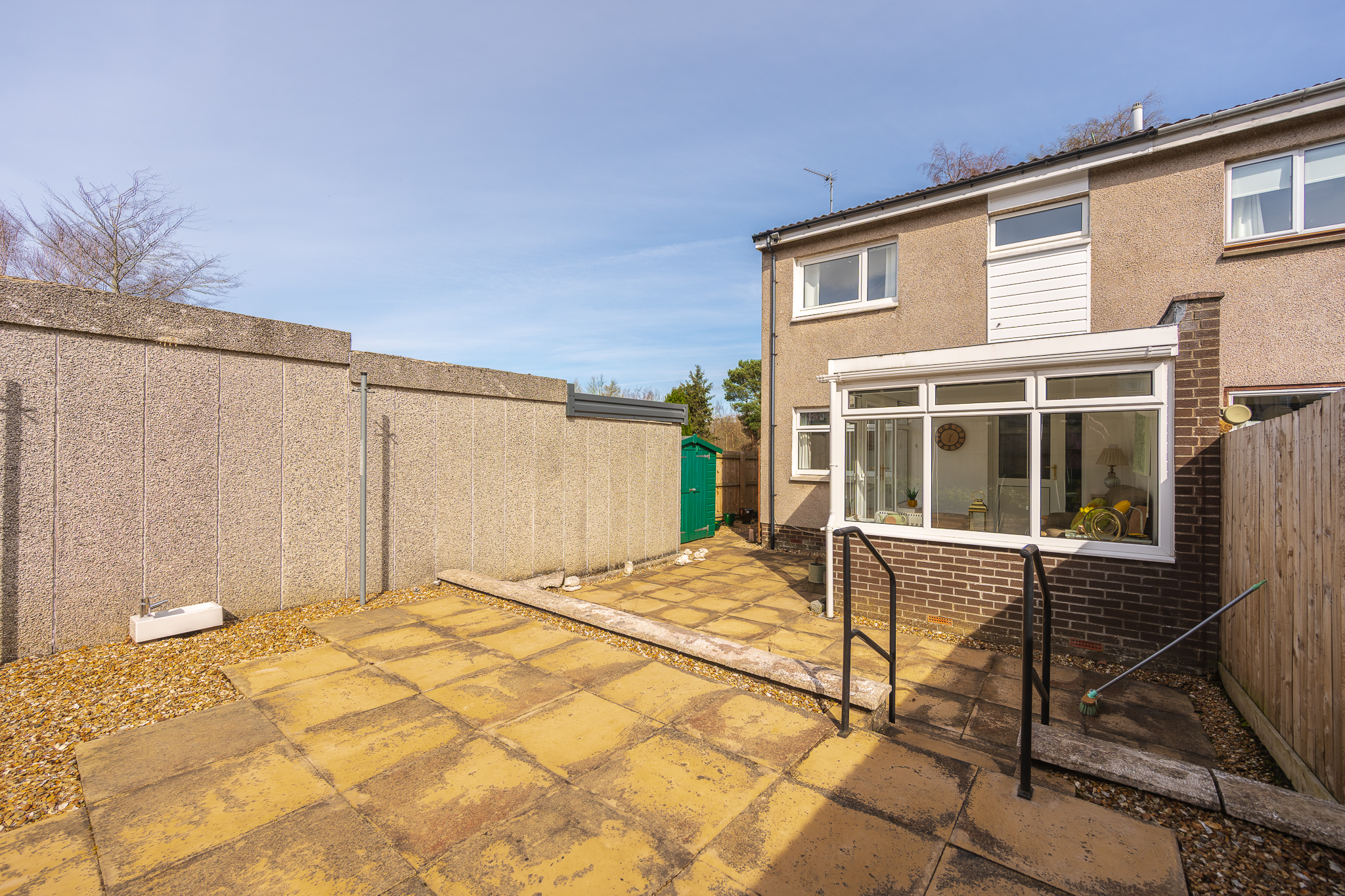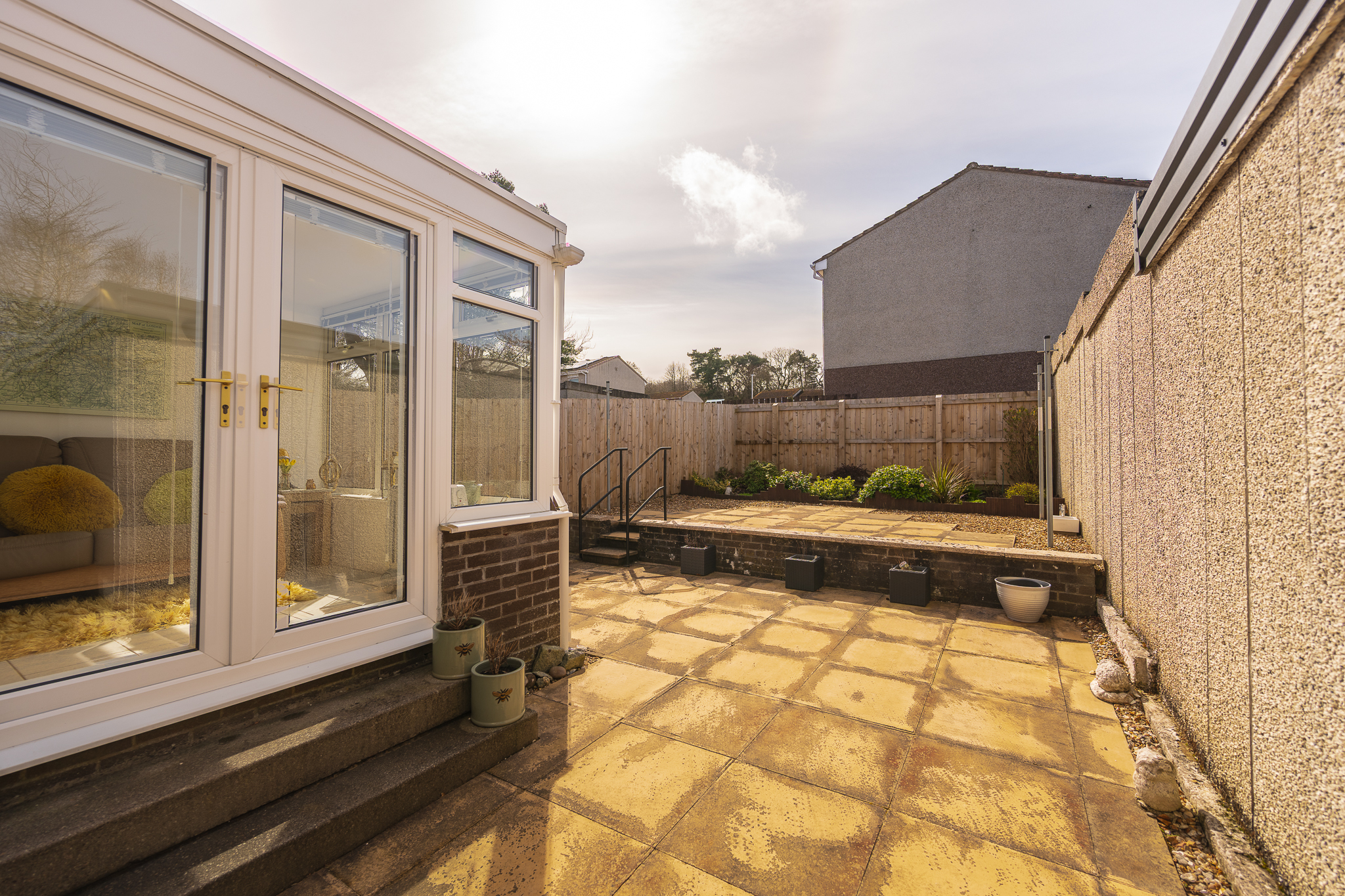 Stepping outside, the property continues to impress with its private and low maintenance rear garden, offering a peaceful retreat for outdoor living. A paved patio provides the perfect setting for al fresco dining or morning coffee, this area is mainly slabbed with stone chips. Mature borders and thoughtful planting create a sense of privacy and seclusion, making this outdoor space a true extension of the home.