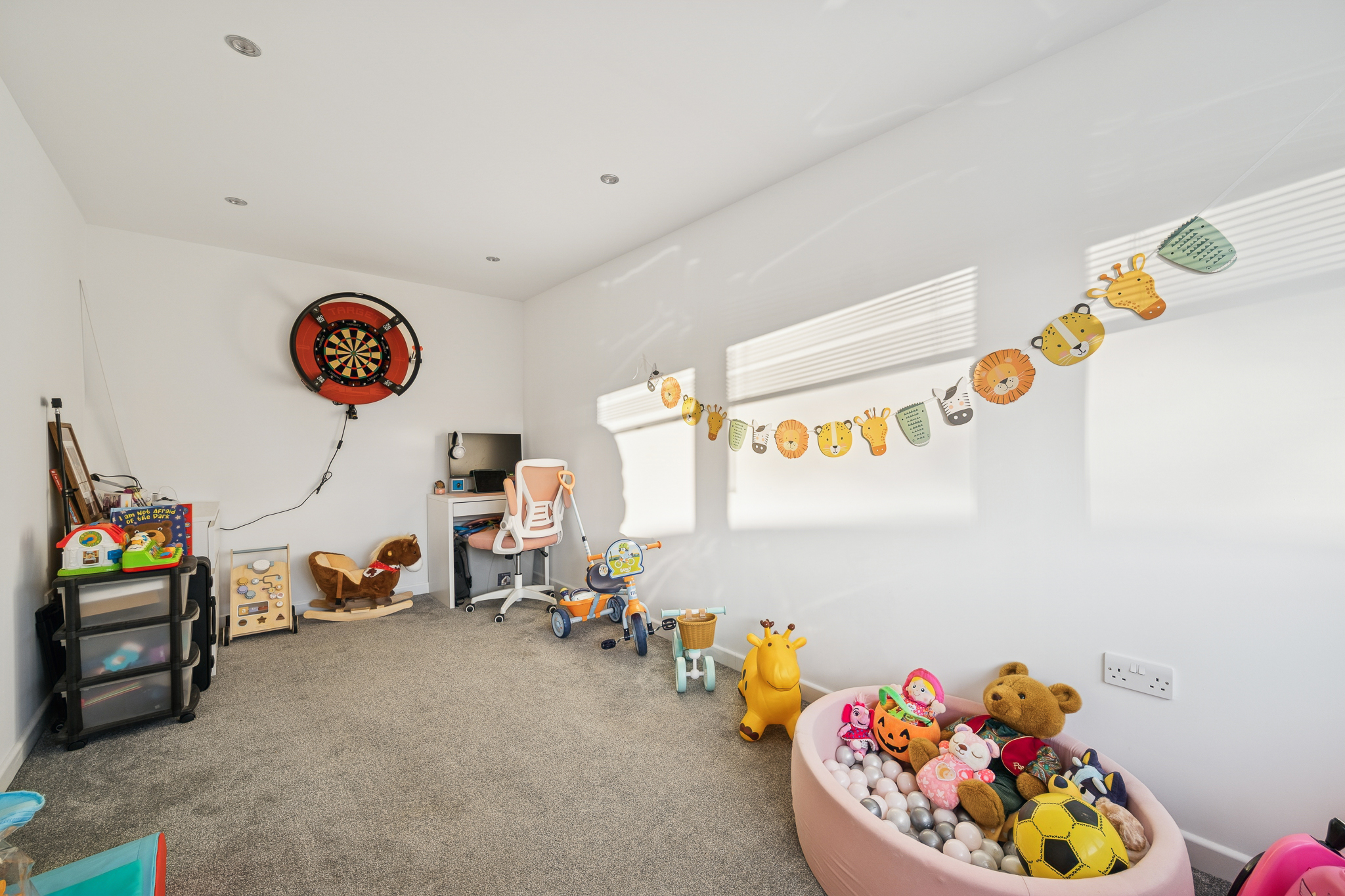 Upon entry, you are welcomed into a bright and spacious hallway that introduces the warmth and flow of the home. To the right-hand side, the converted garage offers a versatile space that can be used as a playroom, second lounge, formal dining area, or home office, ideal for adapting to family life or entertaining guests.
