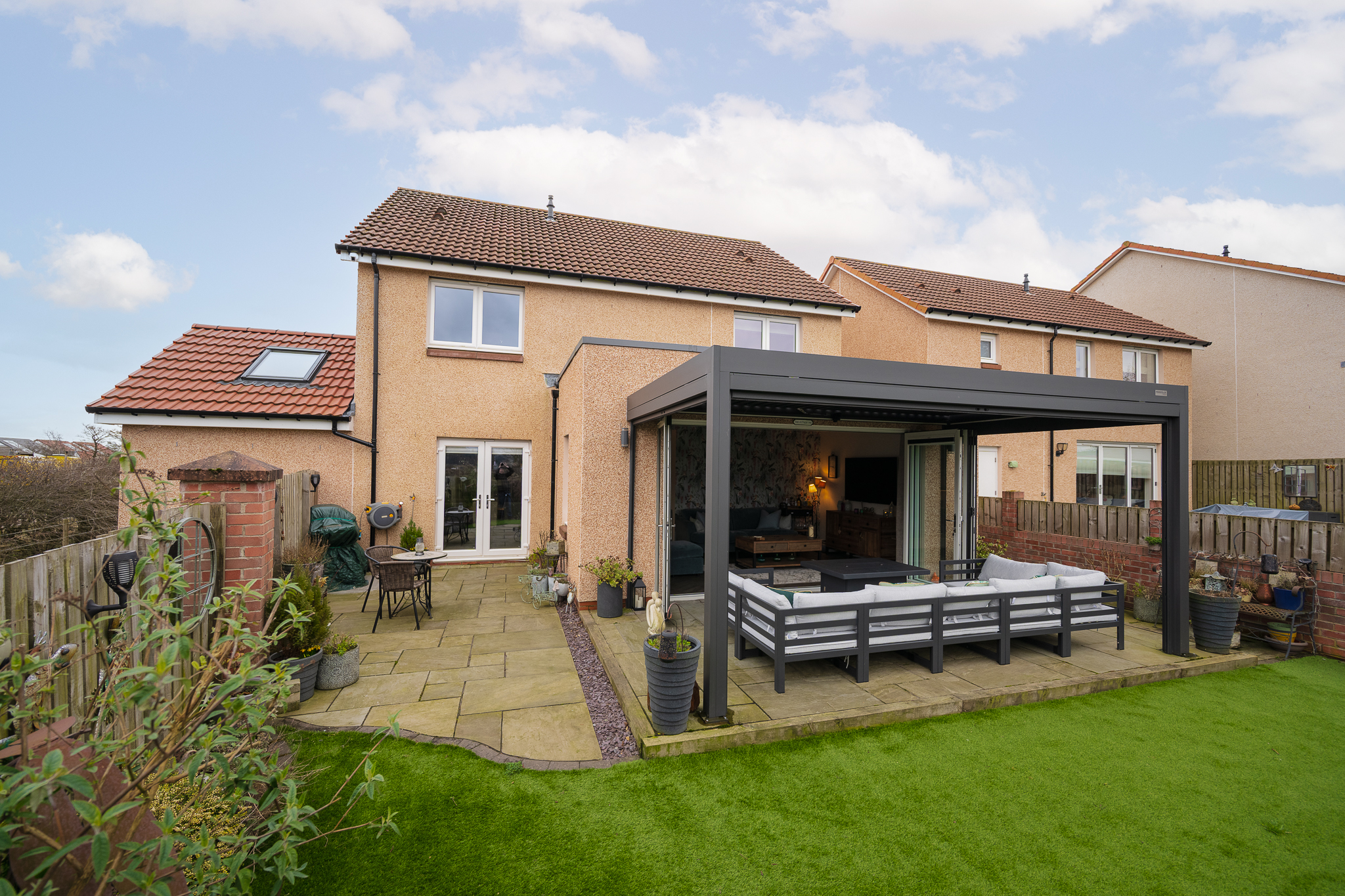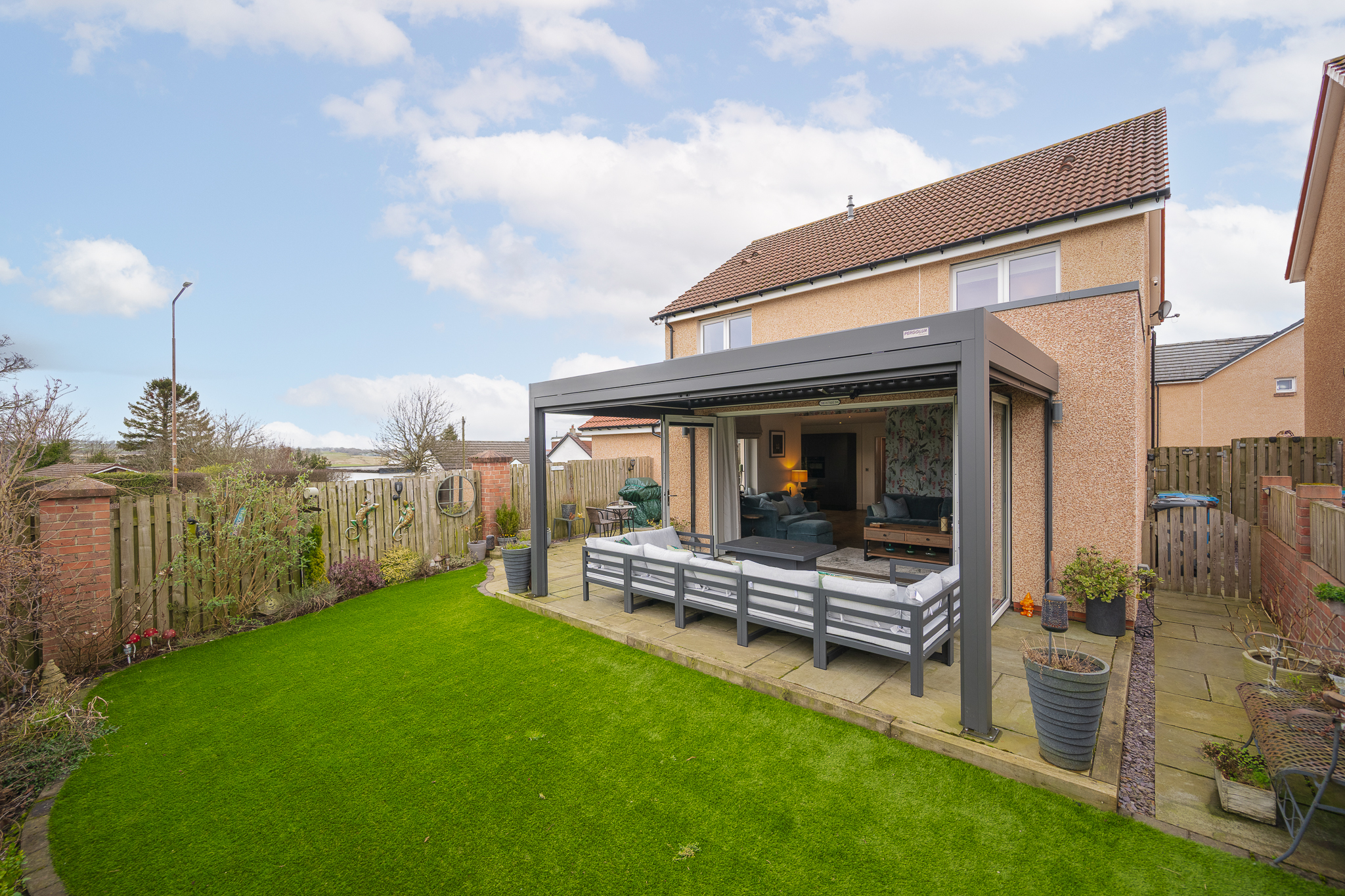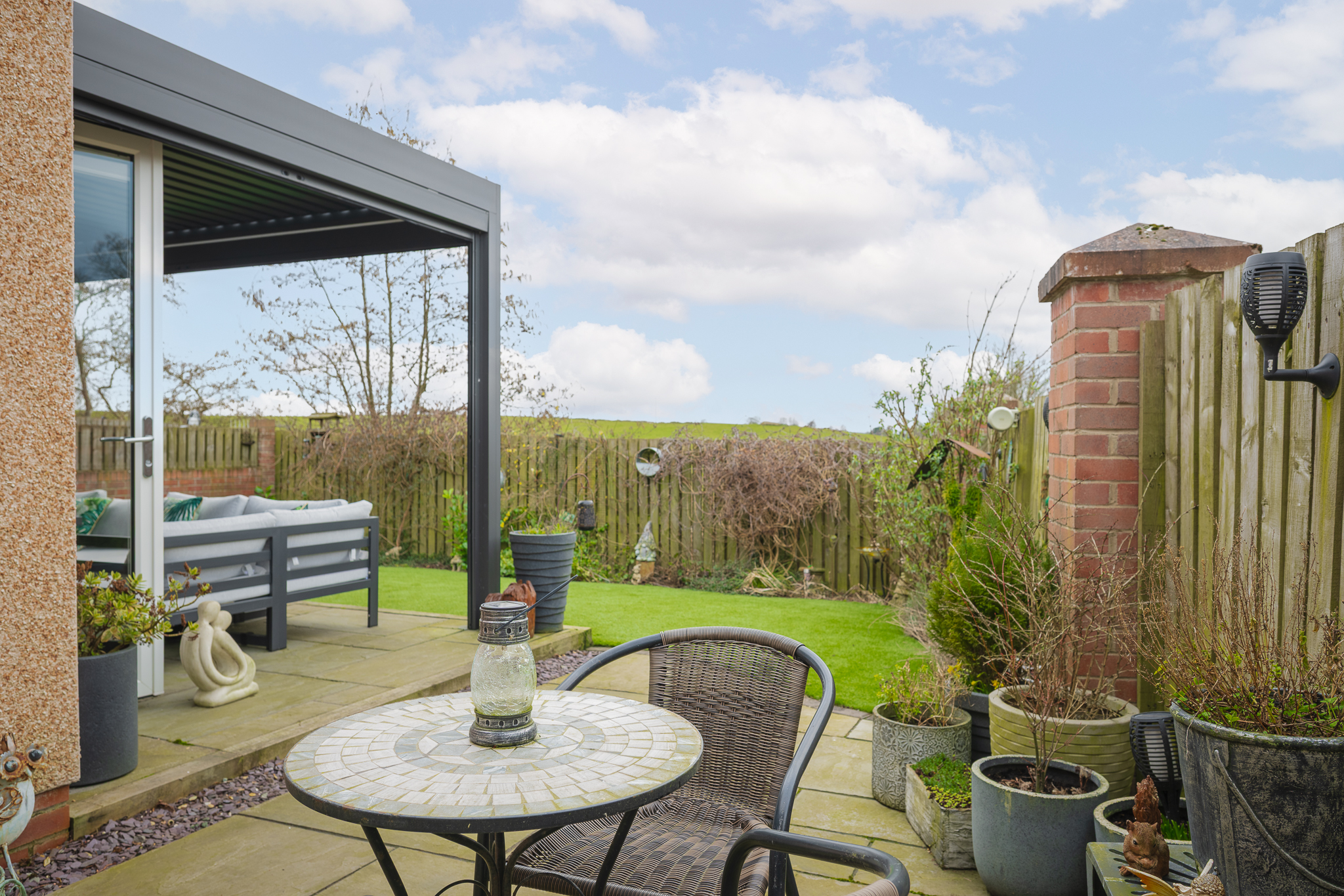 Externally, the property continues to impress. The south west facing rear garden is a true sun trap and enjoys a high level of privacy with uninterrupted countryside views beyond. The garden has been thoughtfully landscaped for low maintenance and includes a pergola seating area, creating a perfect outdoor entertaining space for summer evenings and gatherings with family and friends. To the front, the property benefits from a double driveway, a single garage and additional visitor parking within the development.