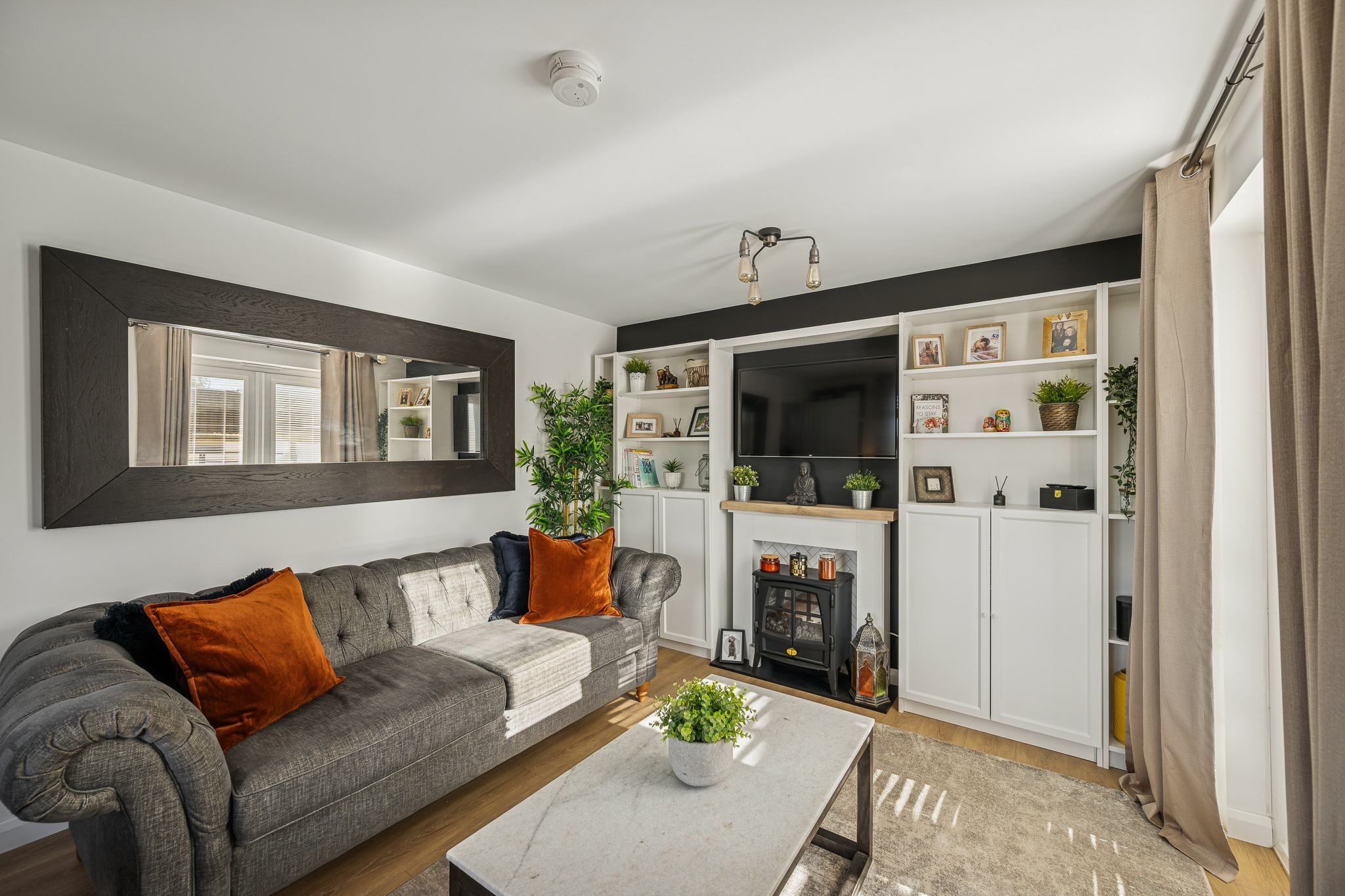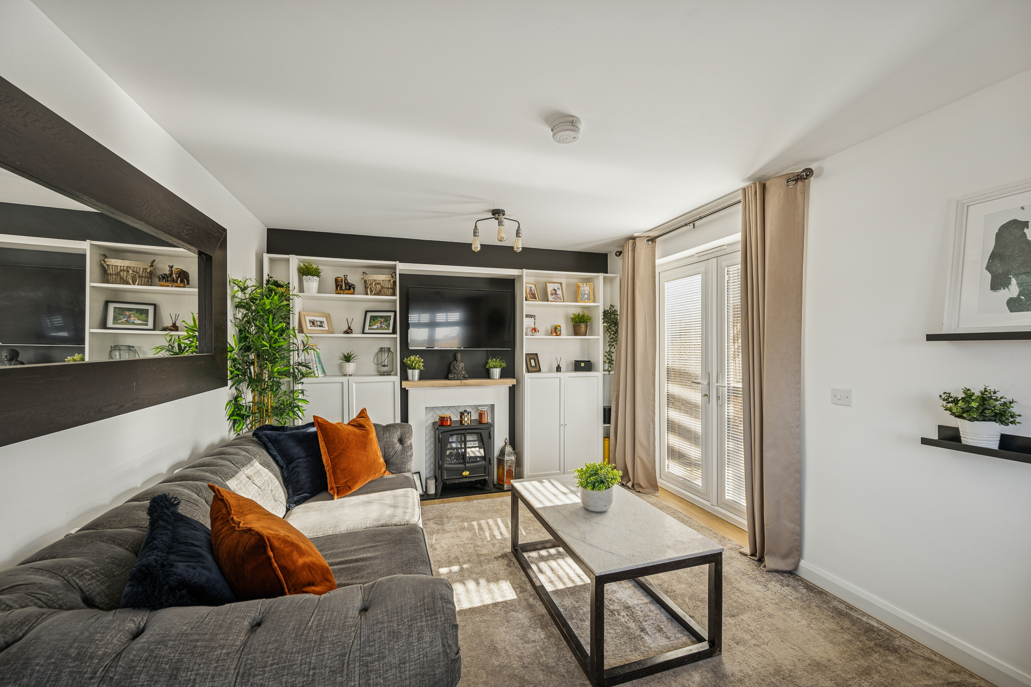 Upon entering, you’re greeted by a bright and spacious hallway that immediately sets the warm and inviting tone of the home. To the right hand side sits the lounge, a generous and well proportioned space that can comfortably accommodate two large sofas. This room benefits from patio doors leading directly to the south-facing garden, allowing natural light to flood the space throughout the day. The room also features space for a media wall or fireplace, making it a cosy yet versatile retreat for relaxing or entertaining.