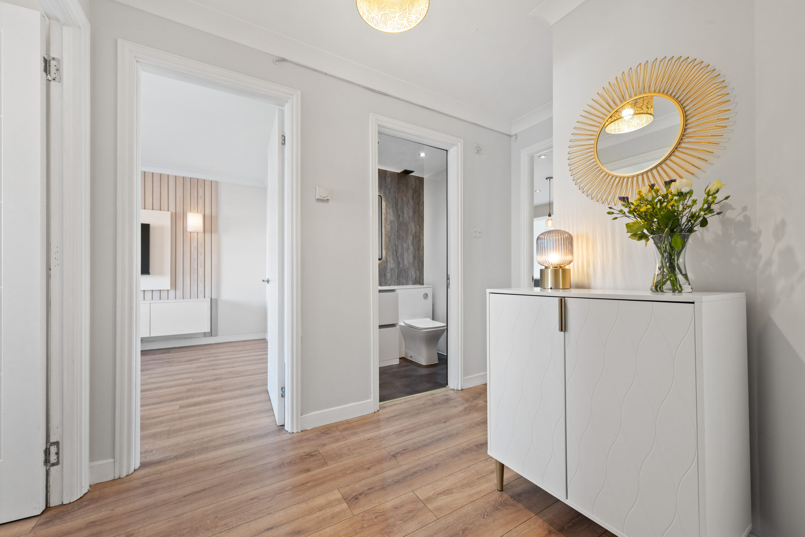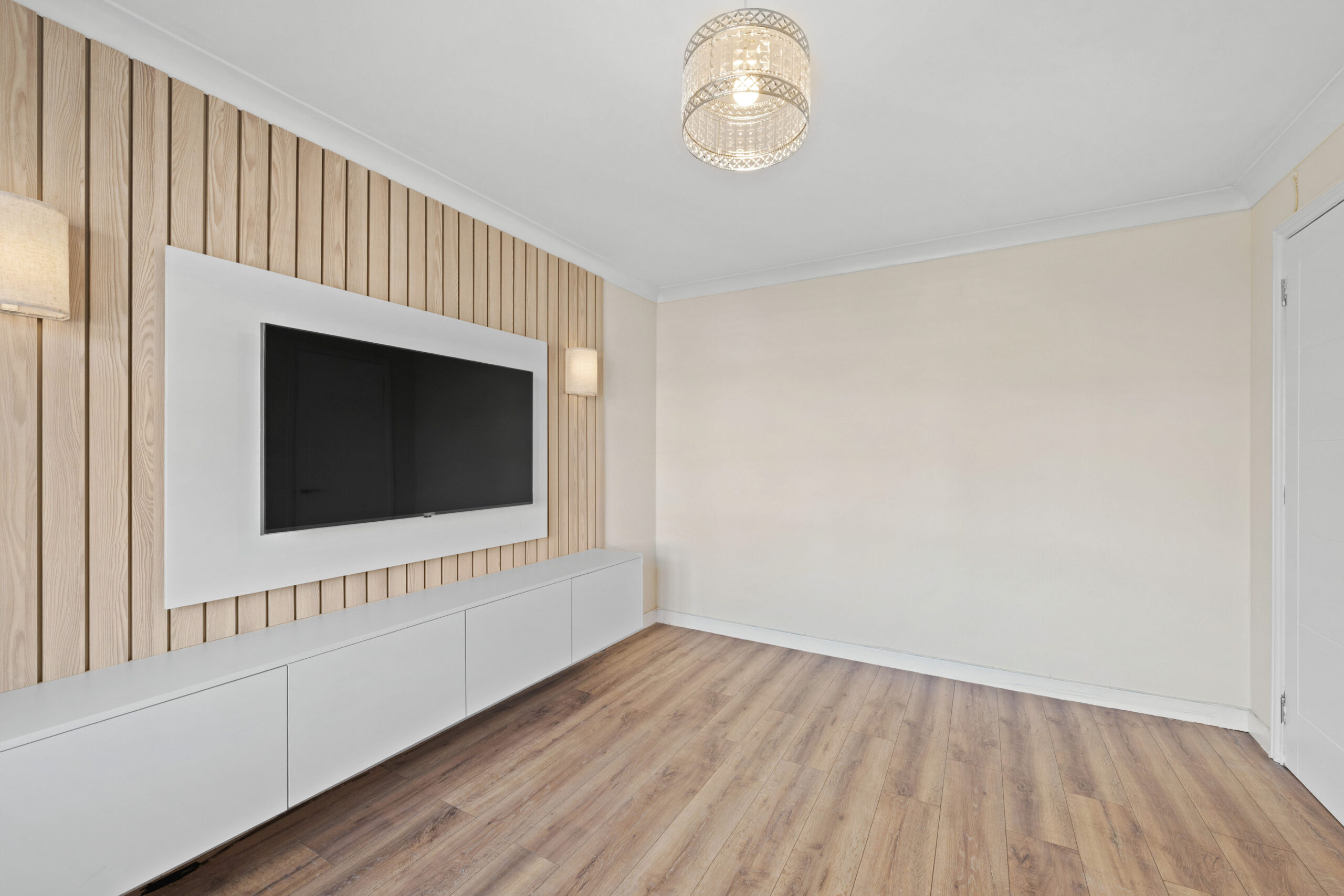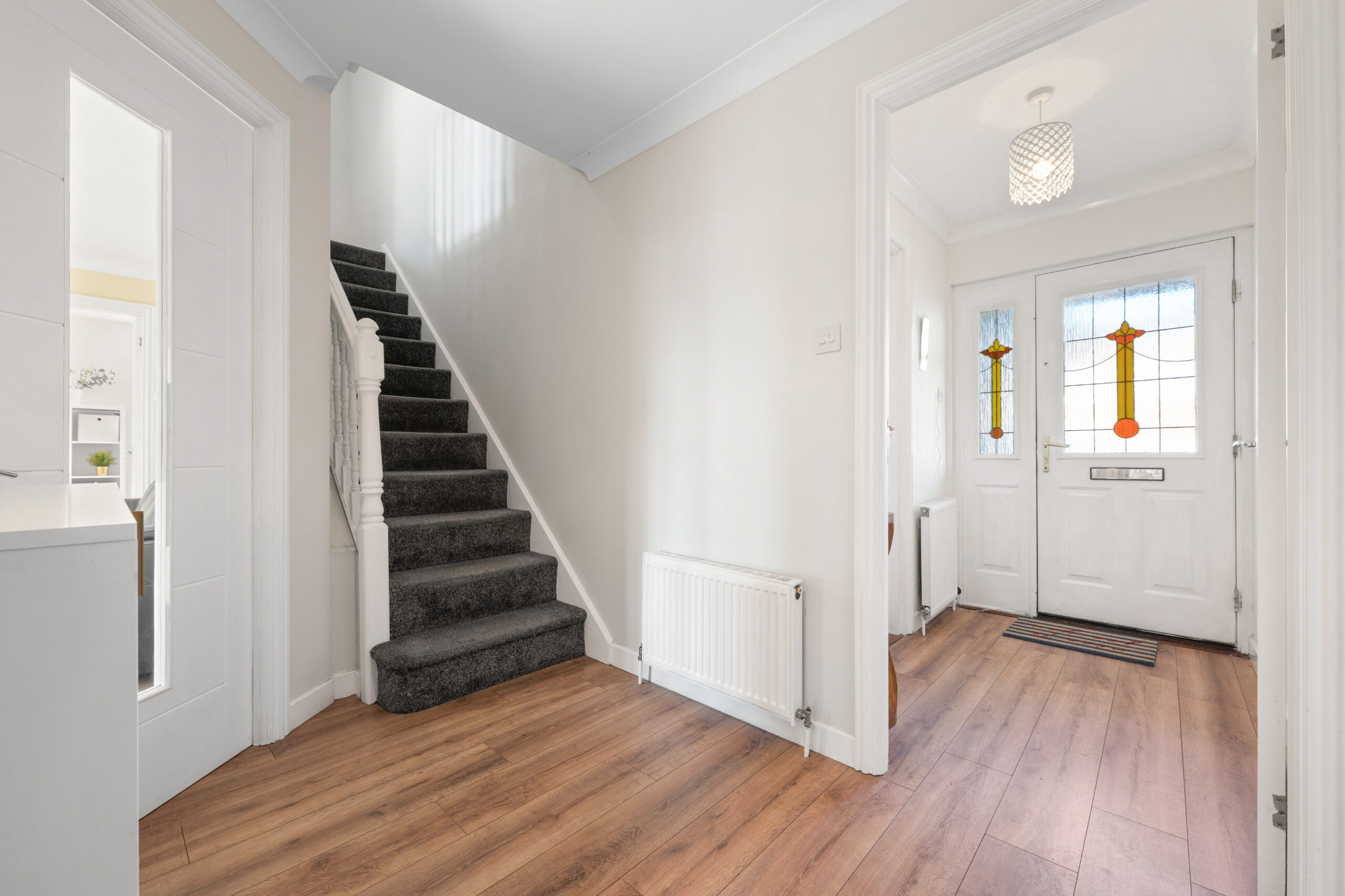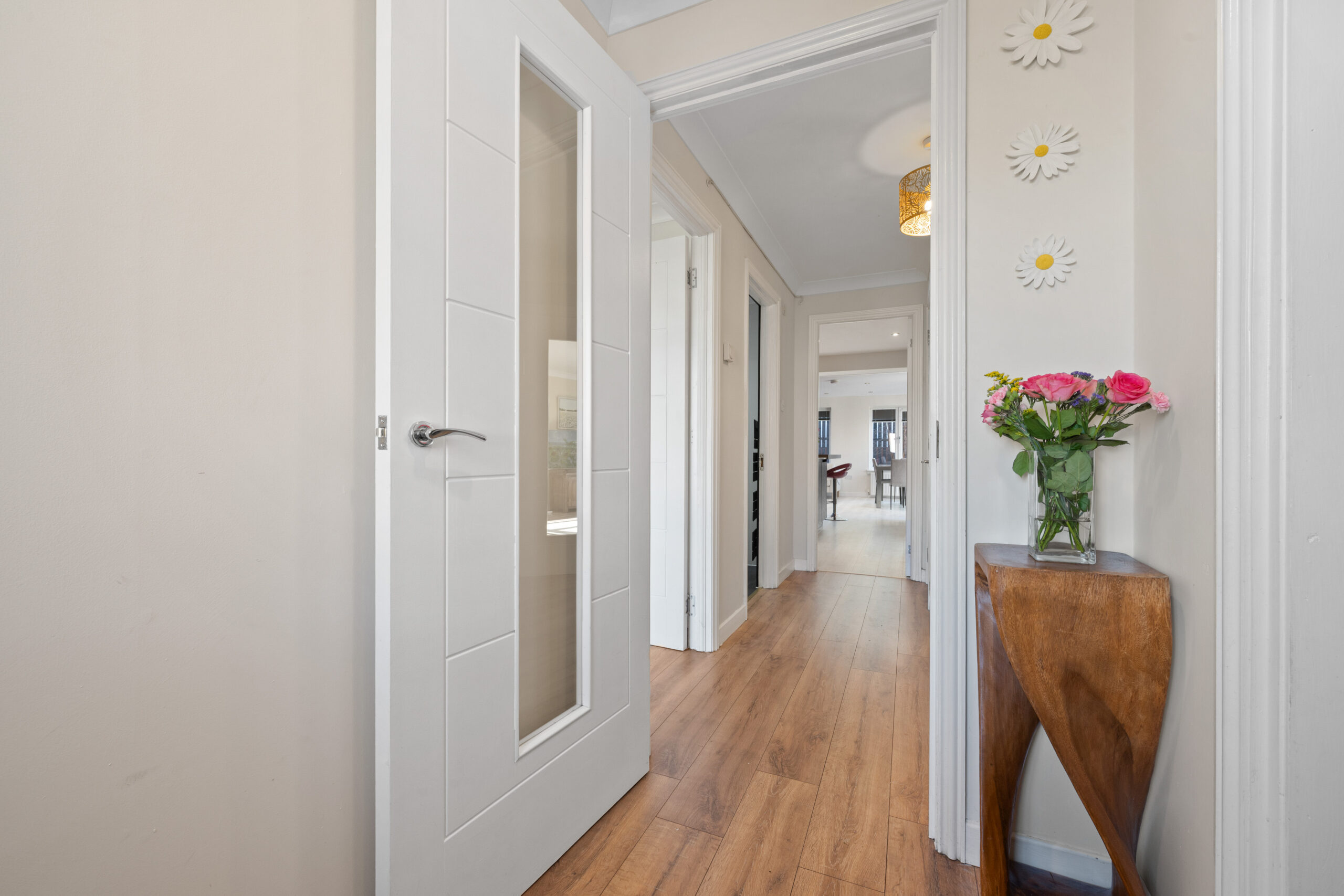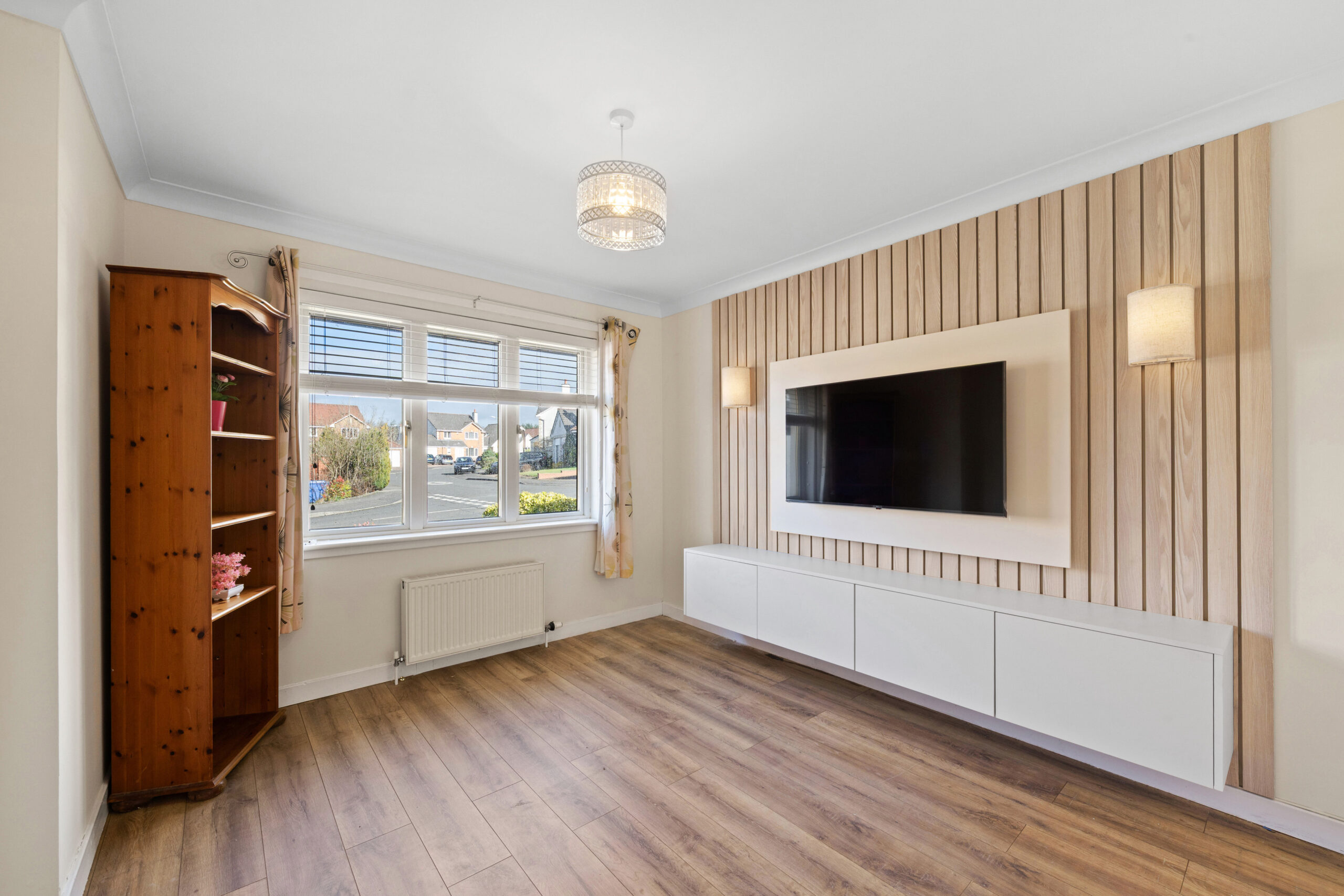 Upon entering, you are welcomed into a bright and spacious hallway which provides access to the main living areas. Positioned to the left hand side is a versatile front facing reception room, currently used as an additional lounge, featuring wooden flooring and a media wall. This flexible space can also be used as a sitting room, playroom or home office depending on requirements.