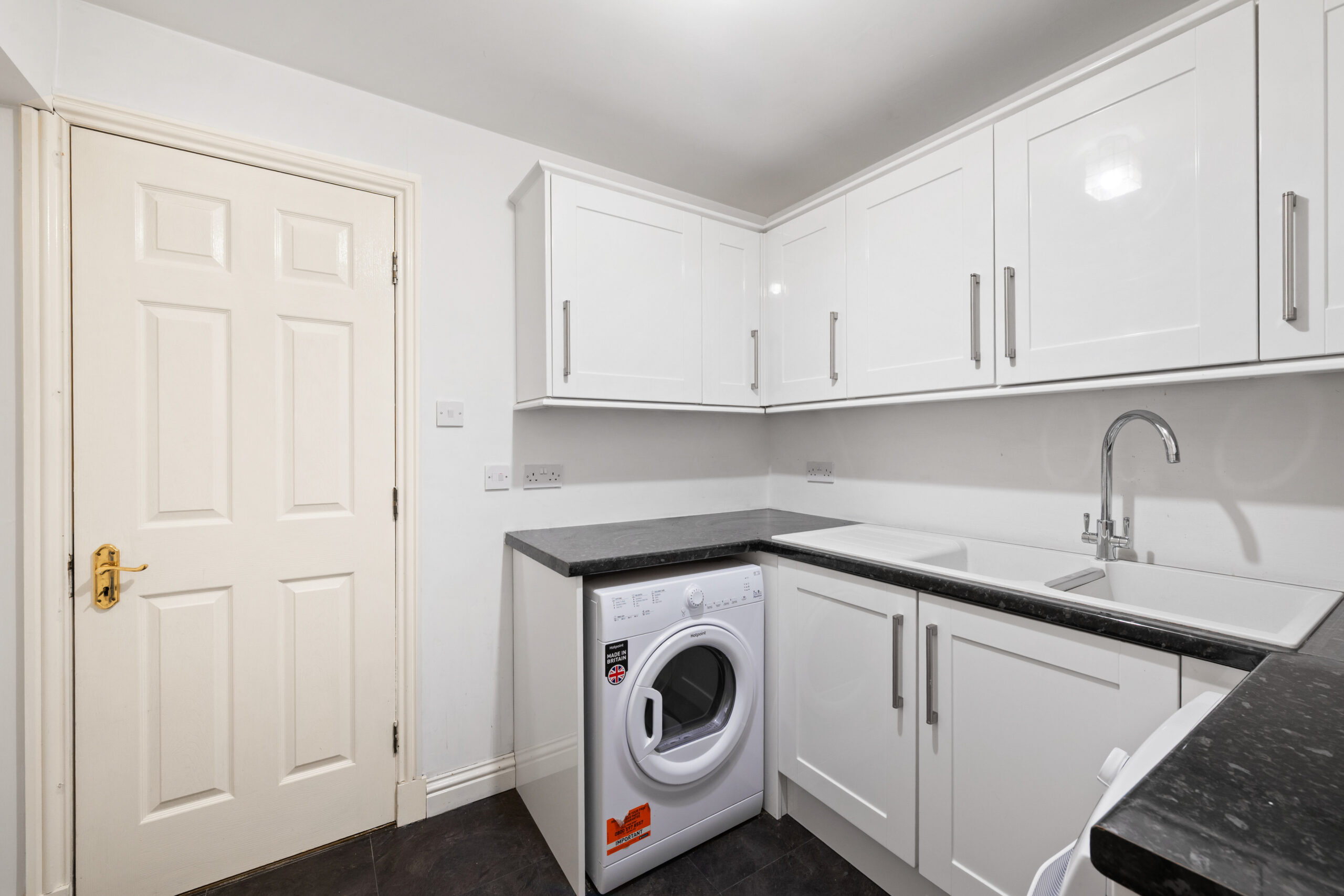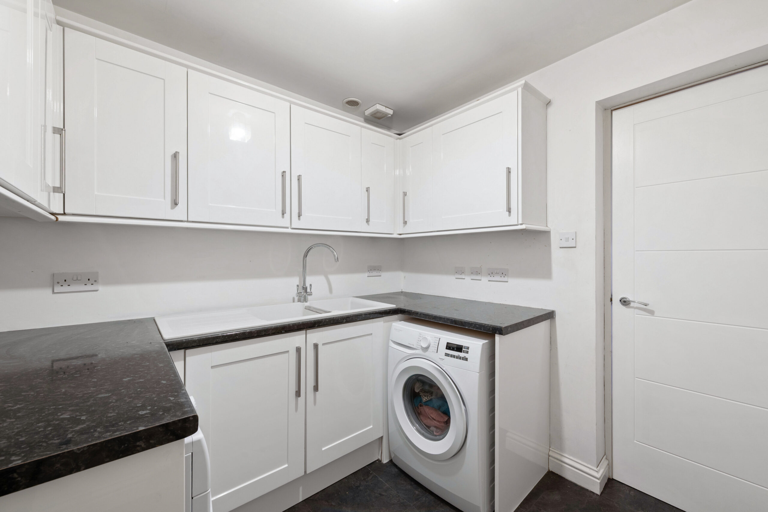 The ground floor further benefits from a downstairs WC finished with wet wall tiling, along with useful storage cupboards. Internal access is provided to the double garage, part of which has been adapted to create a practical utility area for white goods while still retaining valuable garage storage.