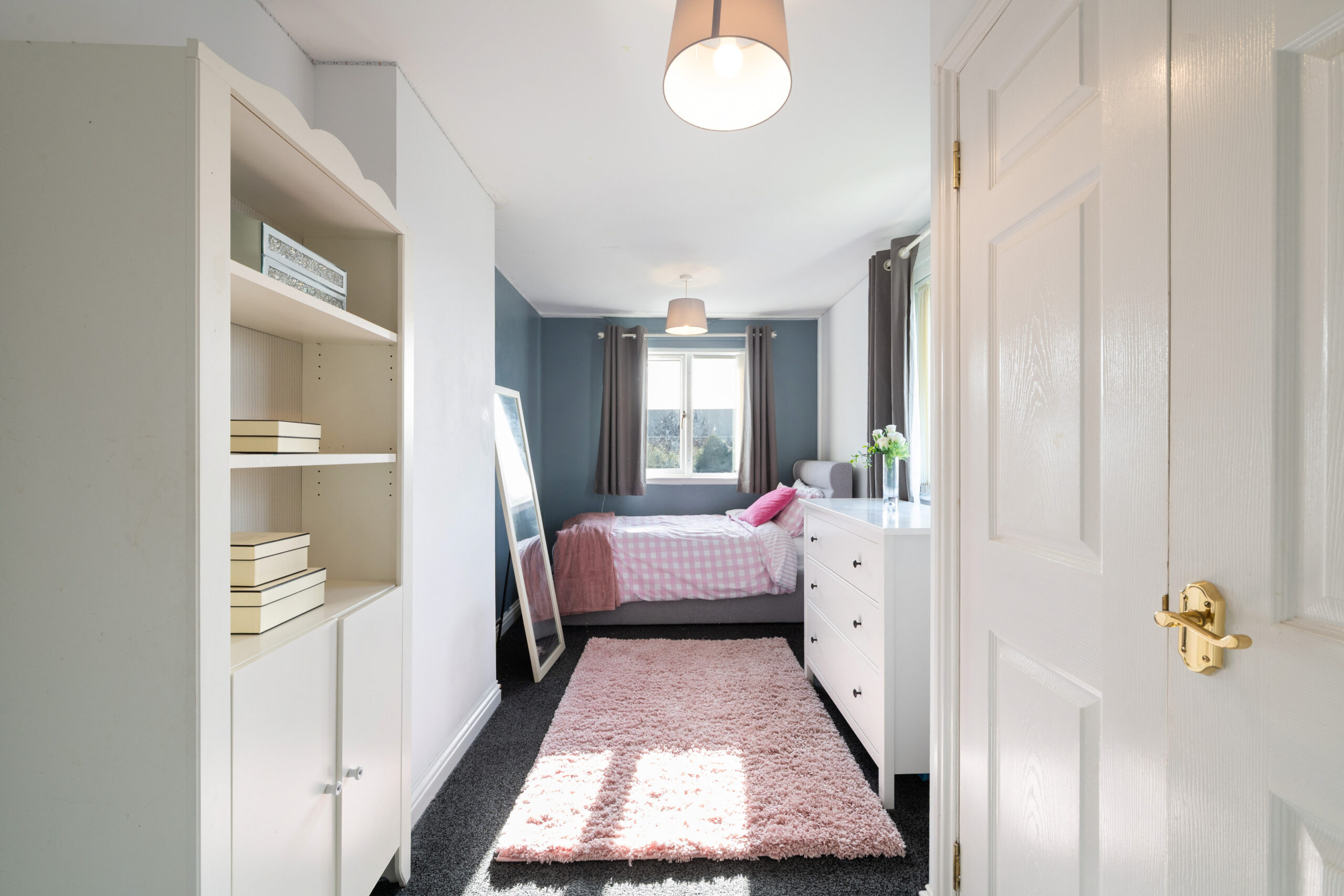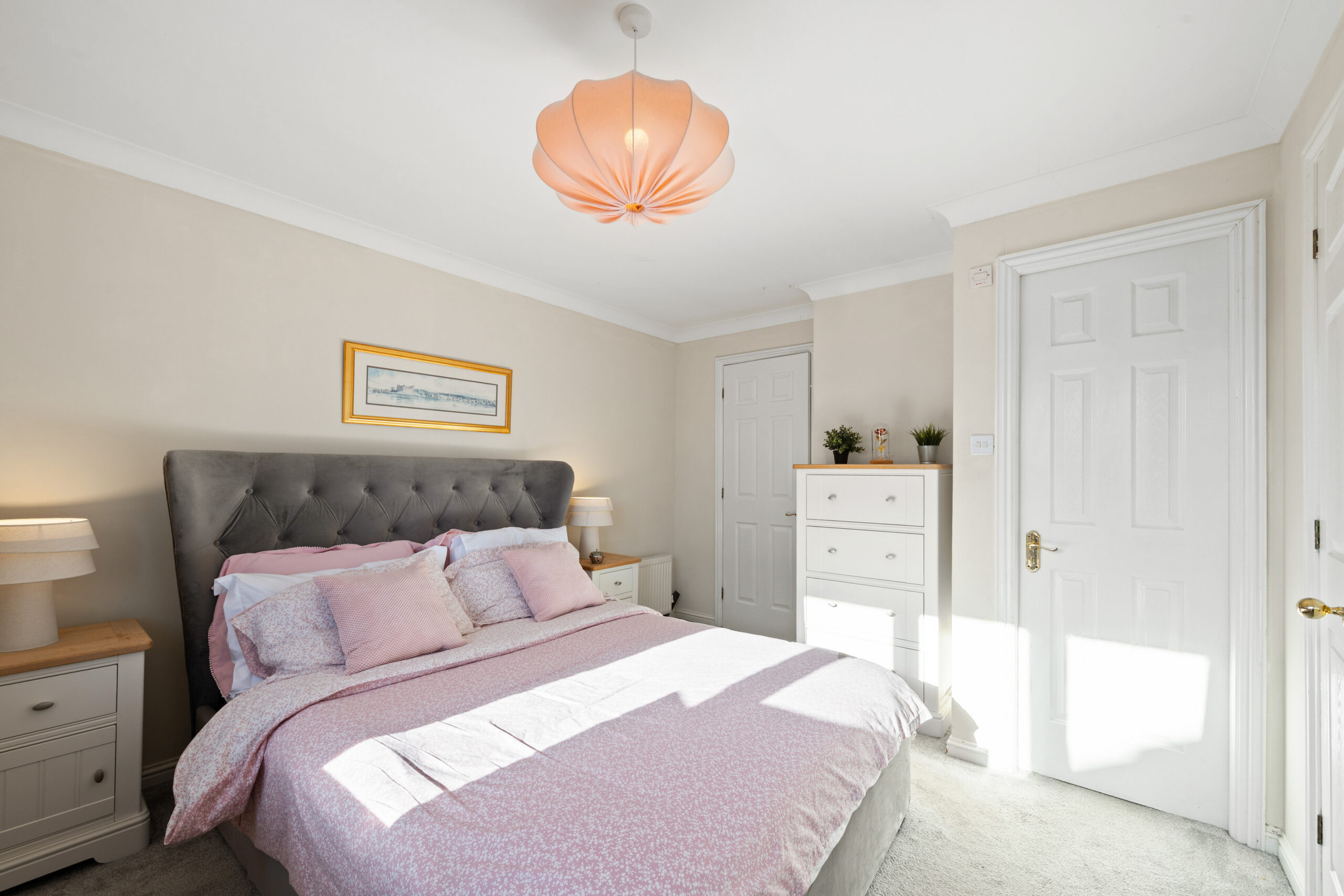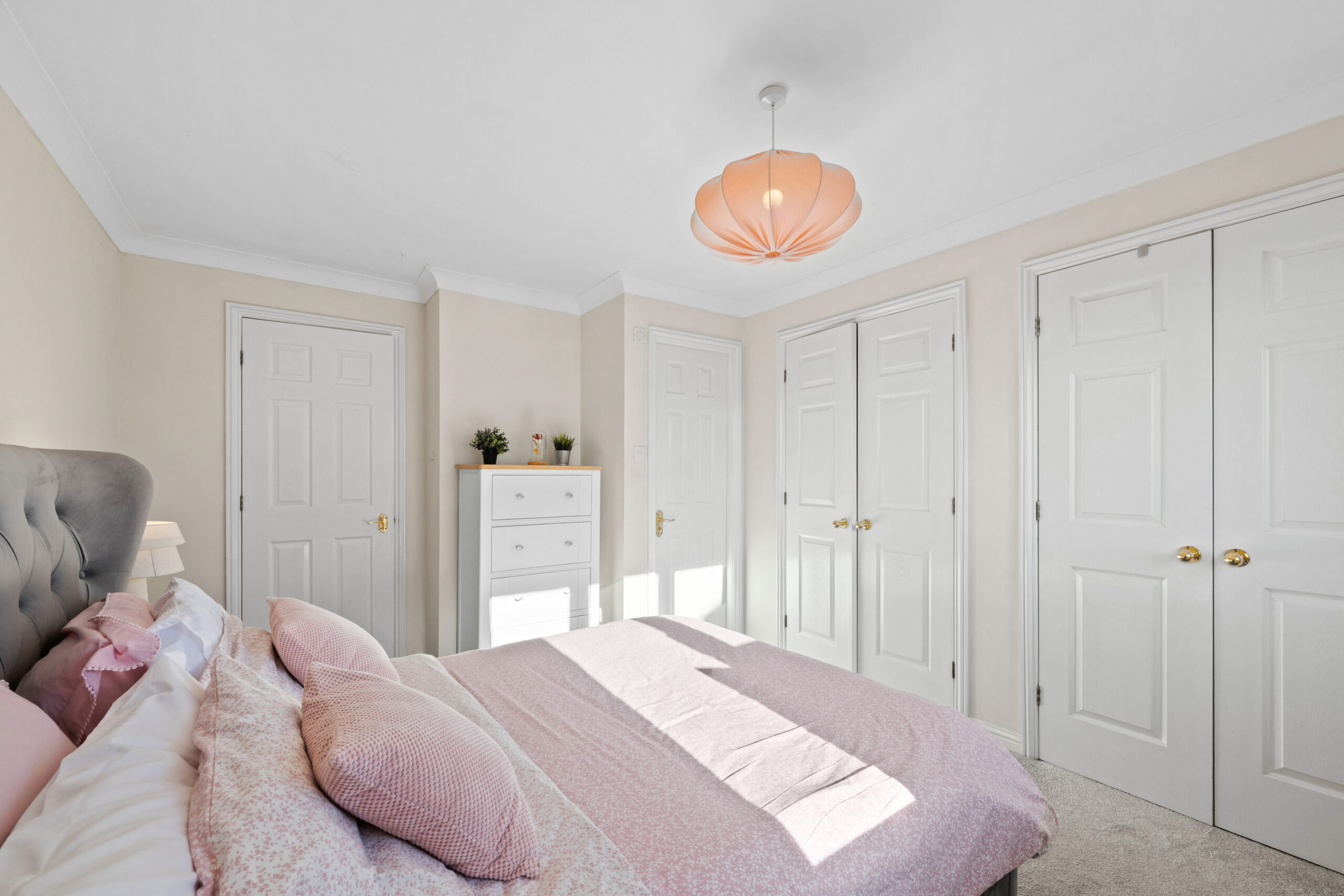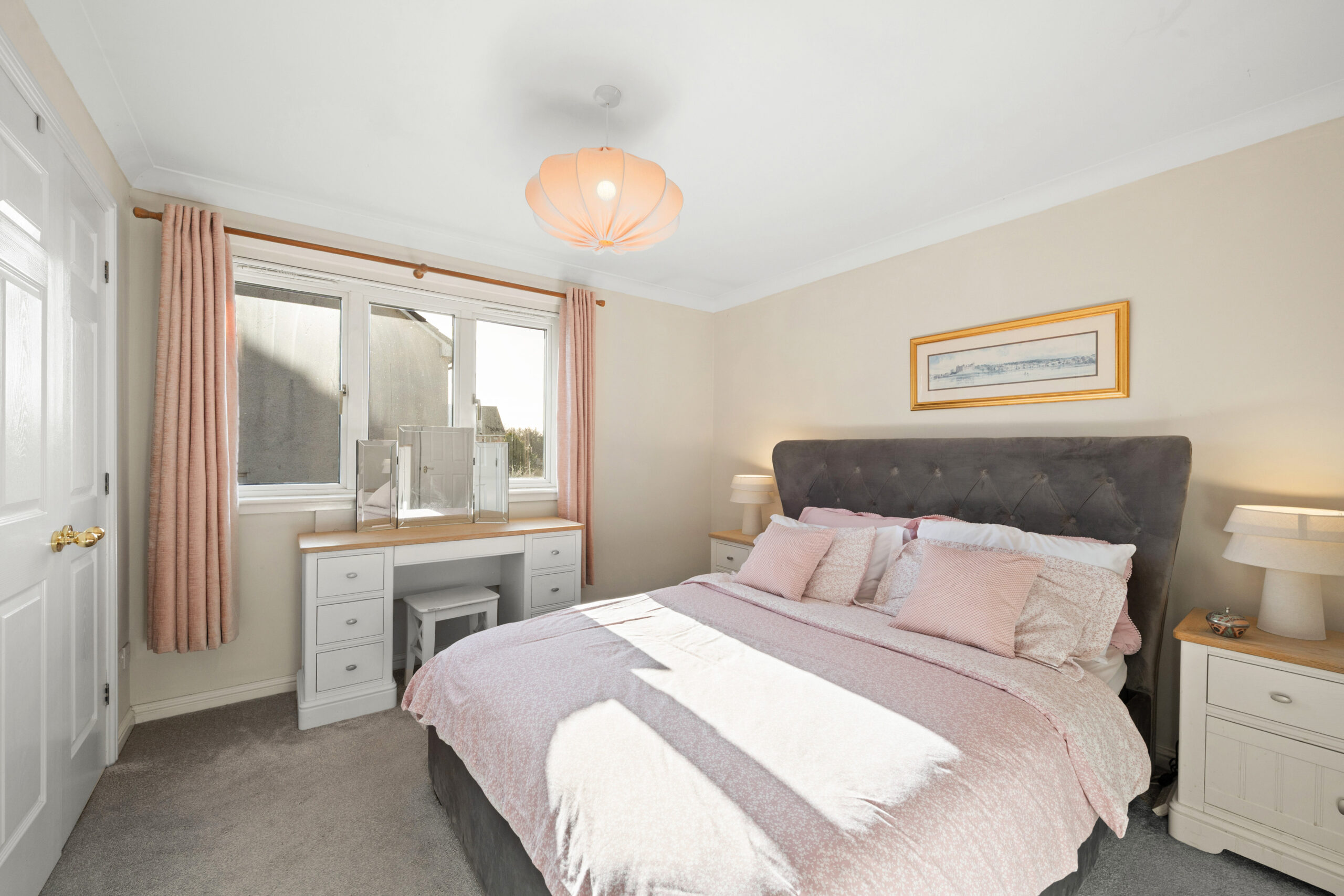Bedroom two, also positioned to the rear and forming part of the two storey extension, is another generous double bedroom with fitted wardrobes and its own ensuite shower room. Bedrooms three, four, and five are all well sized double rooms, each offering space for double beds with bedside cabinets and wardrobe furniture, making them ideal for growing families.