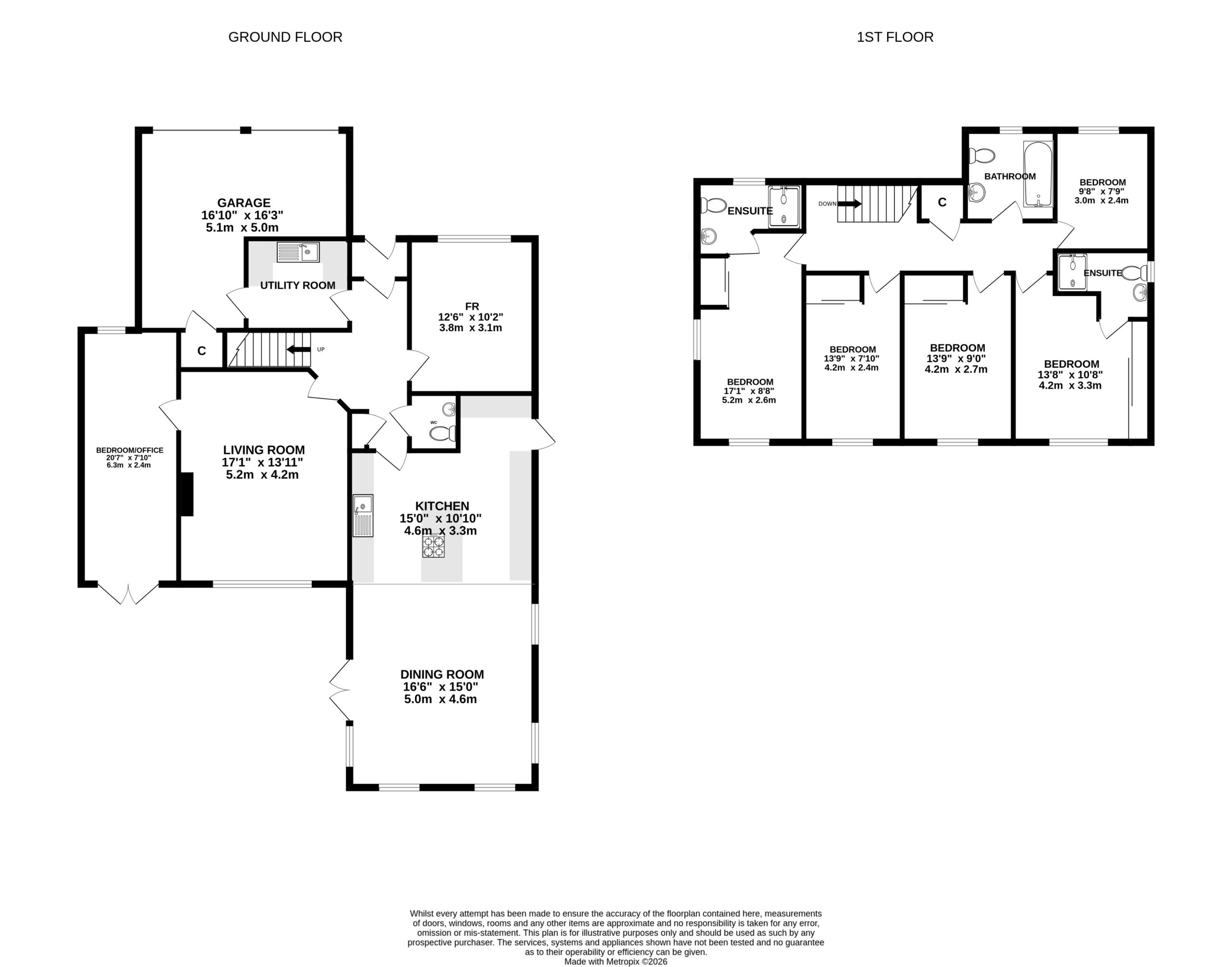 Upstairs, the property offers five well proportioned double bedrooms arranged around a spacious landing. The principal bedroom is located to the rear of the home and comfortably accommodates a super king size bed with bedside cabinets. This room benefits from fitted wardrobes and a private ensuite shower room finished with full tiling.