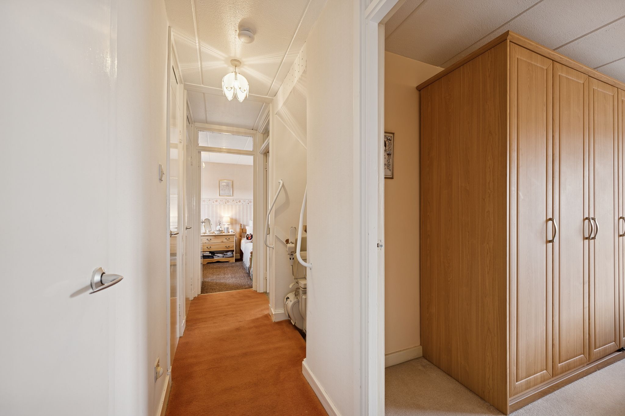 Beyond the kitchen and living room, a further hallway links these spaces seamlessly to the rear of the property, enhancing the sense of flow and openness throughout the ground floor. It is from here that a door leads directly out into the rear garden, making it easy to step outside and enjoy the outdoor space.