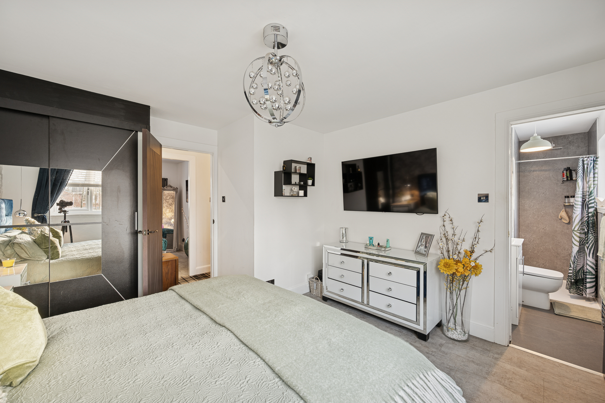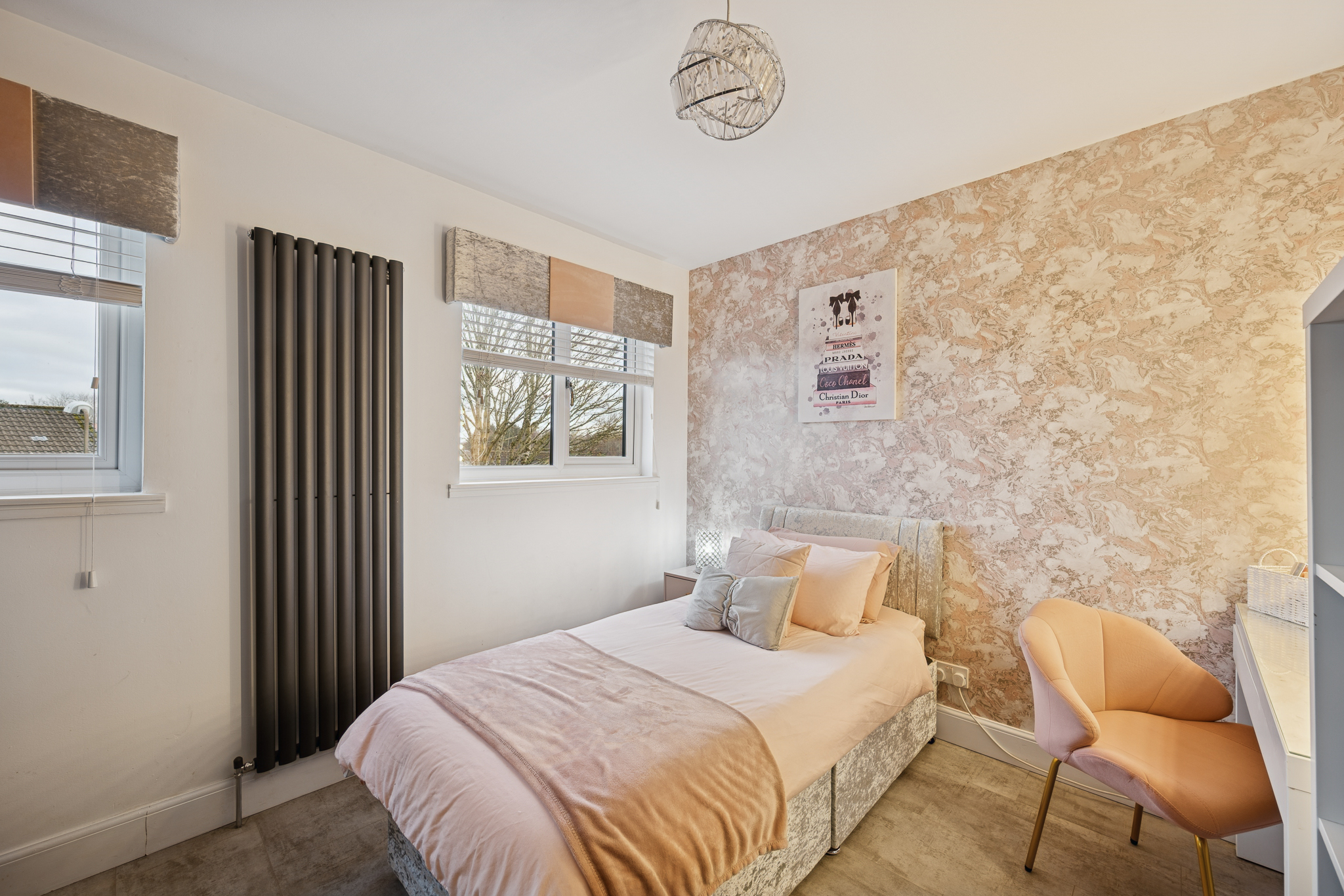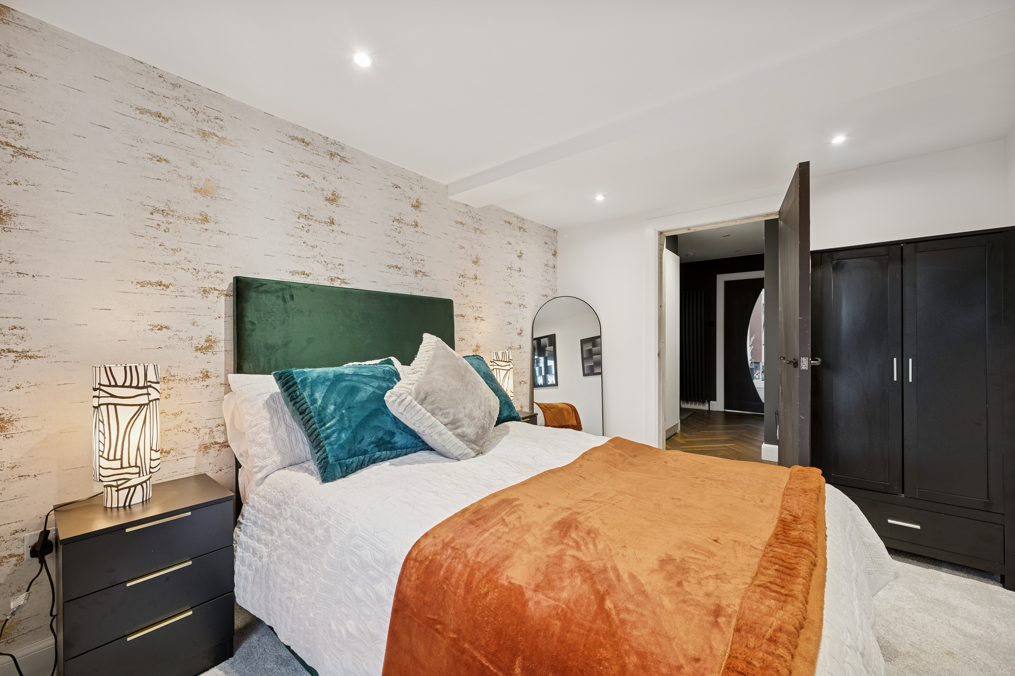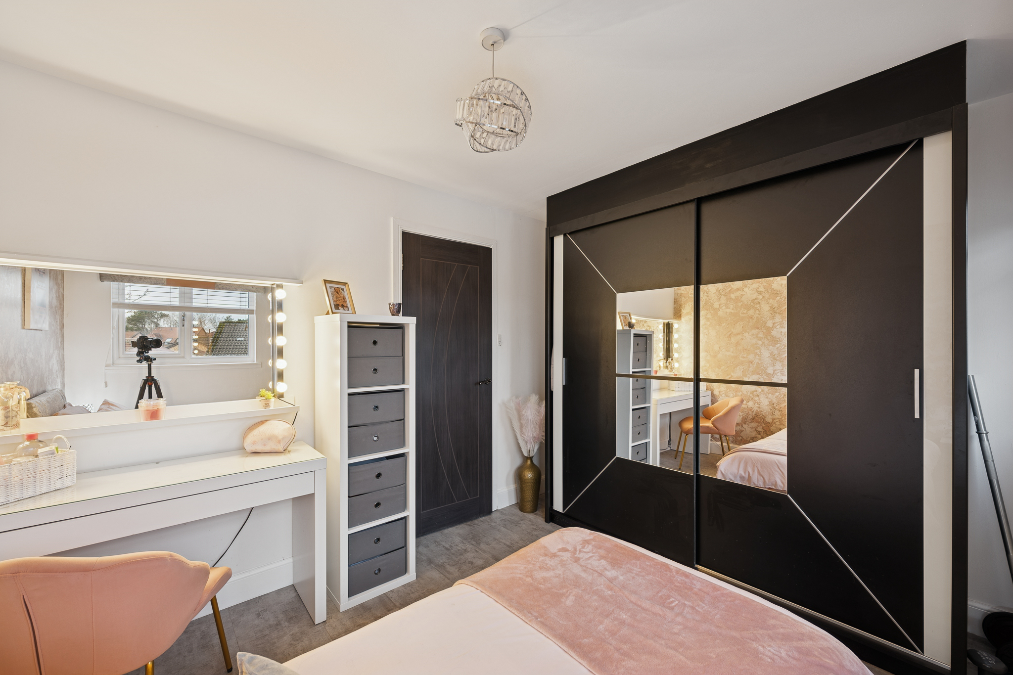 Ascending the staircase, your eye is drawn to a stunning feature light fitting, enhanced by a mirrored backdrop that amplifies the sense of space and luxury within the hallway. On the upper level, the family bathroom is finished to a high specification, boasting an exceptionally large shower and modern fittings. There are three further bedrooms on this floor, all comfortably accommodating double beds. The current layout includes a super king principal bedroom, a small double in bedroom two and a single bedroom, showcasing the flexibility of the accommodation. All bedrooms benefit from sleek, modern fitted wardrobes, while the principal bedroom is further enhanced by its own stylish en-suite.