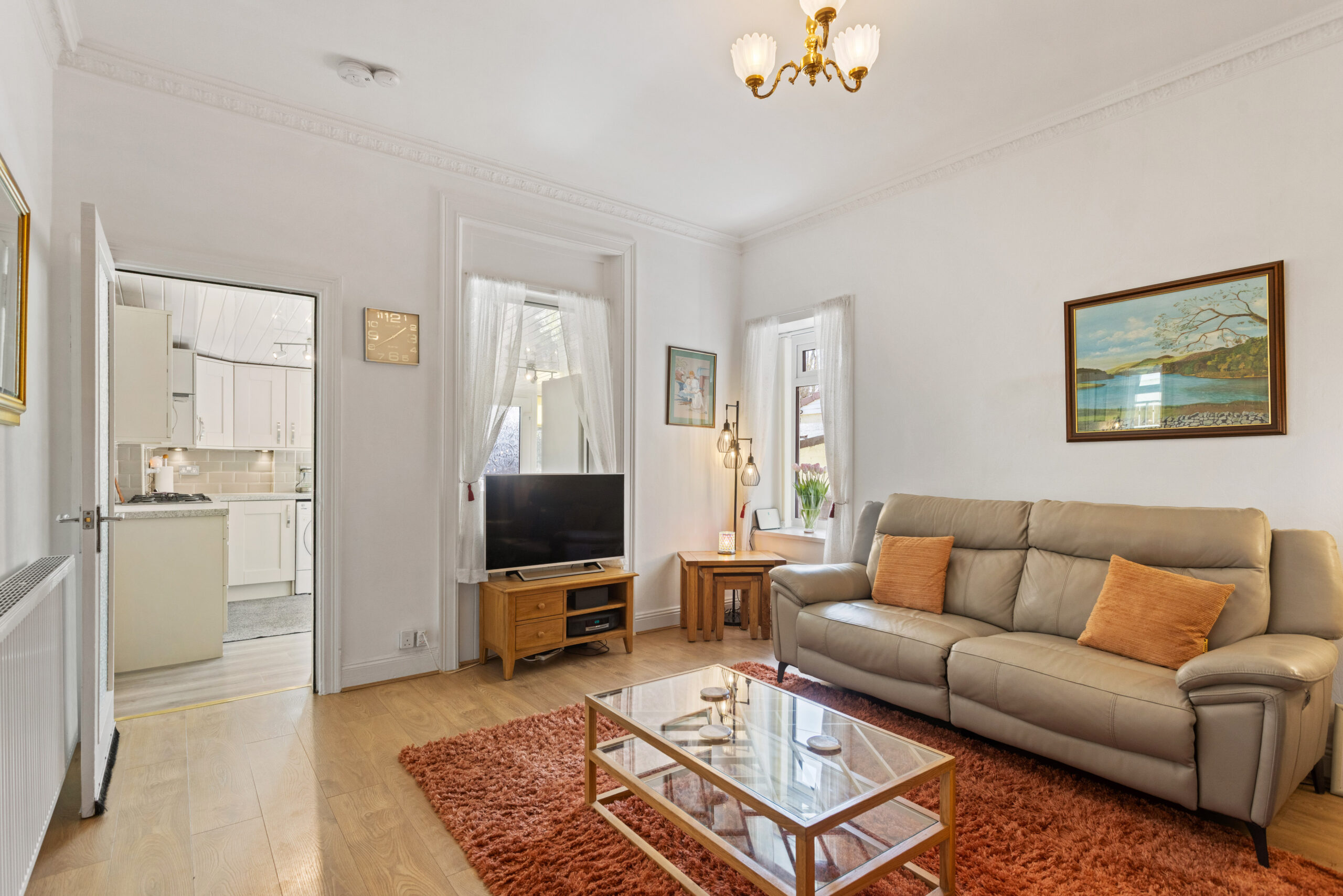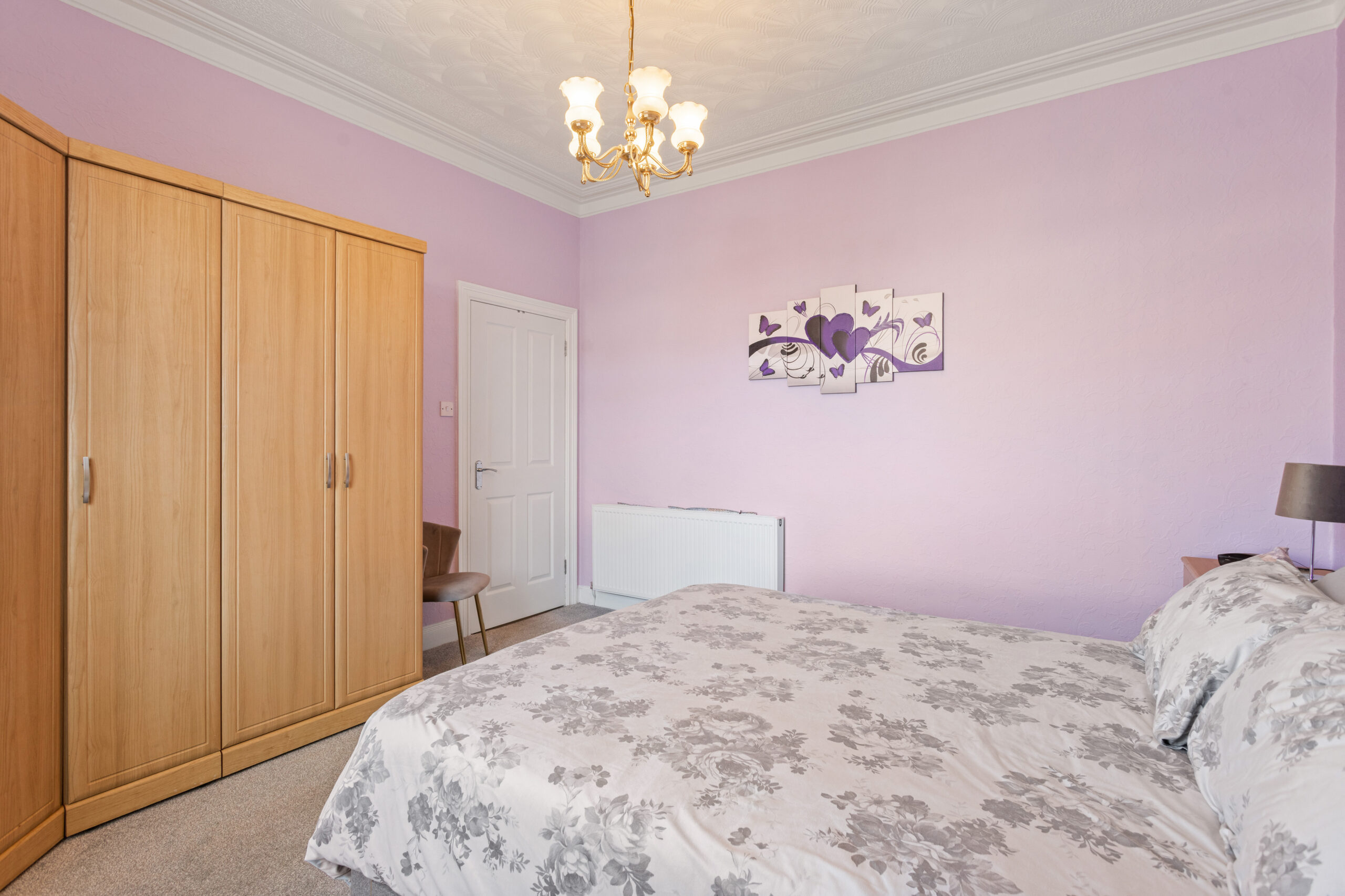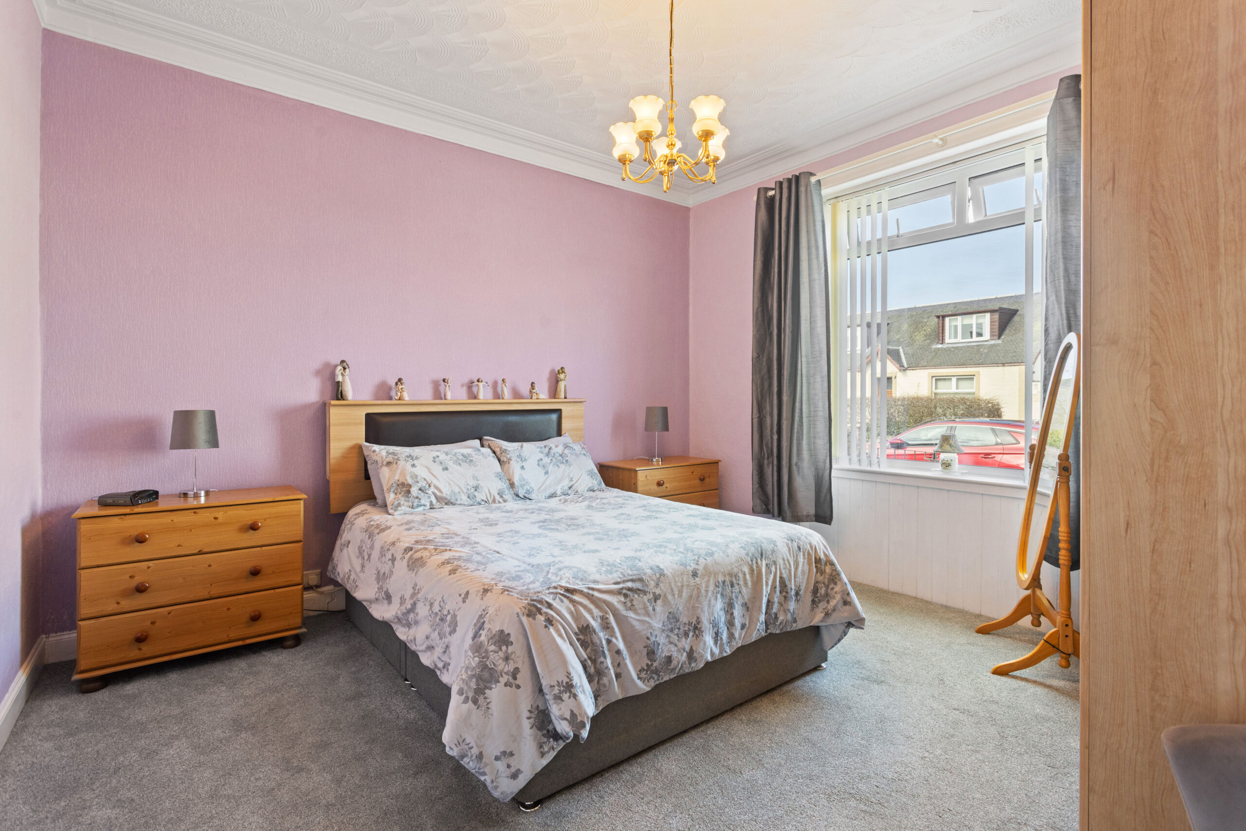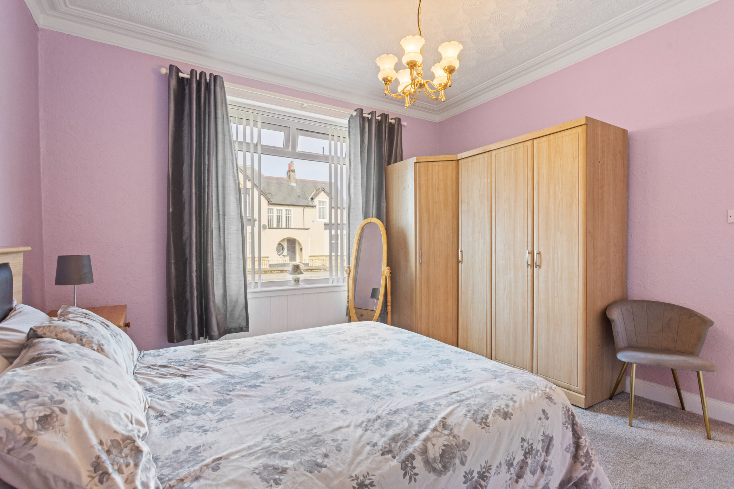 To the right, Bedroom One is a generous double bedroom, beautifully presented with ample space for freestanding furniture. The room benefits from large front facing windows allowing natural light to flood in, while the décor is tastefully styled with warm tones and quality carpeting, creating a relaxing retreat.