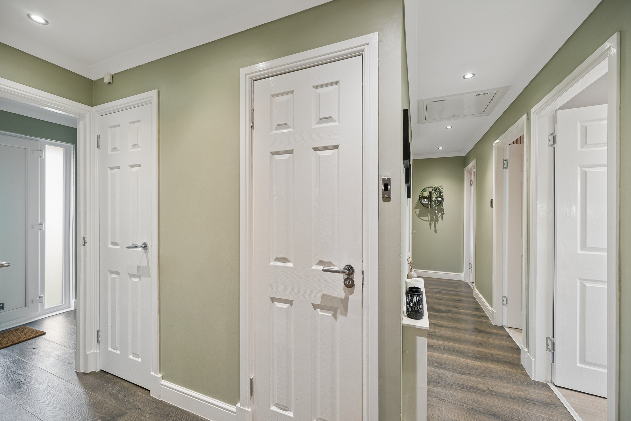 As you arrive the property immediately impresses with its private driveway and attached garage, setting the tone for the thoughtfully upgraded home that lies beyond the front door. Stepping inside, you are welcomed into a practical porch area which leads through into the central hallway, the perfect introduction to this warm and inviting home.