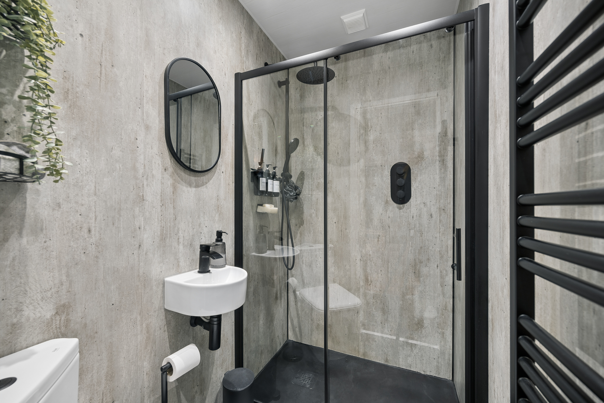 Across the hallway, you will find the recently renovated shower room. Designed with both style and practicality in mind, this contemporary space features a sleek shower enclosure, wash hand basin and WC, all finished in a stylish monochrome palette which gives the room a crisp, modern feel.