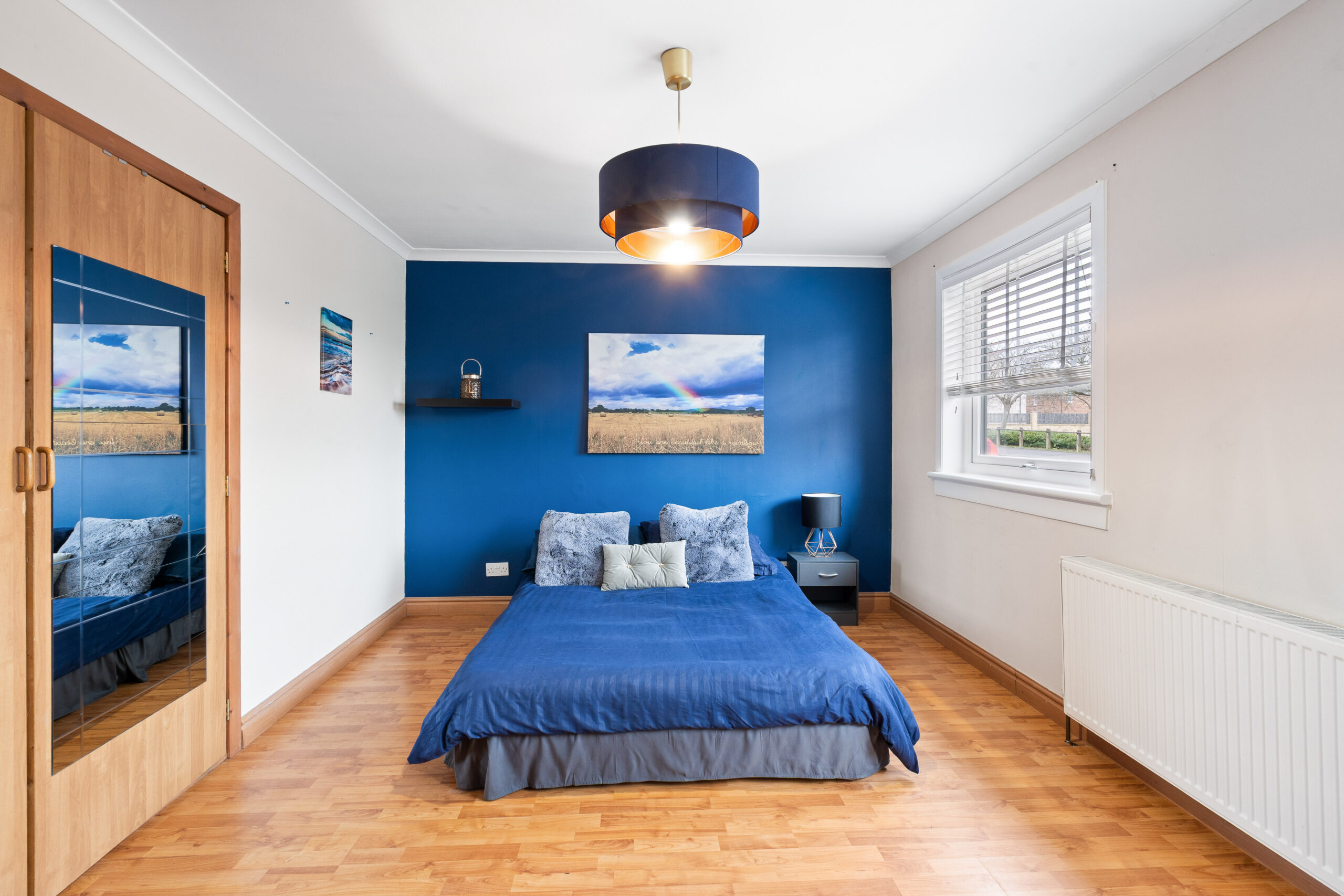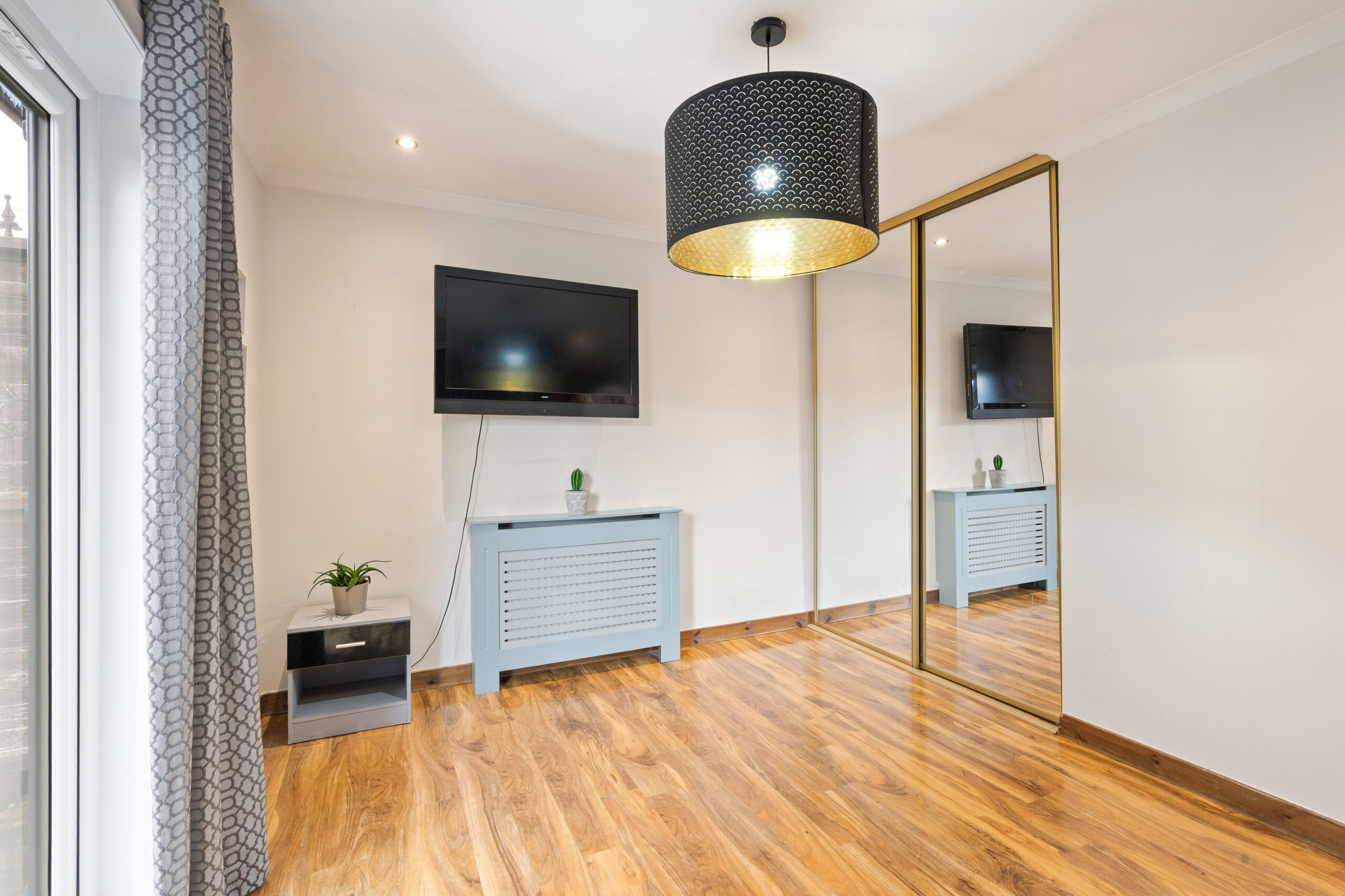The property offers three genuine double bedrooms. Bedroom one, located towards the front, comfortably accommodates a king size bed with bedside cabinets and benefits from fitted wardrobe space and additional room for a dressing table. Dual aspect windows enhance the sense of light and space. Bedroom two is another generous double and enjoys direct access to the rear garden via patio doors, along with a large double fitted wardrobe. Bedroom three is equally versatile, comfortably fitting a double bed and suitable for use as a guest room, office or family bedroom.