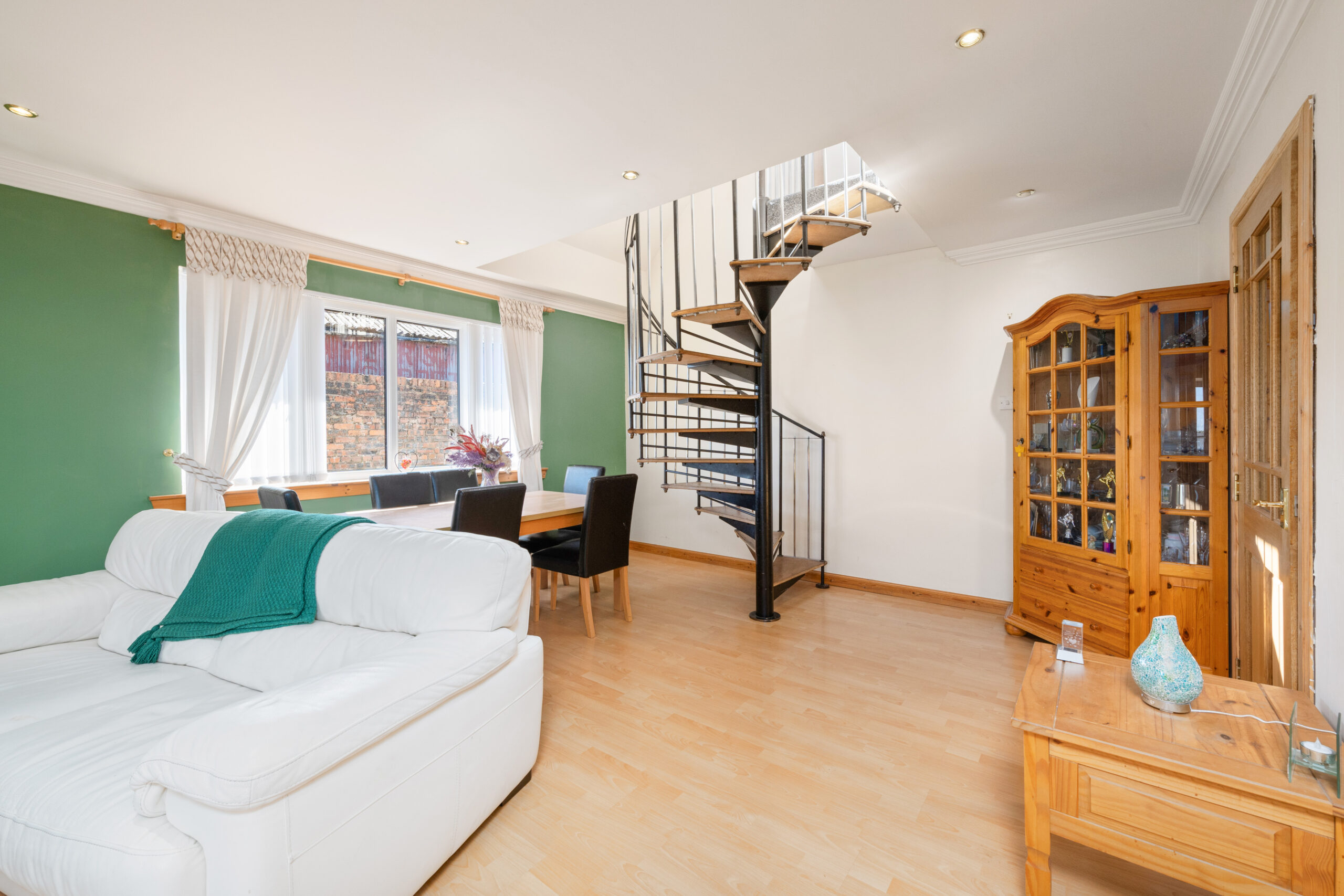 As you enter, you’re immediately greeted by a grand and light-filled hallway that sets the tone for the home’s scale and elegance. The expansive main lounge is a true statement space, featuring a stunning bay window, plush décor, and a feature spiral staircase — creating a warm and inviting atmosphere perfect for both relaxation and entertaining.