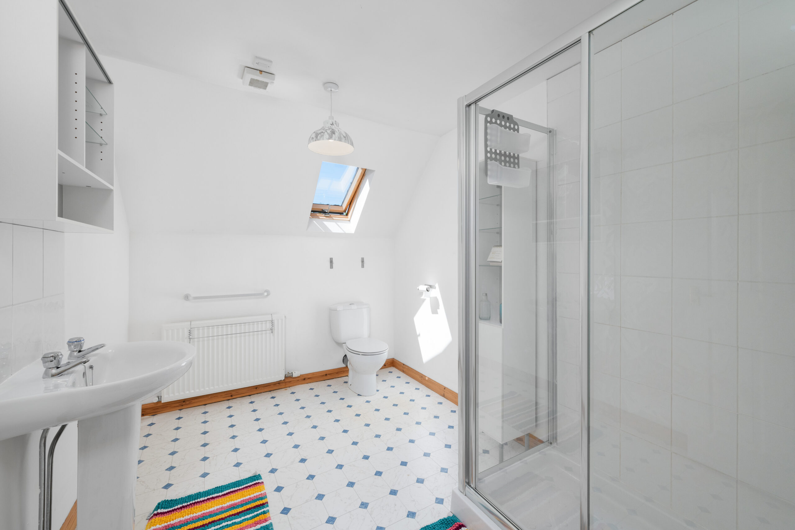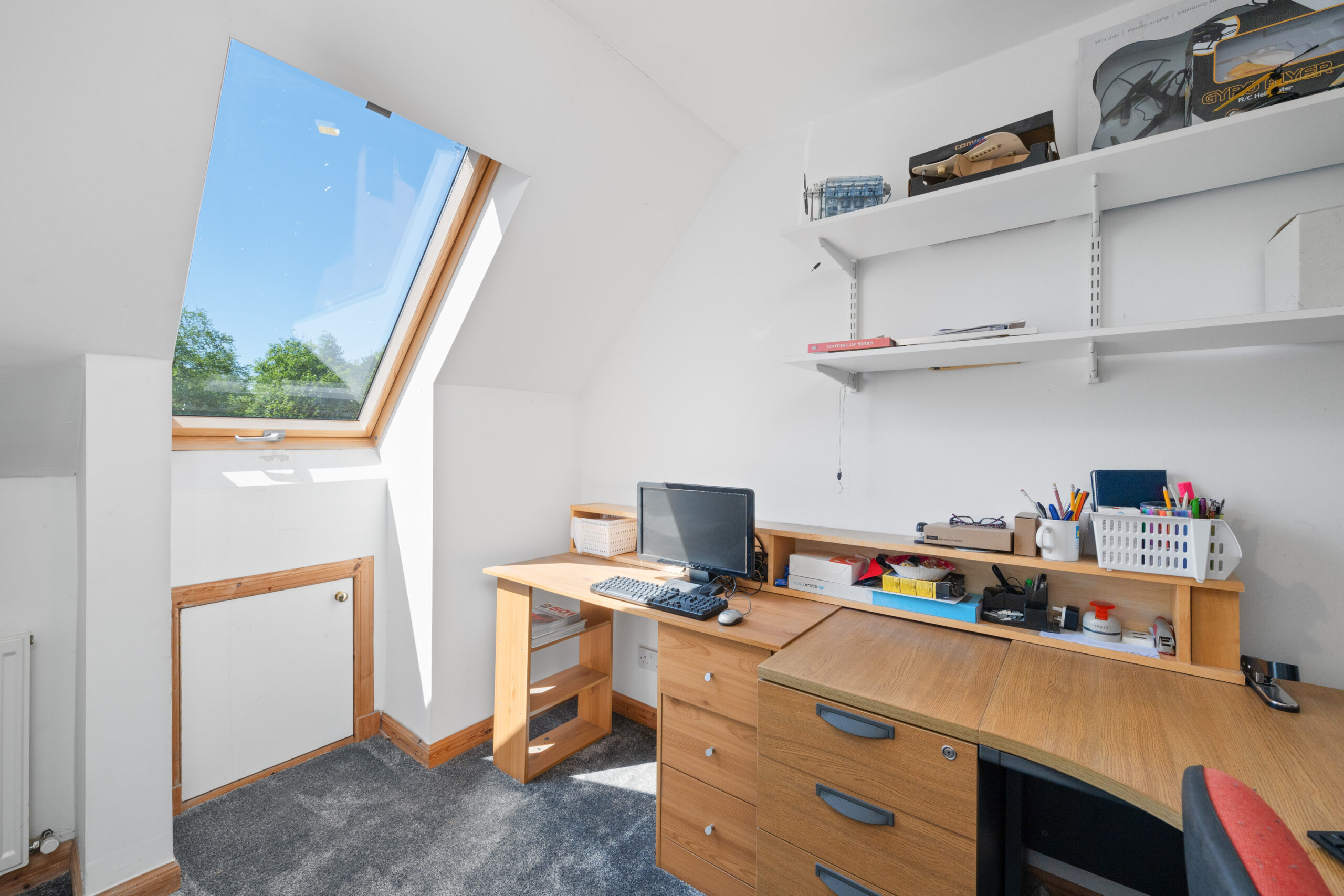 A dedicated home office provides the perfect environment for remote working or study, while a beautifully tiled family bathroom with a walk-in shower ensures convenience for the upper-level bedrooms.
