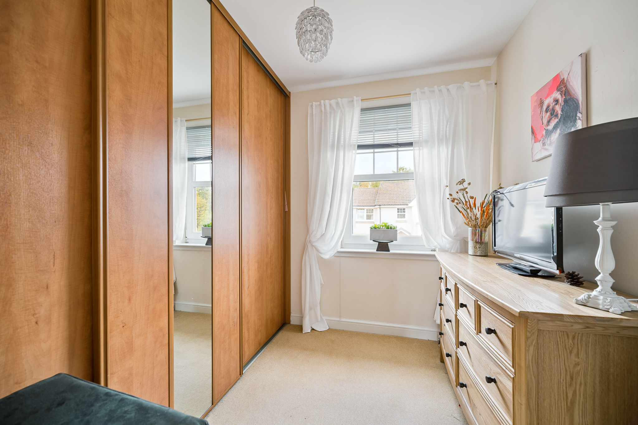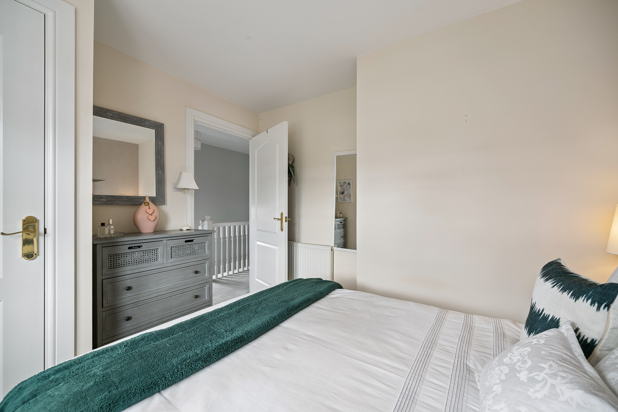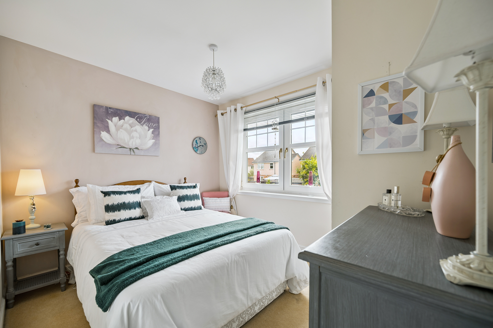 Bedroom two is positioned nearby and is a generously sized room, enjoying views over the rear garden, comfortably accommodating a double bed while also benefiting from built in storage, ideal for keeping the space both functional and clutter free.