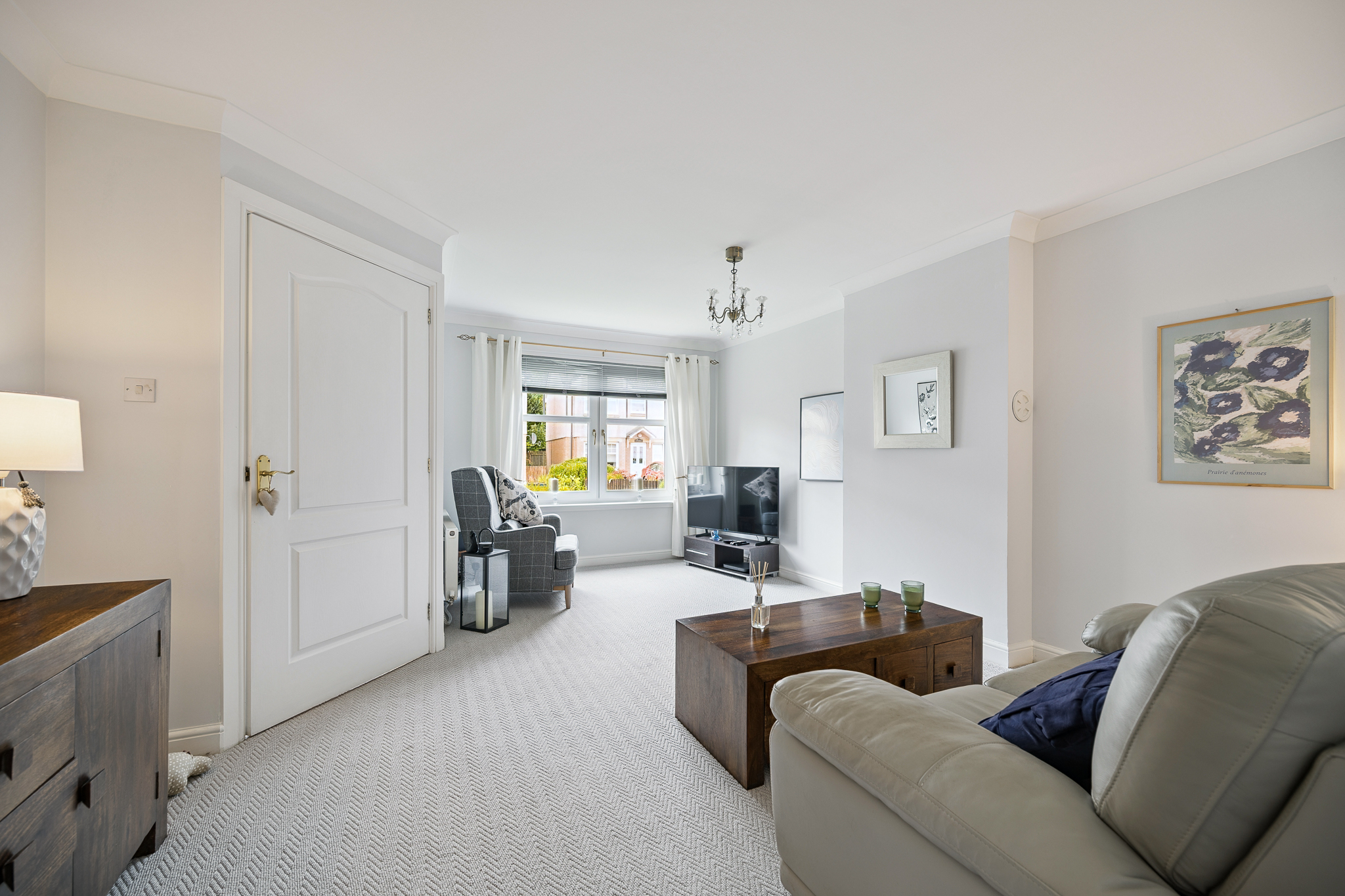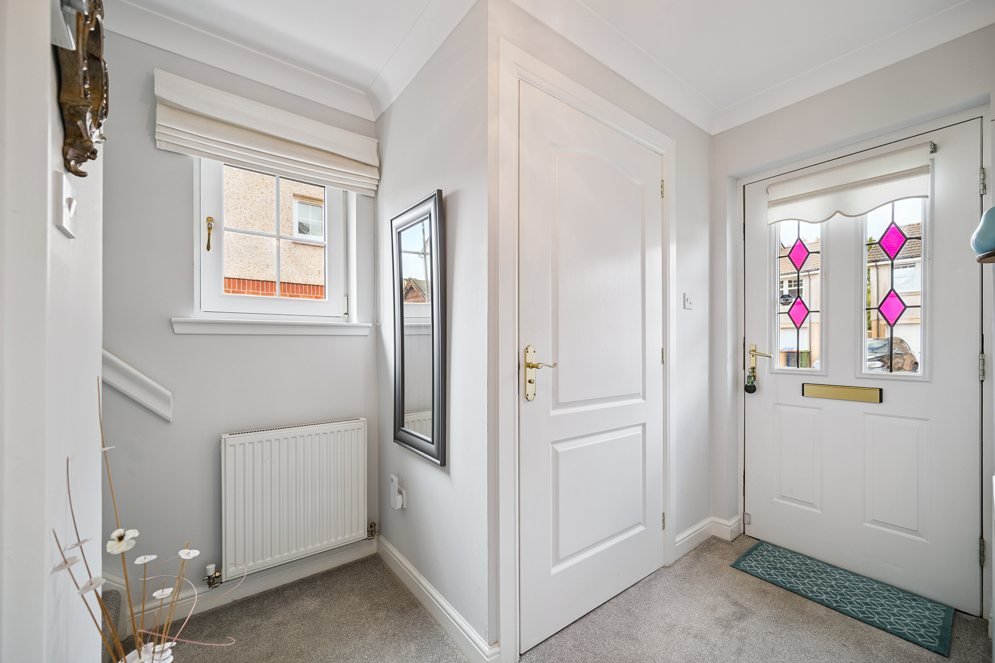As you step inside, you’re welcomed into a bright and inviting hallway, finished with plush grey carpeting that flows seamlessly underfoot and continues up the staircase, creating a soft and cohesive feel throughout the home. To the left hand side, you’ll find the lounge, a wonderfully bright and spacious room, styled in neutral tones with a soft cream carpet. Large front facing windows flood the space with natural light, making it the perfect setting to relax, unwind or entertain.