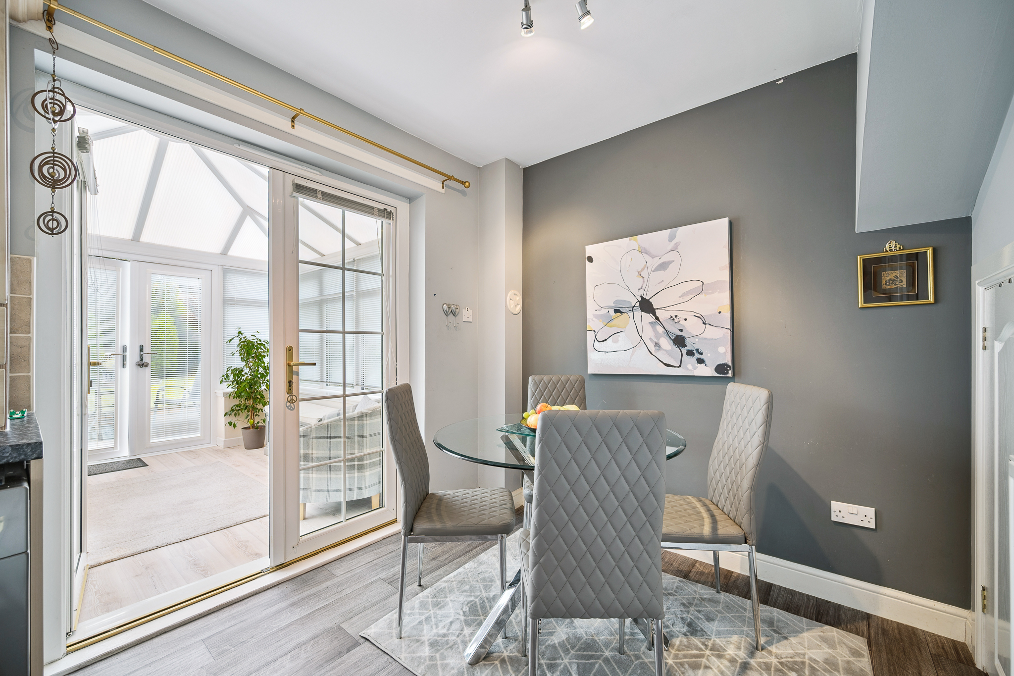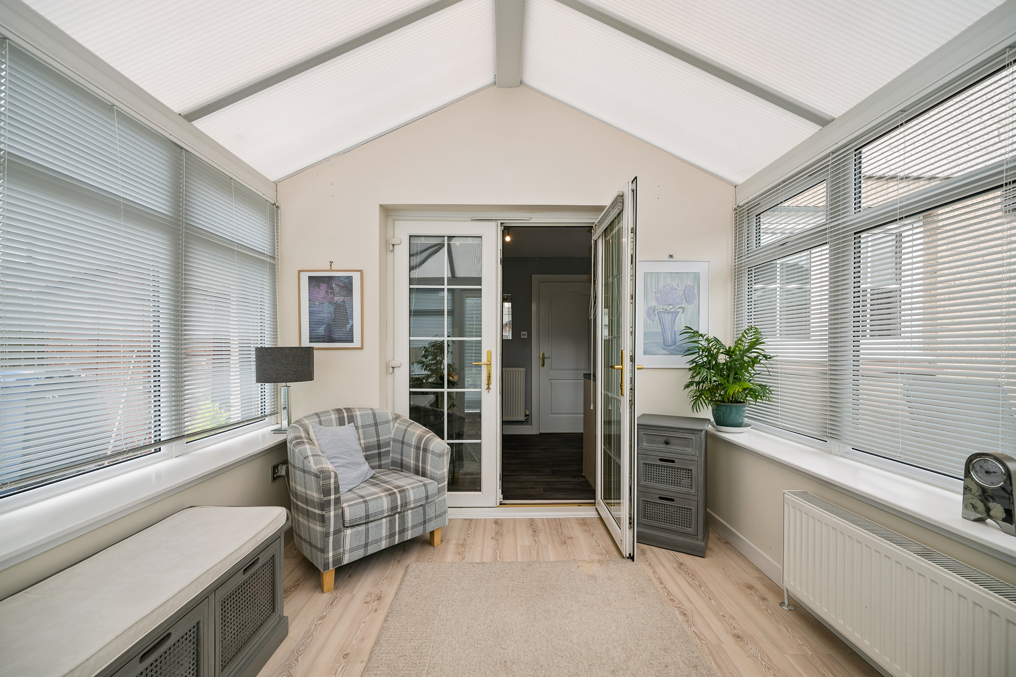 Leading off the dining area is a standout feature of the home, the conservatory. This additional living space is bright, airy and incredibly versatile, offering panoramic views across the garden. Whether used as a second sitting room, a playroom or a peaceful spot to enjoy your morning coffee, it’s a space that truly elevates the home and allows you to enjoy the outdoors all year round.