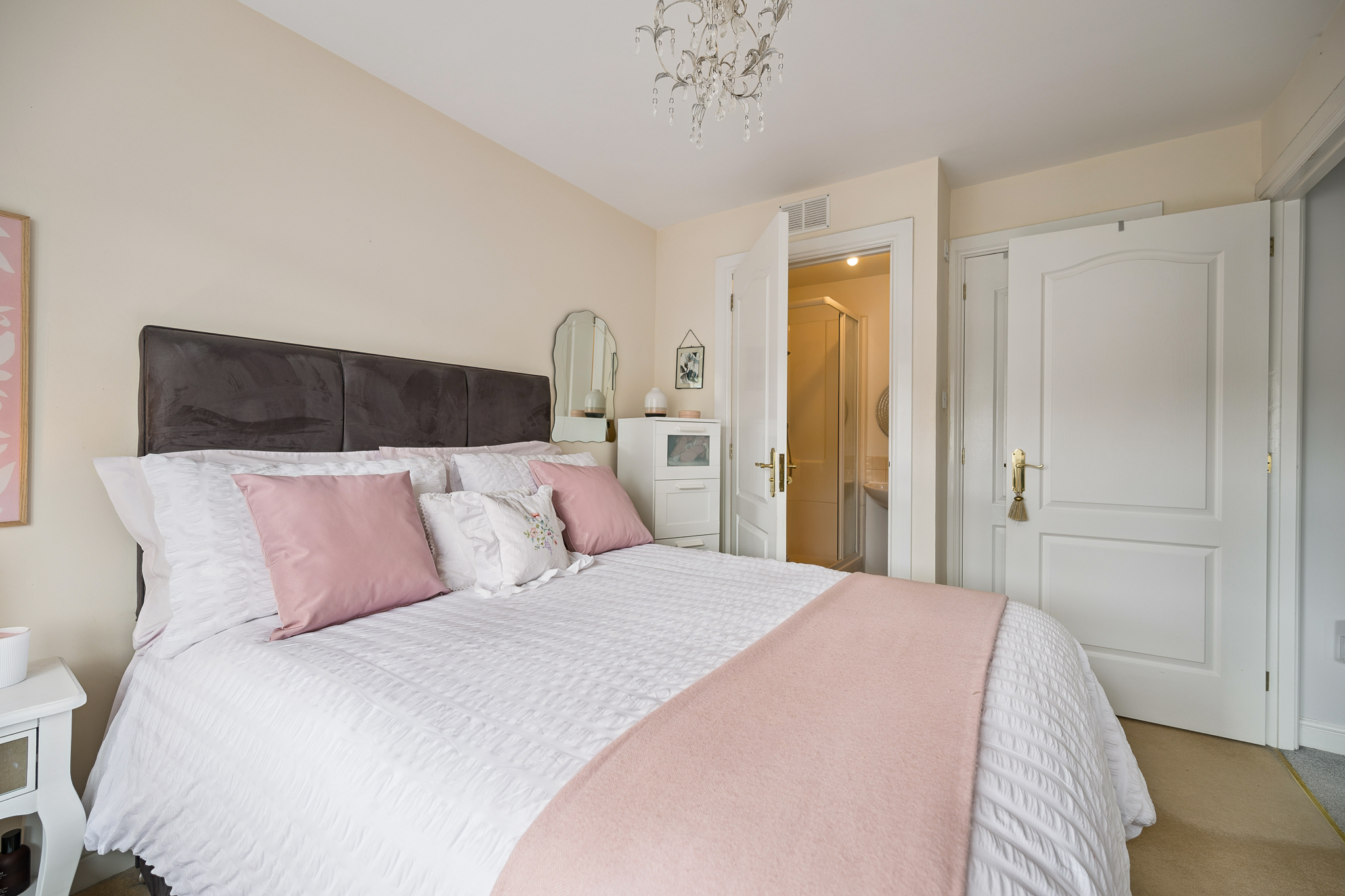 To the front of the property, you’ll find the principal bedroom, styled in calming neutral tones and offering its own built in storage along with the added luxury of a private ensuite, finished in a similarly neutral palette for a cohesive feel.
