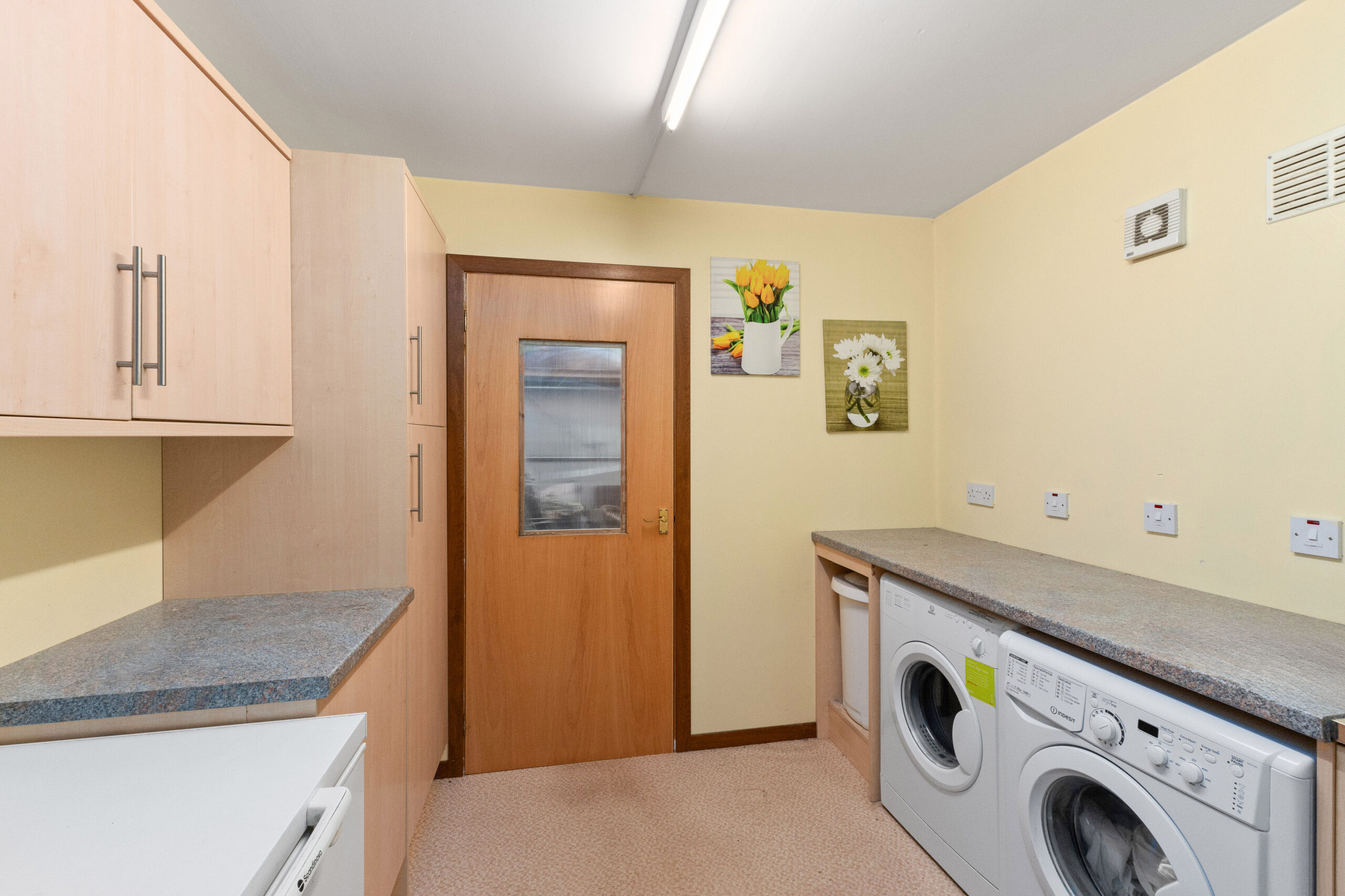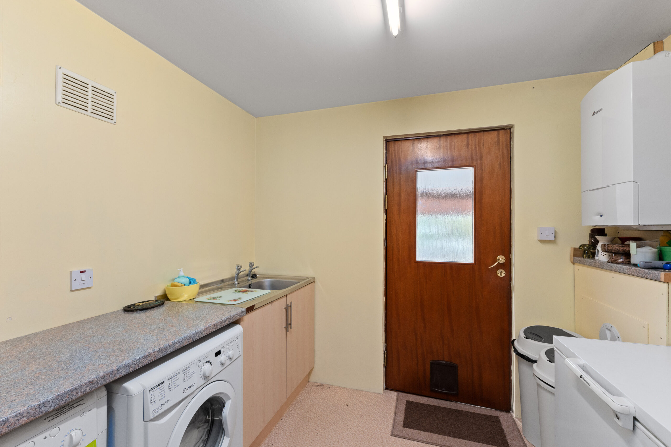 A real highlight is the large conservatory at the back of the property. This sunny retreat enjoys a west facing aspect, catching the best of the afternoon and evening sun. It offers the flexibility of a second lounge, playroom or home office, and benefits from a sense of privacy with no direct overlooking neighbours. Patio doors lead out to the low maintenance rear garden, a peaceful spot for summer barbecues, outdoor dining, or unwinding in the sun. The ground floor also offers a spacious utility room with room for a washing machine, tumble dryer, and freezer, along with access to the single garage and driveway which comfortably accommodates two vehicles. Visitor parking spaces are also available nearby.