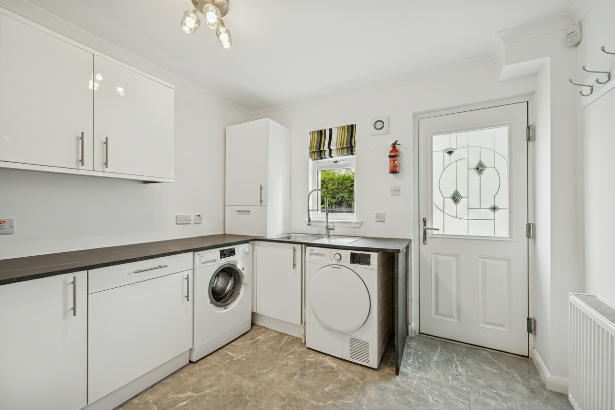 The welcoming hallway sets the tone for what lies ahead: space, light and flow in abundance. To the front, a bright bay-windowed room is currently styled as an additional reception room - a more intimate, cosy retreat from the main living areas, but with the versatility to serve as a sixth bedroom, guest suite, or home office. Another room on the ground floor, presently utilised as a home office/study, is equally flexible, comfortably accommodating a double bed if desired. Adding to the practicality of this level, the utility room - which houses the boiler, laundry appliances and valuable storage, is finished with luxurious tiled flooring.