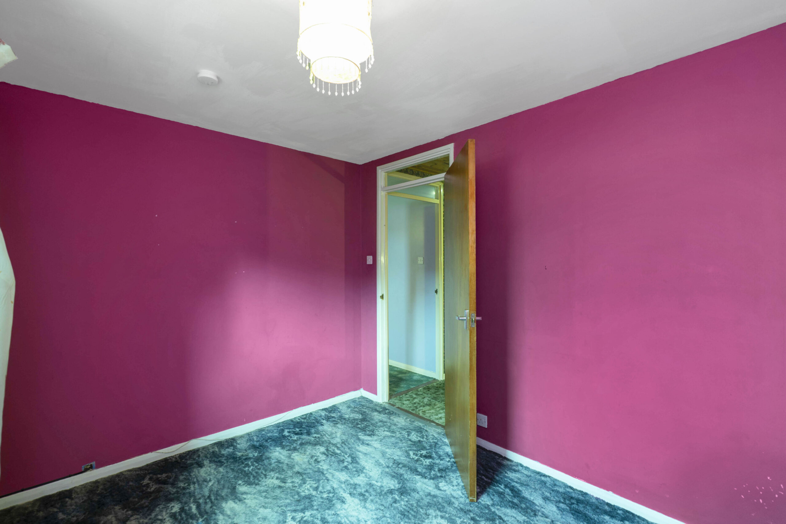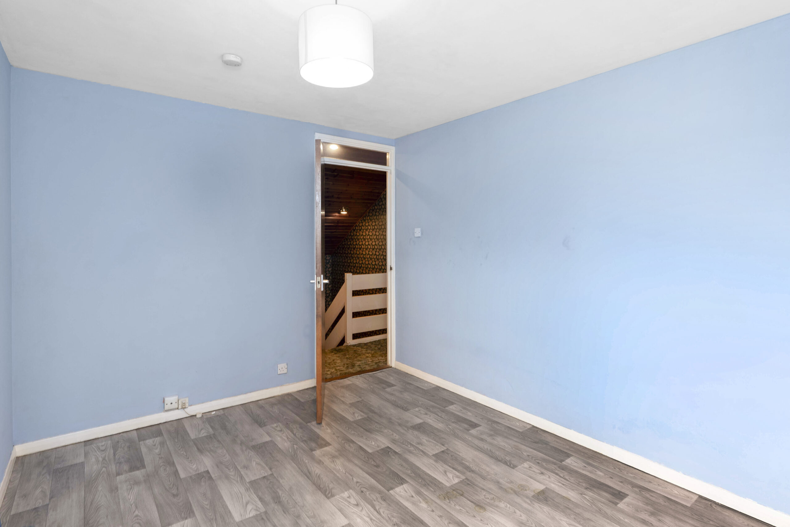 Upstairs, a bright landing introduces three well-proportioned bedrooms. The principal bedroom can comfortably host a king-size bed with bedside cabinets and wardrobes. The second bedroom is equally spacious, with room for a king-size bed and additional furniture, while the third bedroom offers enough space for a double bed, making it ideal for children, guests, or a home office.