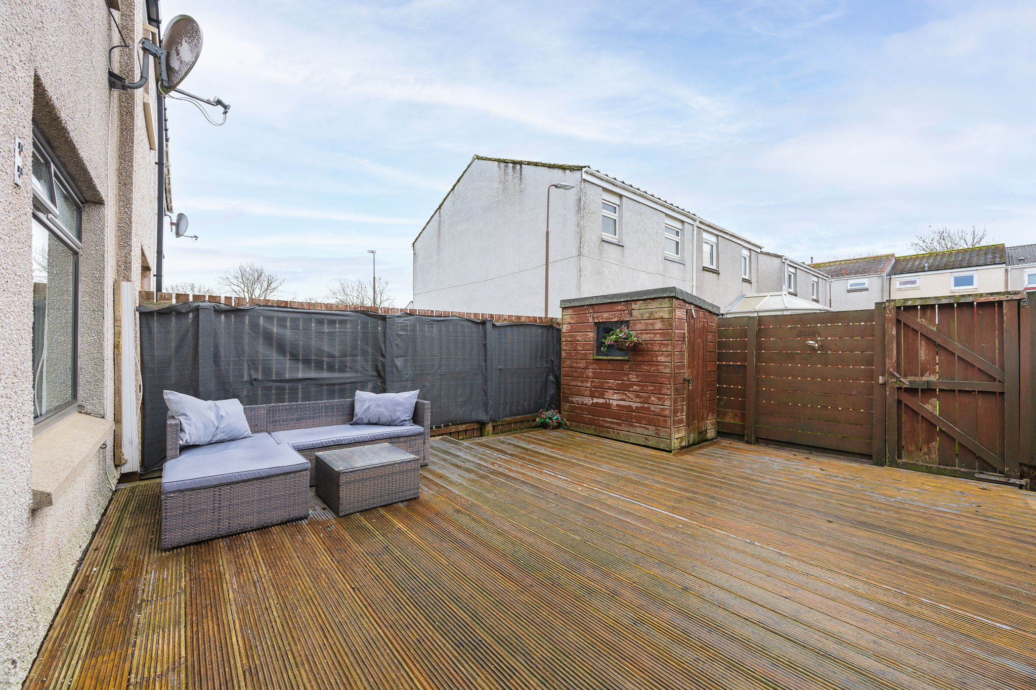 The family bathroom is finished with full tiling and comprises a modern three-piece suite with a standing shower, providing a clean and practical finish. Externally, the south facing rear garden is fully decked and low maintenance, offering an excellent outdoor space for relaxing, entertaining or enjoying the sunshine throughout the day.