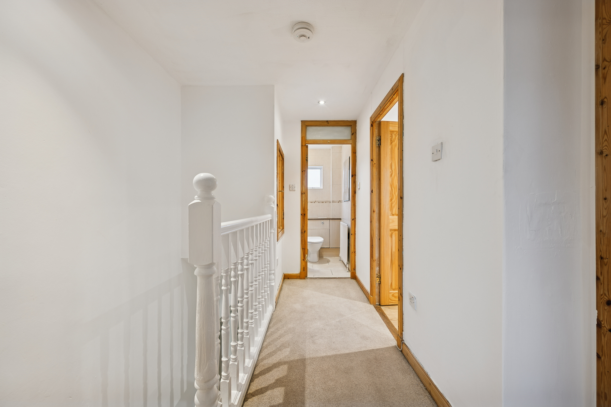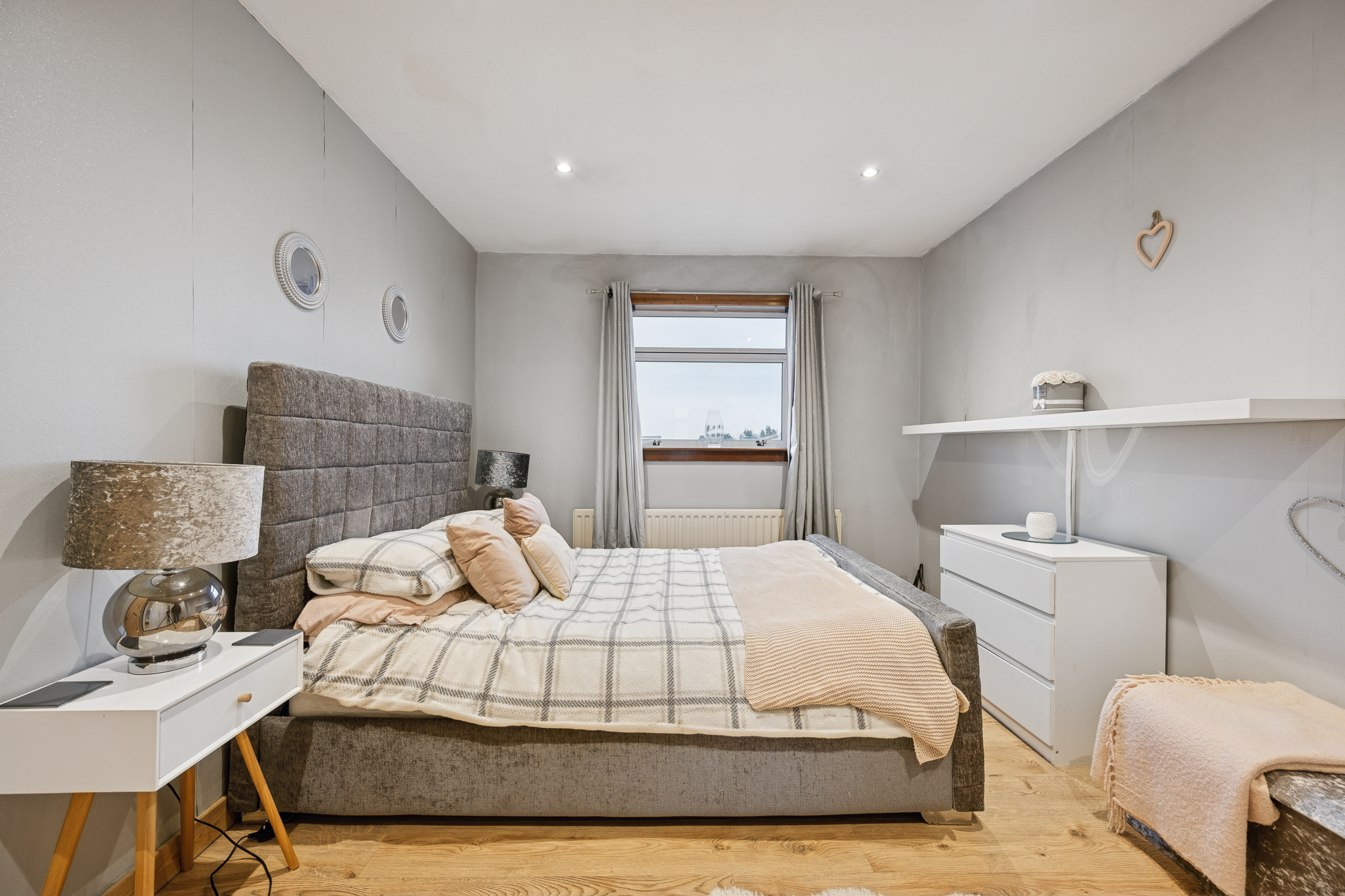 Upstairs, the principal bedroom is located to the front of the property and comfortably accommodates a king size bed with bedside cabinets, along with ample space for freestanding wardrobes. Bedroom two is a well proportioned double room, offering space for a double bed, bedside cabinets and additional furnishings. Bedroom three is also a generous double, with space for a bed, bedside tables and a wardrobe, making it ideal as a bedroom, guest room or home office.