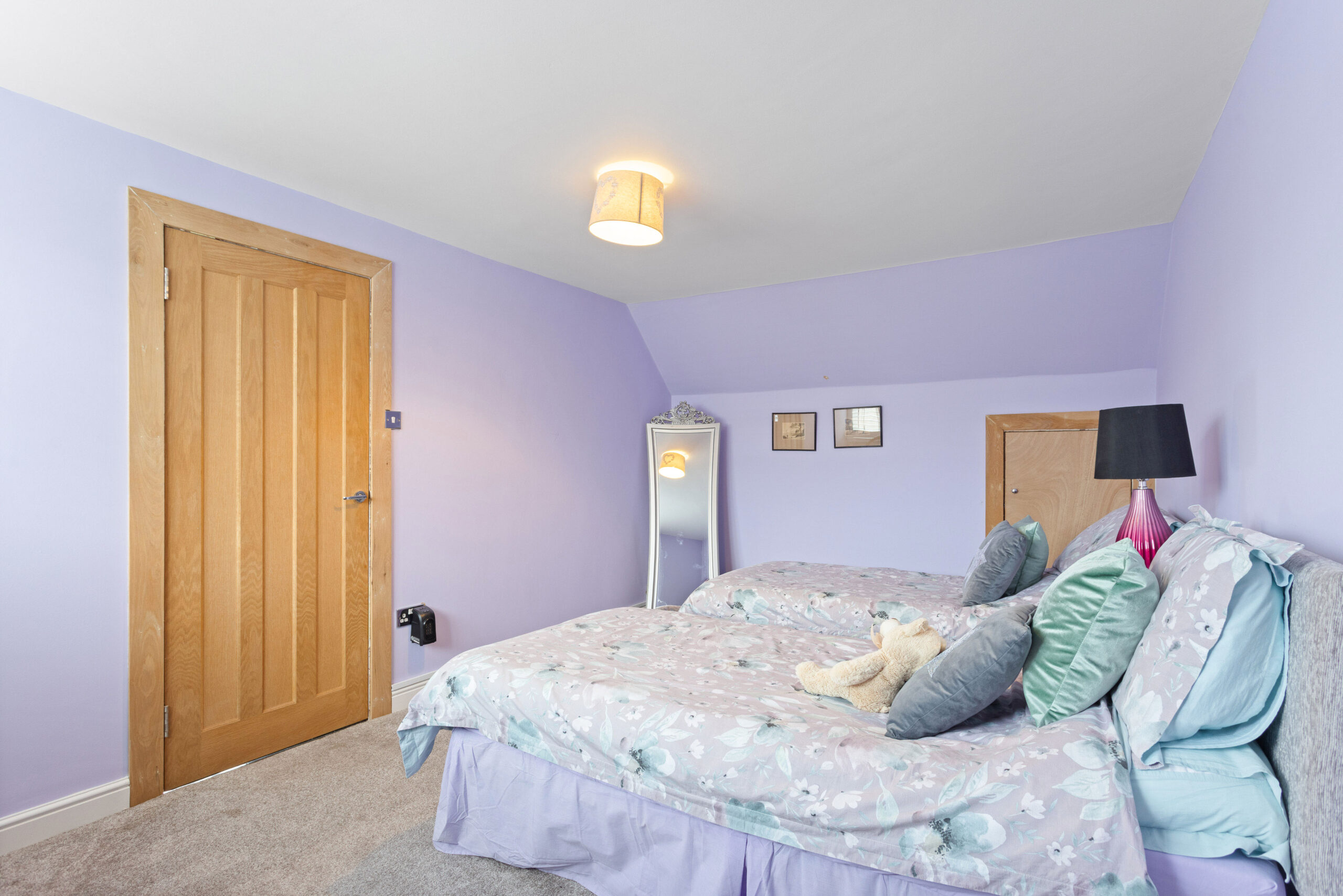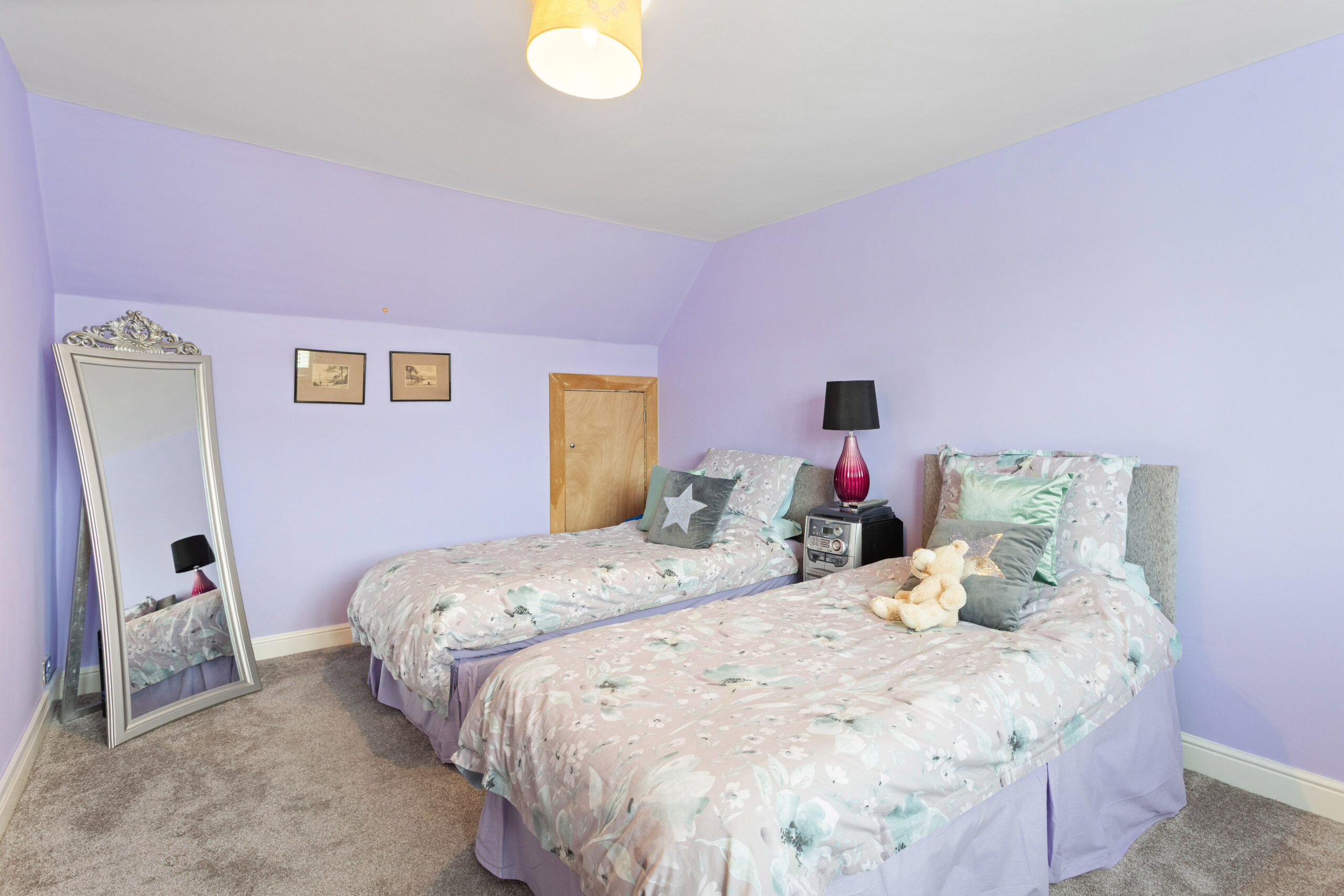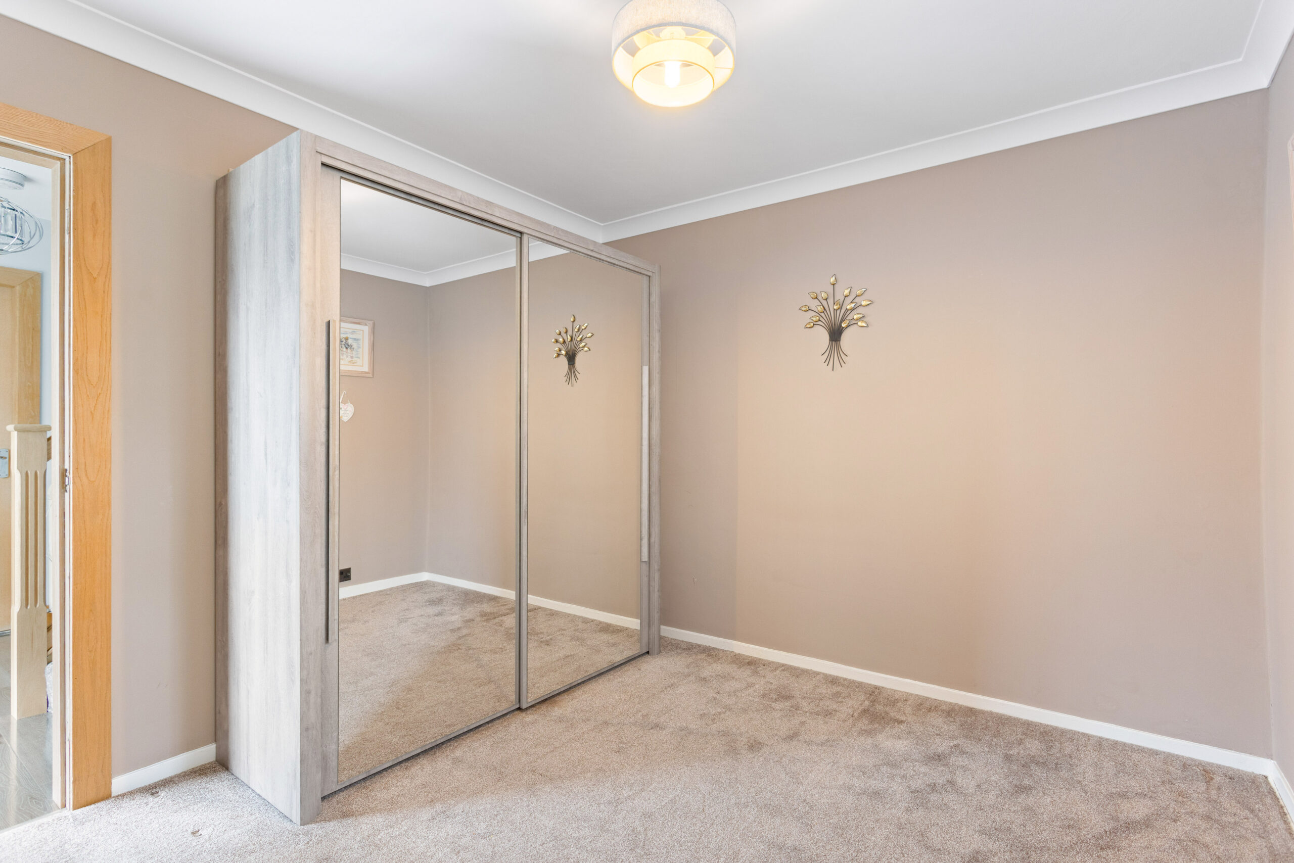 Moving upstairs, the property offers two further generously sized bedrooms, both beautifully presented with soft carpeting, fresh décor and excellent proportions. One bedroom, providing excellent storage while enhancing the sense of space and light.