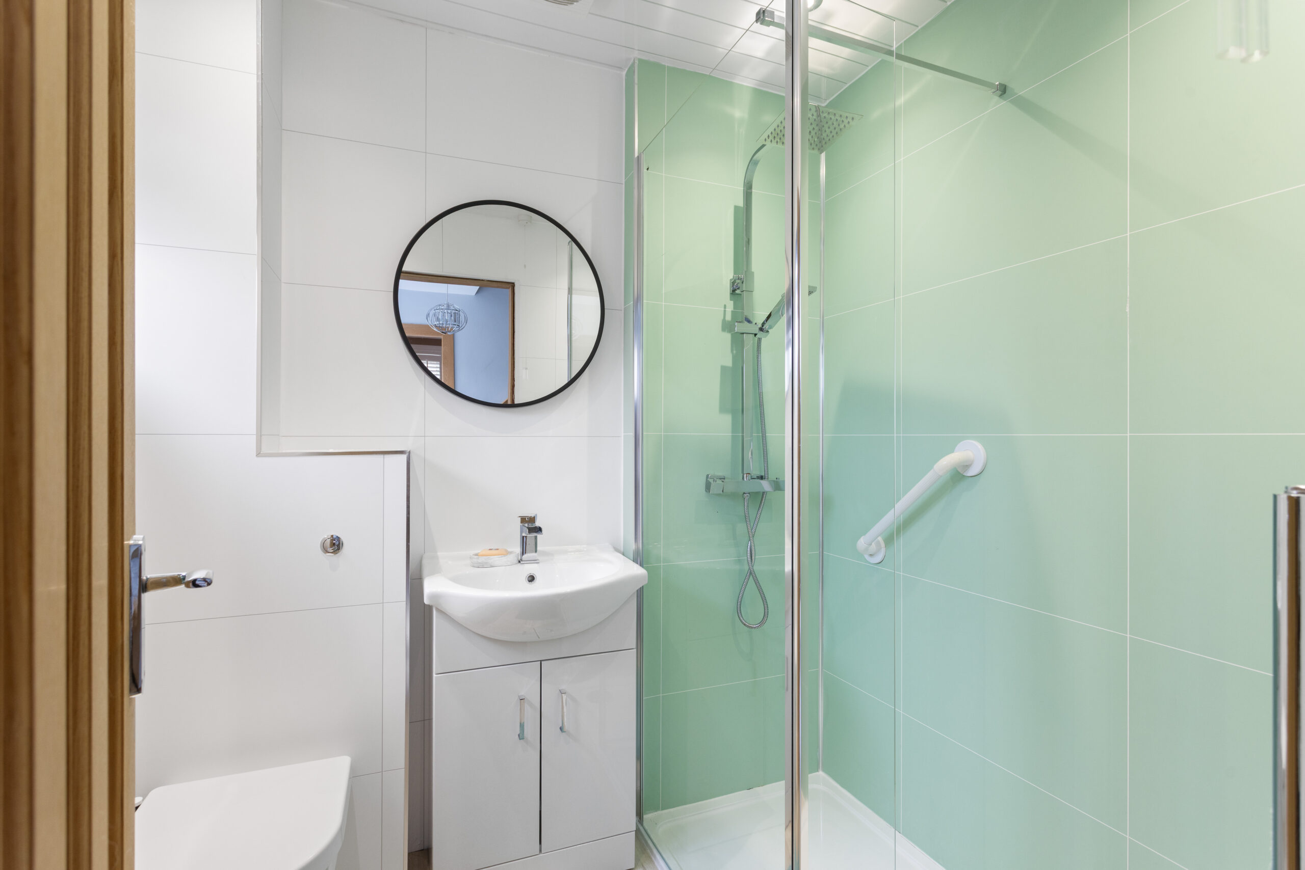 The ground floor also hosts a well proportioned double bedroom, tastefully decorated and offering flexibility for use as a guest room, home office or additional living space. A modern shower room is conveniently located on the ground floor, fitted with a contemporary suite including a walk in shower enclosure, vanity unit and stylish tiling throughout.