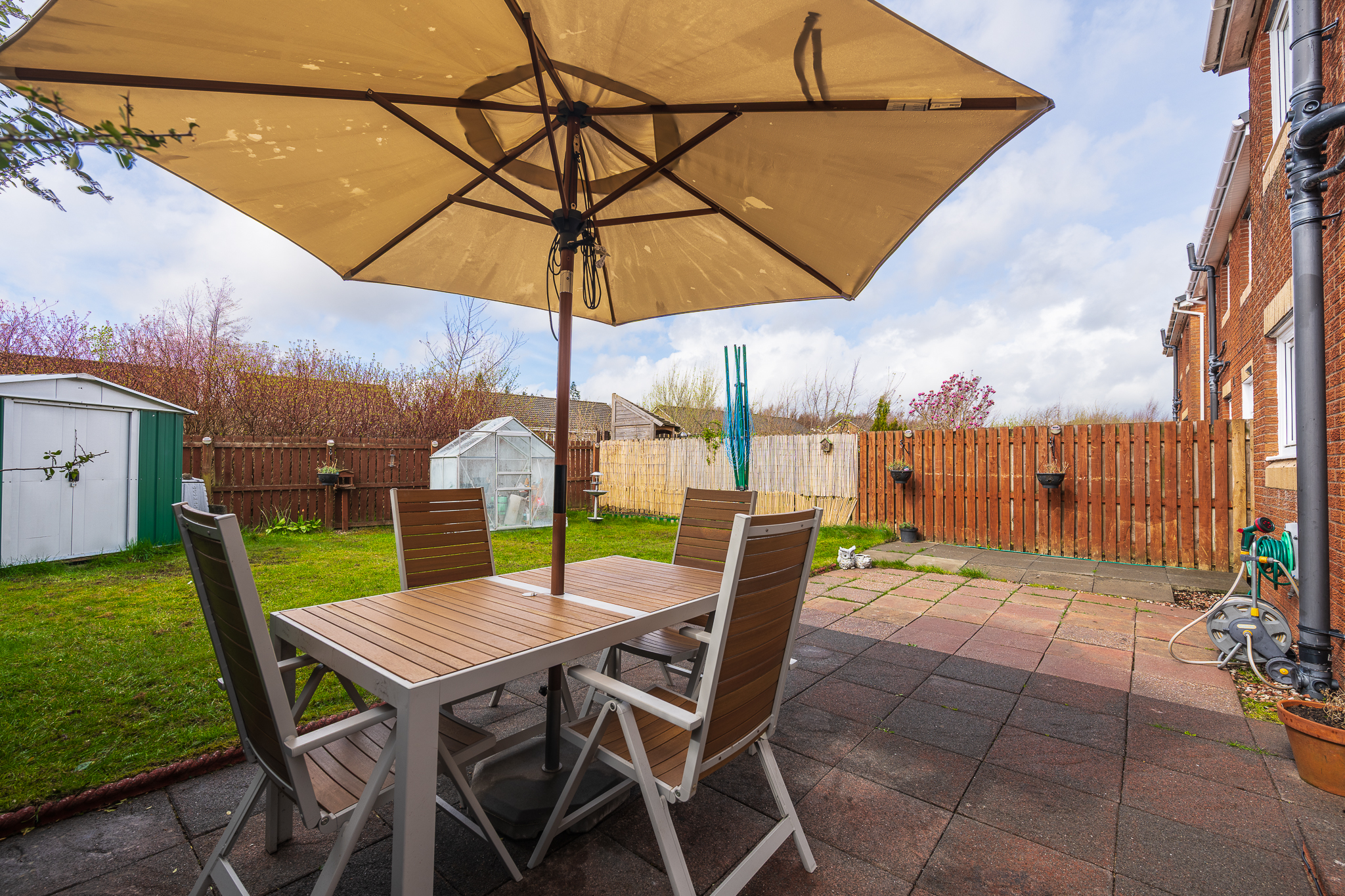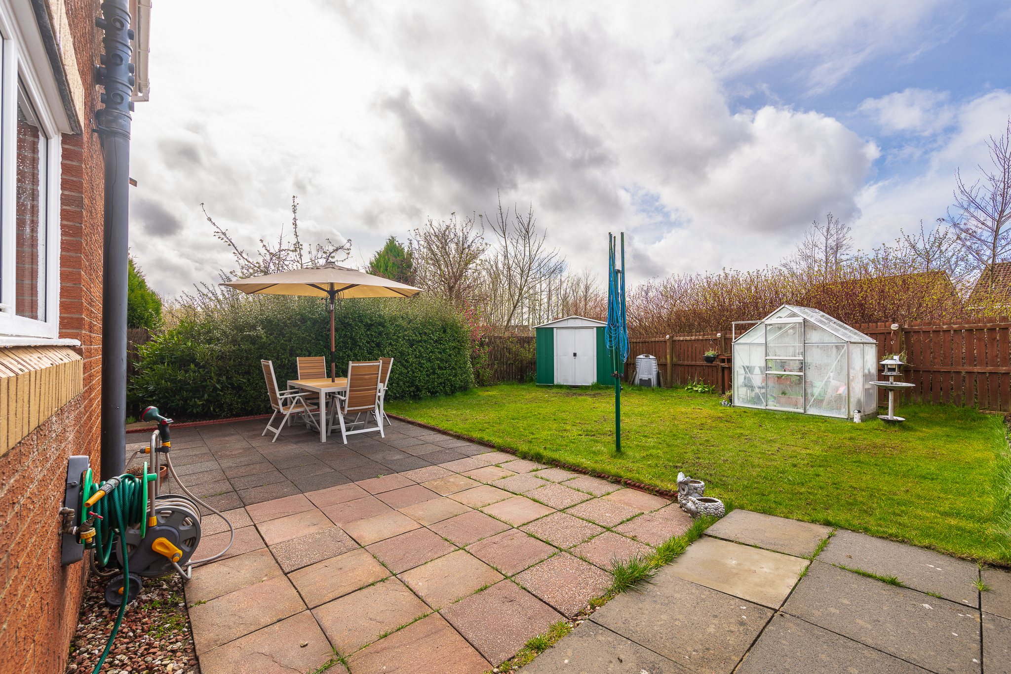 The garden itself is a fantastic family space, enjoying a sunny aspect and offering a great balance between a paved patio area, perfect for outdoor dining and a well maintained lawn, ideal for children’s play. Additional features such as a greenhouse, garden shed and open outlook further enhance its appeal.