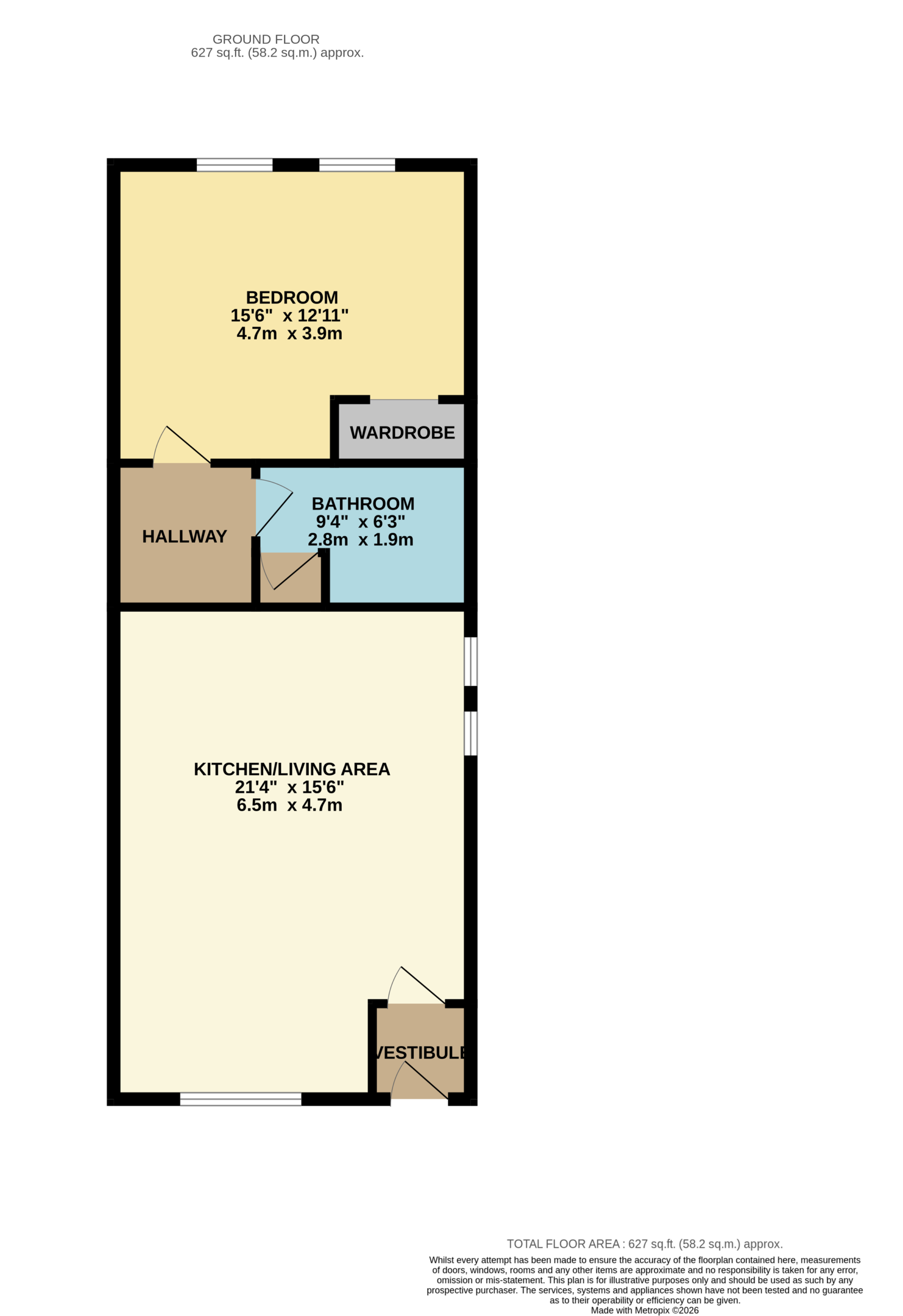 The information contained within this advertisement is intended as a guide only and does not constitute an offer or contract. While every effort has been made to ensure accuracy, measurements are approximate and provided for indicative purposes only. All marketing content remains the copyright of Bridges Properties and may not be copied or reproduced without prior written consent. Marketing images are for illustrative purposes. Contents and furnishings are excluded from the sale unless expressly stated otherwise.