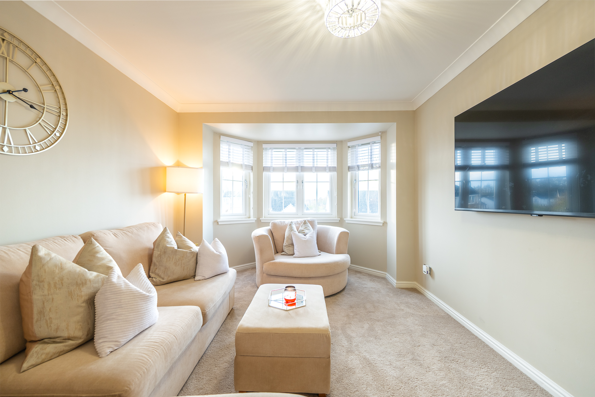 The living room is bright, warm and inviting, featuring a lovely bay window with outlooks to the front across to Arthur’s Seat and towards the Pentlands - a picturesque view that enhances the feeling of space and calm throughout.