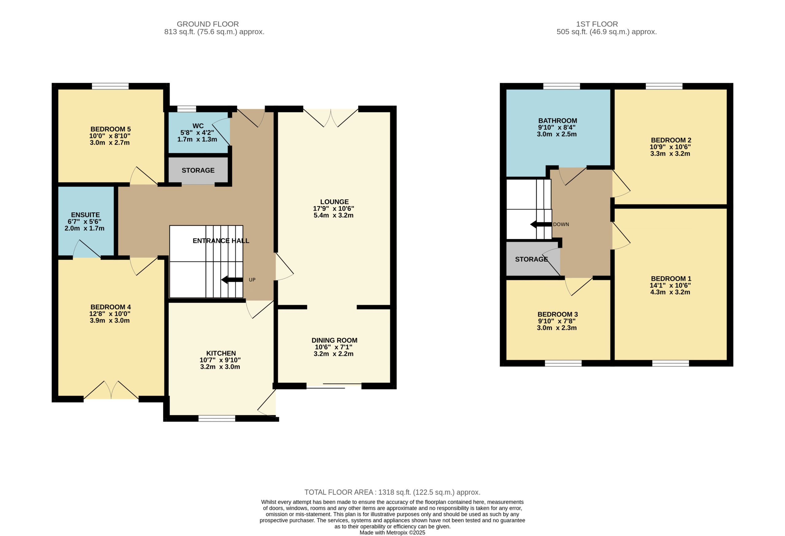 Finally, across the hallway is Bedroom Five, currently arranged with two single beds. Despite being the smallest of the five, this room can still comfortably accommodate a double bed, making it ideal as a child’s room, nursery, hobby room or compact guest bedroom. The flexibility across all five rooms is a real standout feature, with every bedroom able to host a double bed, an exceptional benefit for families or buyers seeking adaptable living options. Throughout the home, storage has been thoughtfully integrated, ensuring that every space feels functional, organised and ready for everyday living.