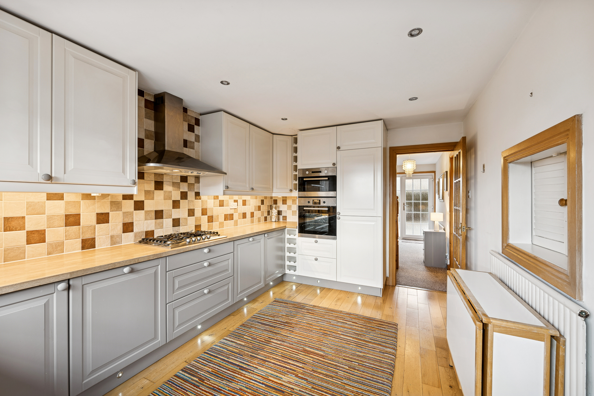 Entering the property from the garden, you step directly into the gorgeous kitchen, a bright and spacious room offering excellent cabinet storage and ample worktop space, as well as room for a dining table, the perfect setting for busy family breakfasts or evening chats over dinner, finished with LED kickboard lights for a contemporary feel.