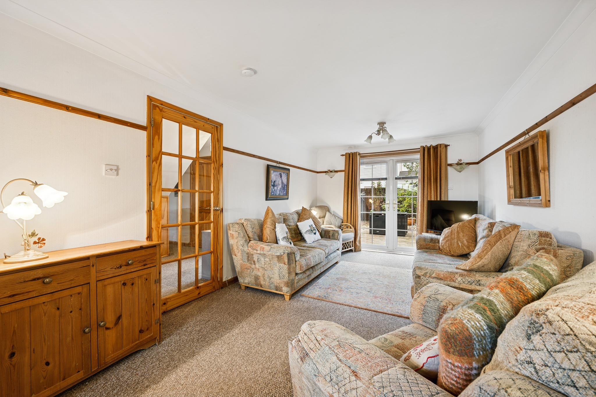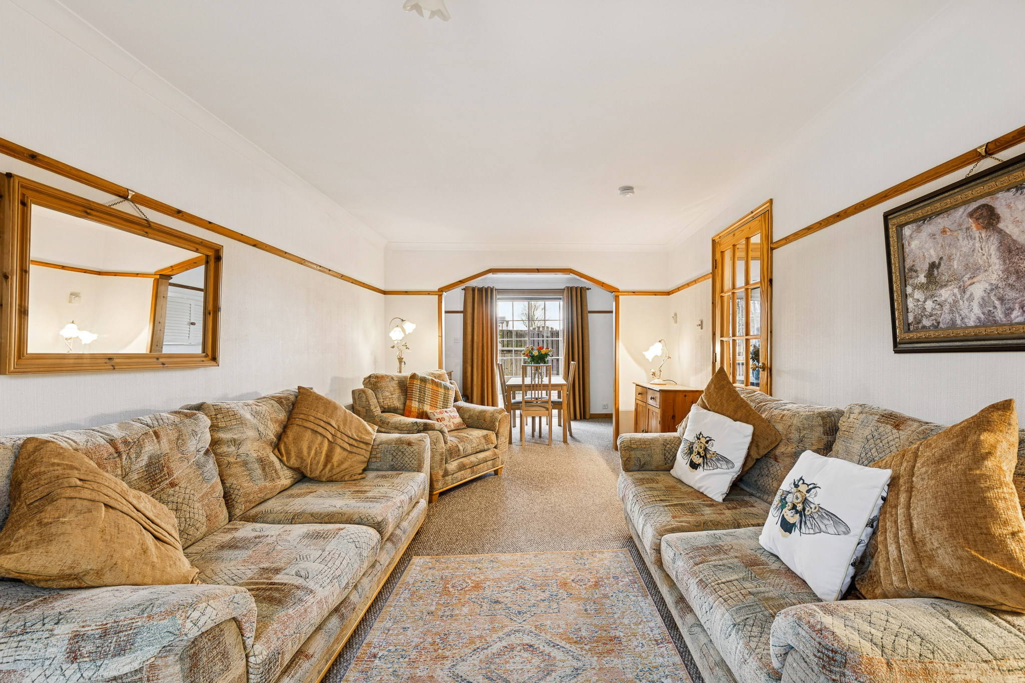 From here, you move naturally into the hallway which connects the main living areas of the home. Continuing through, you arrive at the generous lounge and dining area, a wonderfully bright dual-aspect room benefiting from both the morning and evening sun. The large east-facing patio doors fill the space with natural light at the start of each day, while the west-facing window ensures the room remains bright into the evening. The lower-set patio door also offers wheelchair-friendly access, ideal for those needing mobility-supportive features without compromise on style.