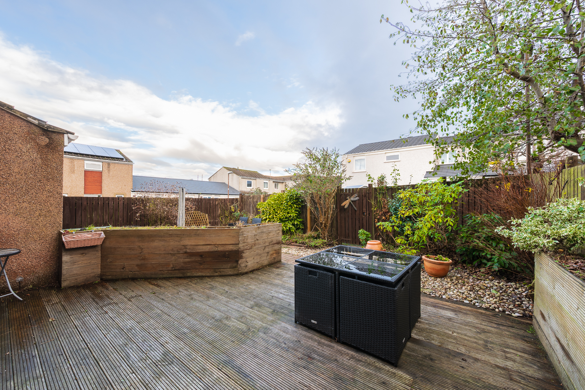Welcome to Norman Rise, an impressive five-bedroom family home located in a popular area of Livingston. This property enjoys dual access, though most residents prefer entering through the beautifully kept west-facing rear garden, where you’ll also find the residence parking area, making arrival both practical and inviting. Stepping into this wonderfully low-maintenance garden, you instantly appreciate the pride and care that has gone into maintaining this outdoor space, with its blend of paving, stone-chipped sections and mature planting beds creating an attractive, easy-care environment that welcomes you home.