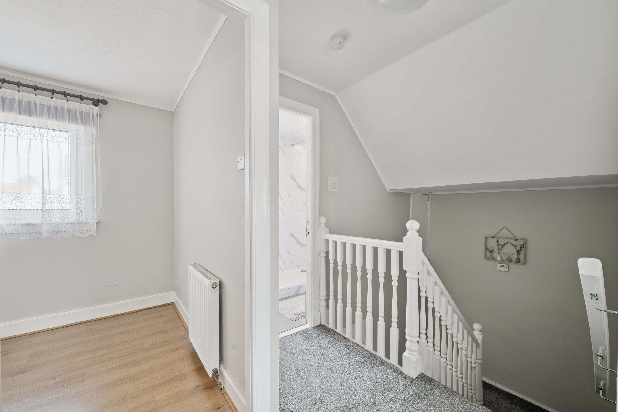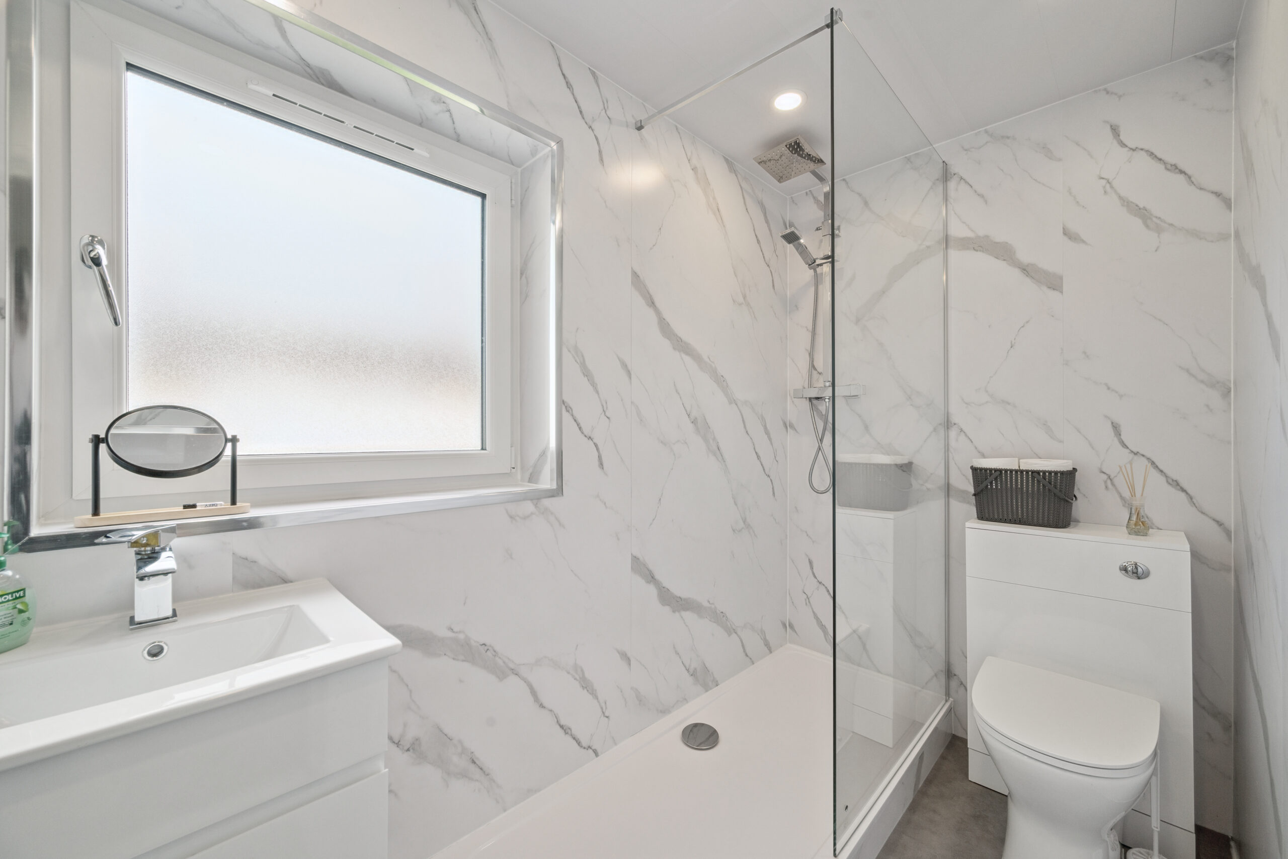 Upstairs, you’ll find four well-proportioned bedrooms, all capable of accommodating double or king-size beds. The principal bedroom is a generous space with room for a king-size bed, bedside cabinets, and wardrobes. Bedrooms two and three are also spacious and ideal for children, guests, or home working. Bedroom four offers flexibility and can be used as a child’s room, study, or dressing room, depending on your needs. The main bathroom is finished to a high standard with full wet-wall tiling, a large glass shower panel, neutral décor, and a clean three-piece suite perfect for family use.