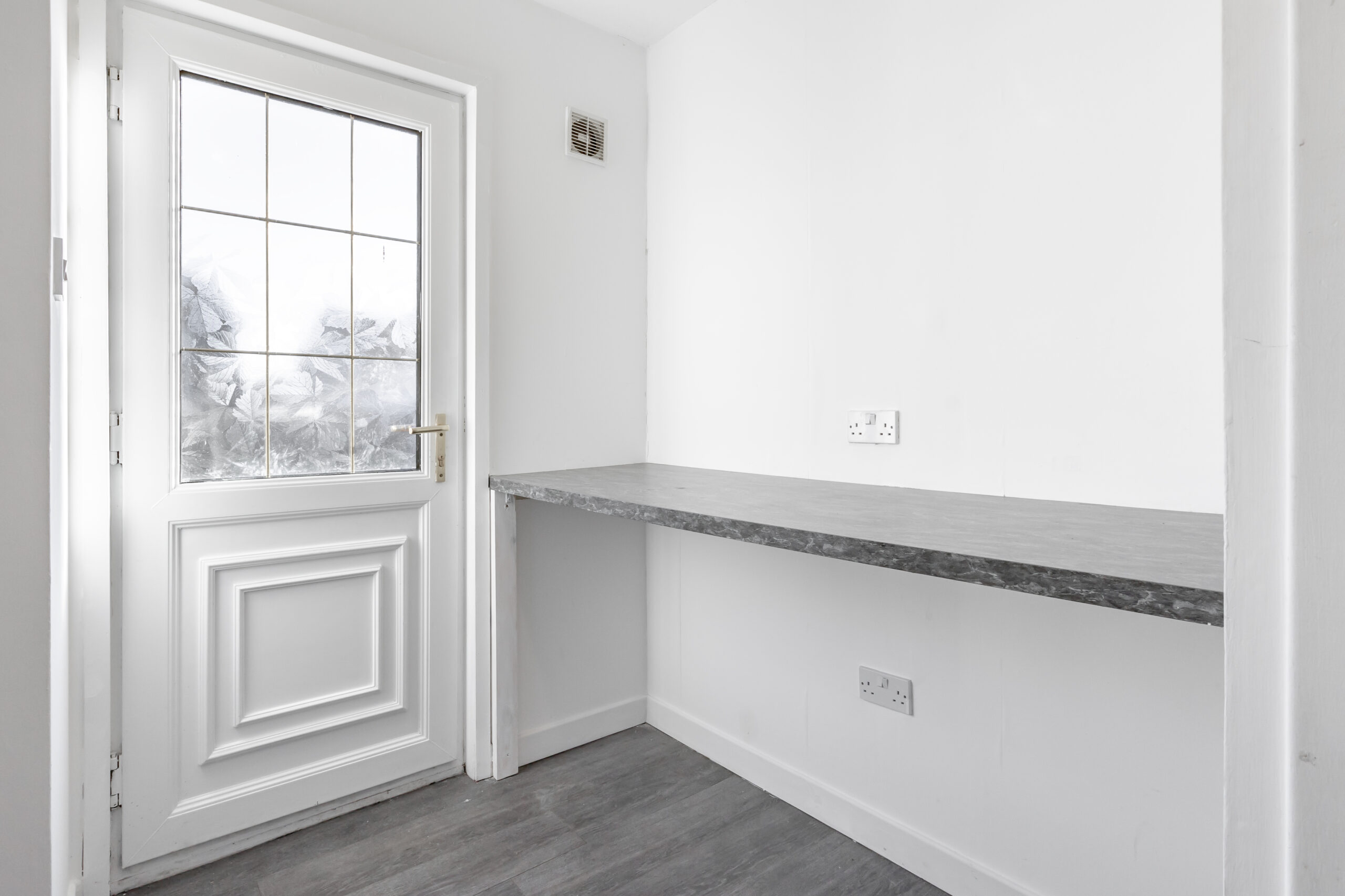 The modern kitchen is a standout feature - generous in size and finished to a high standard. Integrated appliances include an oven, hob, and extractor fan, with space for free-standing items such as a dishwasher and washer/dryer. The sleek white units create a clean, contemporary look, while ample cupboard and worktop space ensure practicality for everyday life. There’s also room for a dining area, perfect for family meals or entertaining guests.
