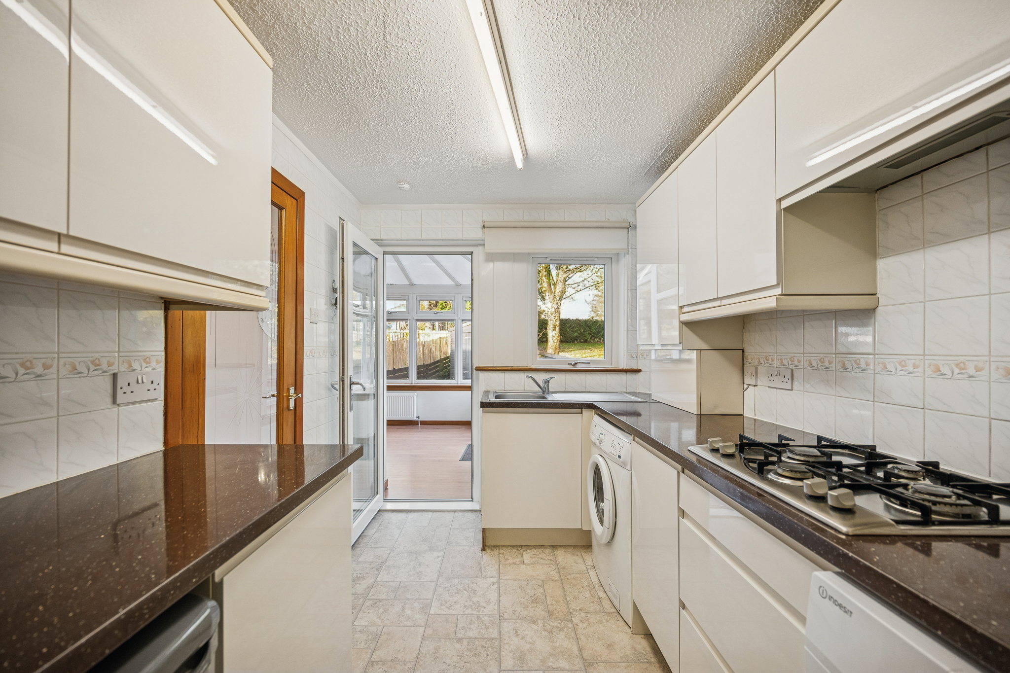The spacious lounge makes a wonderful first impression with its wood-effect laminate flooring, stylish feature wall with gas fireplace and large dual-aspect windows that fill the room with natural light. It comes fully equipped, with white goods included as part of the sale - making it ready to enjoy from day one.