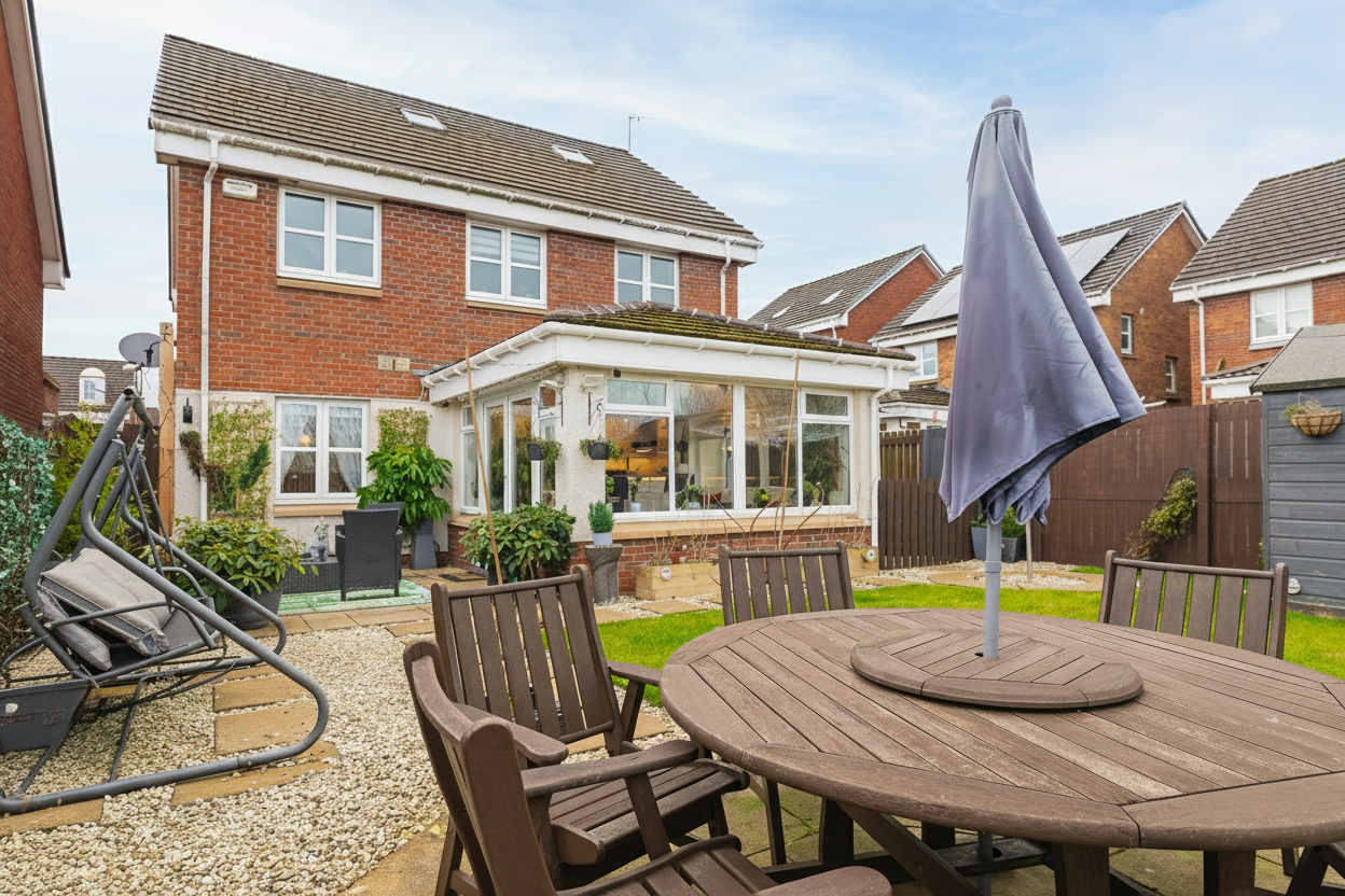 Externally, the rear garden provides a peaceful, low maintenance outdoor space, ideal for barbecues, family gatherings, or quiet relaxation. The garden feels wonderfully private and secure, offering the perfect outdoor retreat. The property also benefits from a single car garage, excellent driveway parking for three to four vehicles and a play park conveniently located just around the corner, perfect for families with young children.