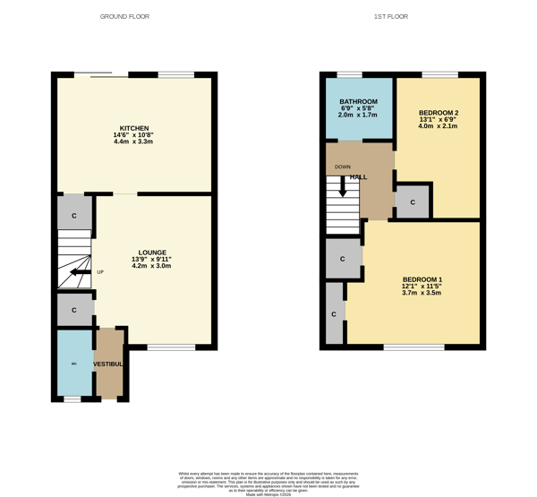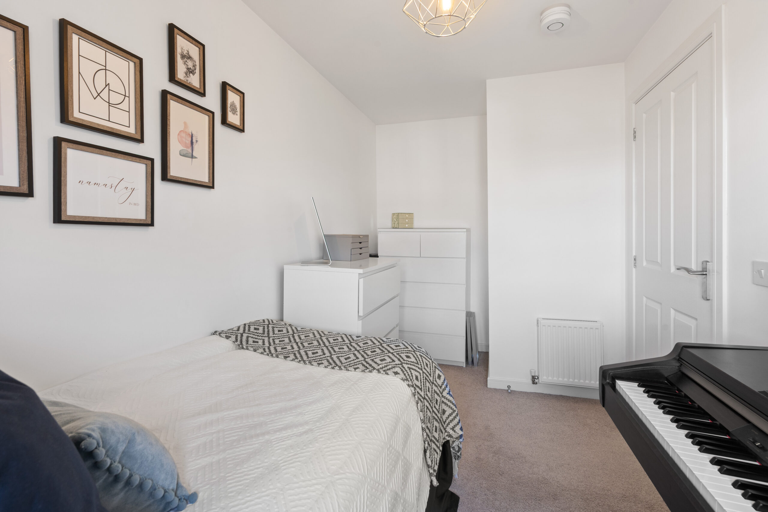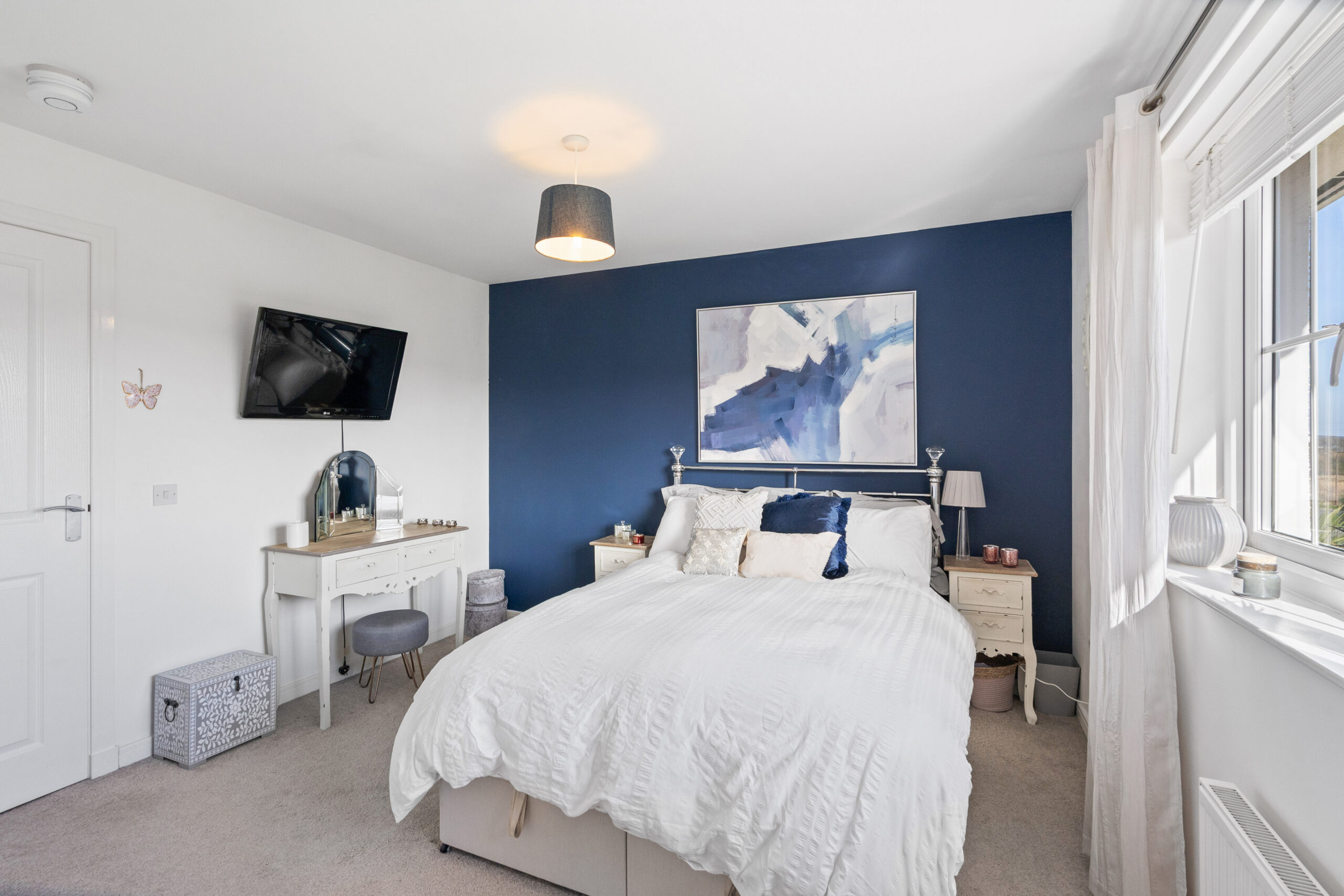 Upstairs, the property offers two well proportioned double bedrooms. The principal bedroom comfortably accommodates a king size bed with bedside cabinets and benefits from a large fitted wardrobe as well as an additional storage cupboard. Bedroom two is currently arranged with a single bed but can comfortably accommodate a double bed with bedside cabinet and space for wardrobes, making it a versatile second bedroom.