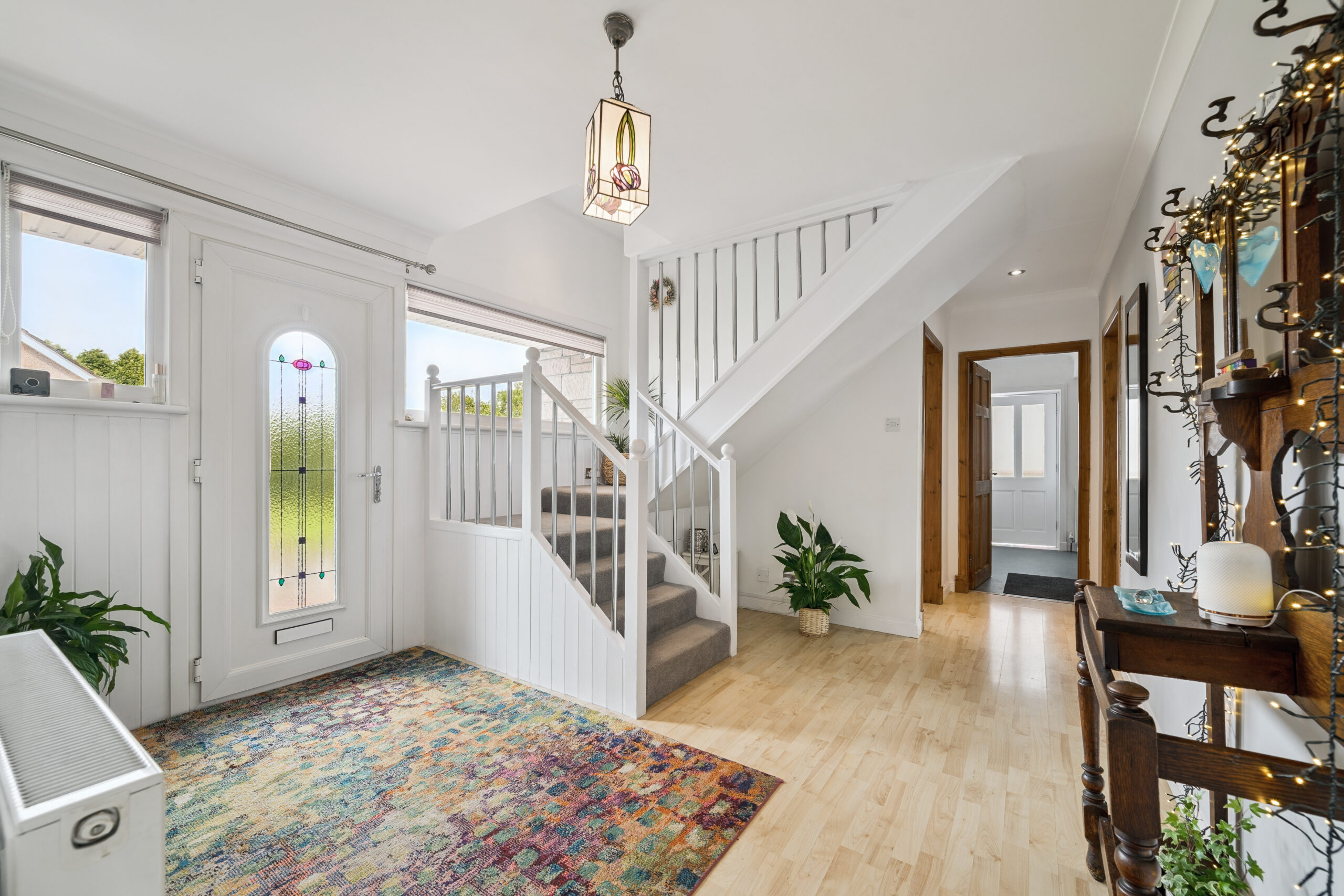 As you arrive, the home’s undeniable kerb appeal immediately impresses. A beautifully landscaped front garden frames the property, while 2 driveways provide off street parking for up to six vehicles a rare find in such a tranquil residential setting. Additional visitors parking is available in the street.